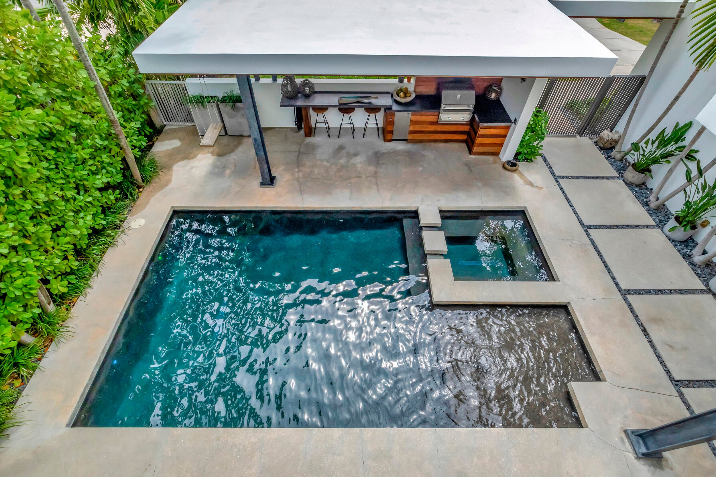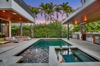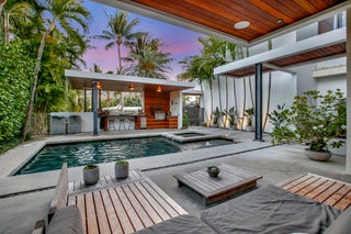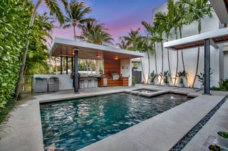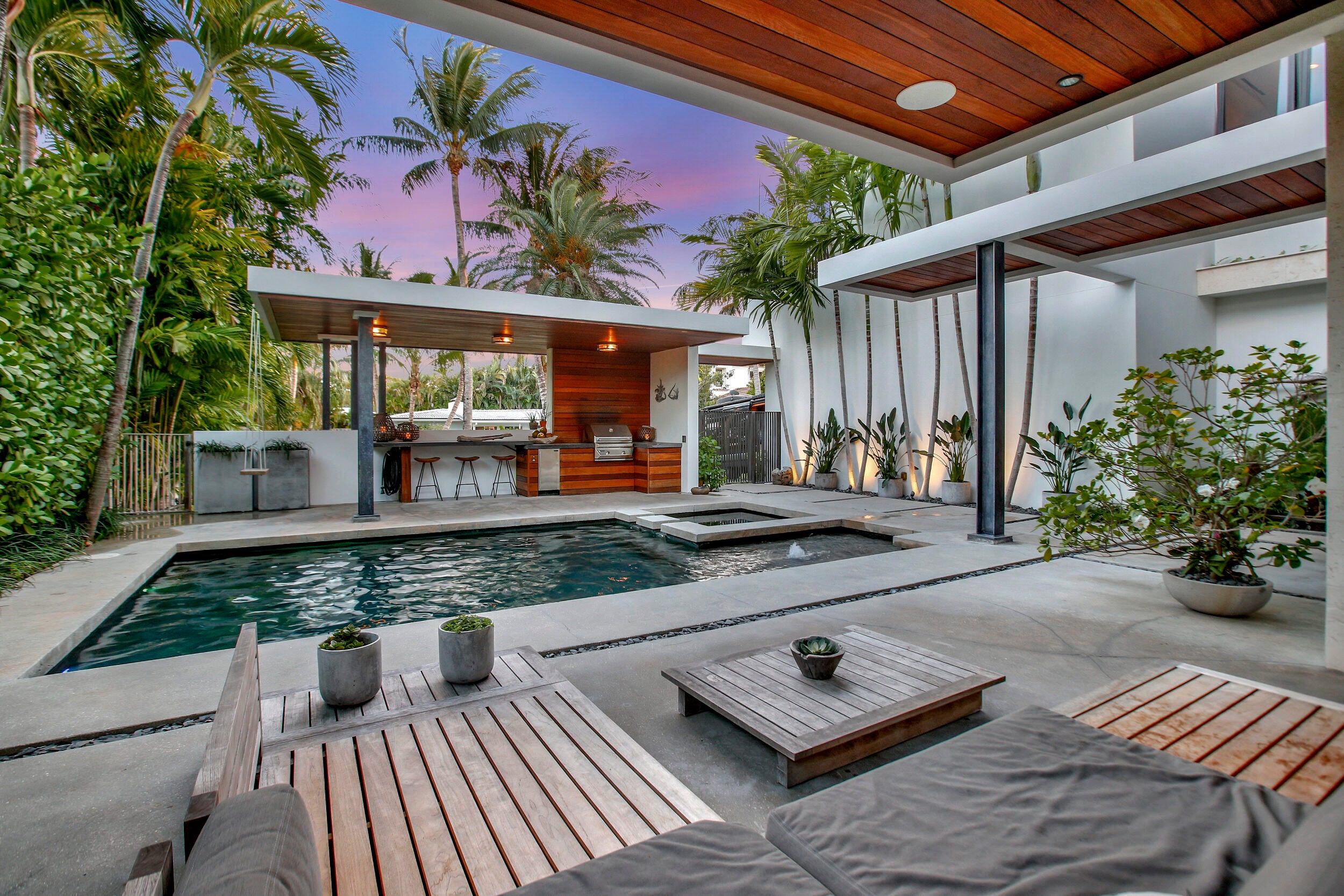 One of the Most Incredible Organic Modern homes to be found located in prestigious Hillsboro Shores and only a block to your private gated Beach. The home has a Serene and Tranquil Bali Vibe with a material palette of Gorgeous Stones, Rich Woods and Glass. Features a wide open floorplan, Polished concrete floors and a Custom Italian designed kitchen w/ Miele appliances. The Large great room w/ fireplace has a seamless indoor-outdoor connection to the tropical pool and outdoor kitchen. There is also a media room, Library and office. Upstairs is a flawless master suite w/ an Italkraft Closet, balcony and incredible bath. 3 other bedrooms complete the 2nd floor. The 3rd floor is true paradise with a huge patio and balcony and incredible views of the lighthouse and Gorgeous Beach area.