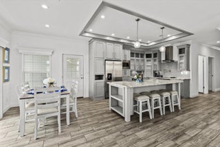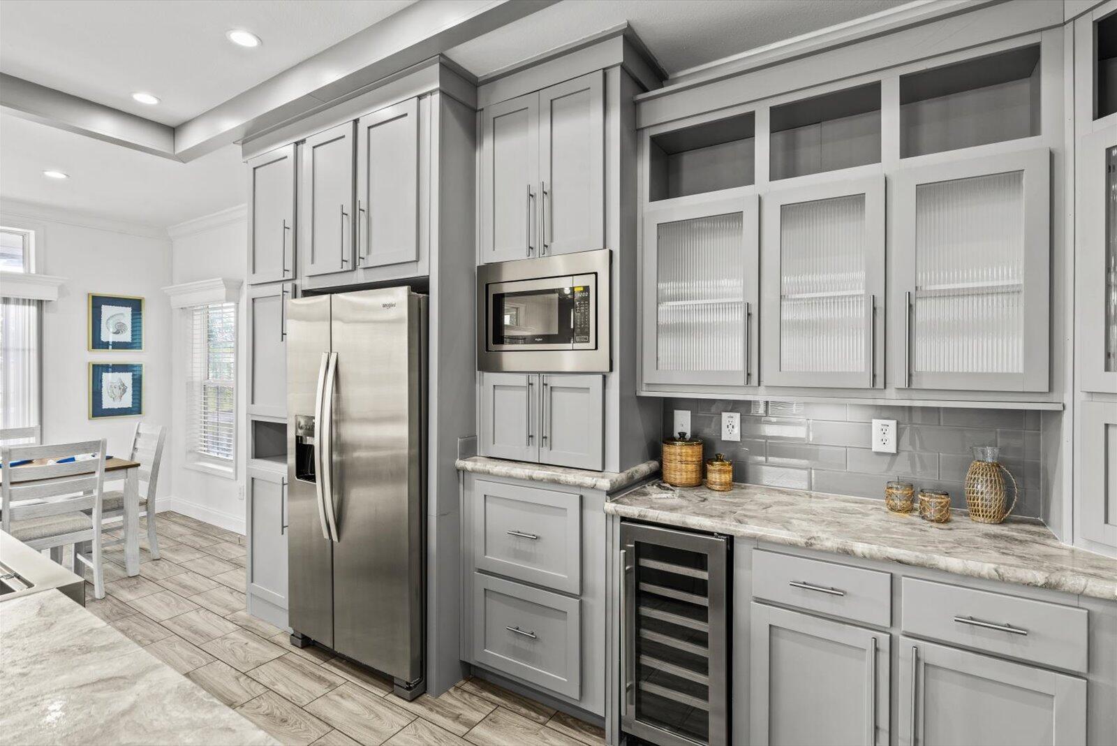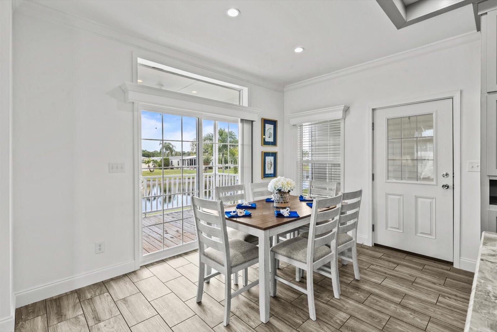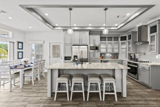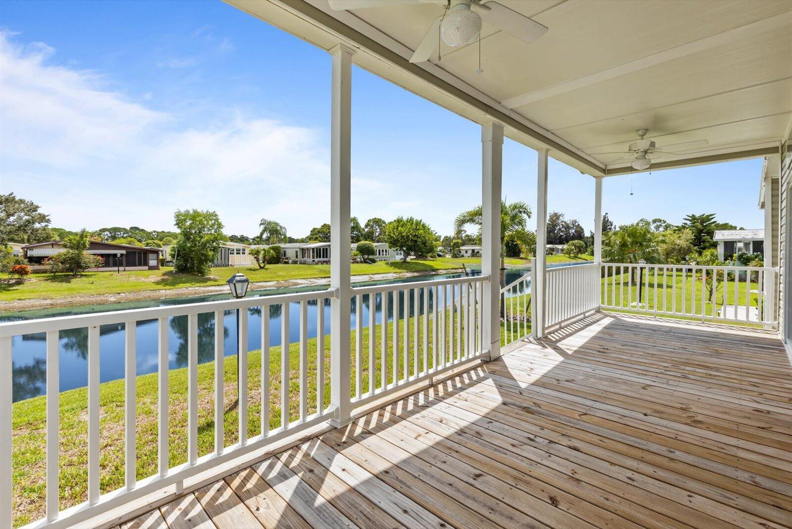 Savanna Club 55+ Resort-styled Golf Community. Preview this NEW 2 BR/2BA with Den/office on lakefront lot. Upgrades include a gourmet kitchen with pot-filler ,wine fridge, SS appl., shaker styled cabinetry and Lux vinyl floors. Enjoy sunrises and sunsets on your front porch or large back porch overlooking the lake! Home comes with a 7 year warranty and move in ready with insulated windows, blinds, cornices and more. All measurements approximate, buyer to verify. Land Lease Property.