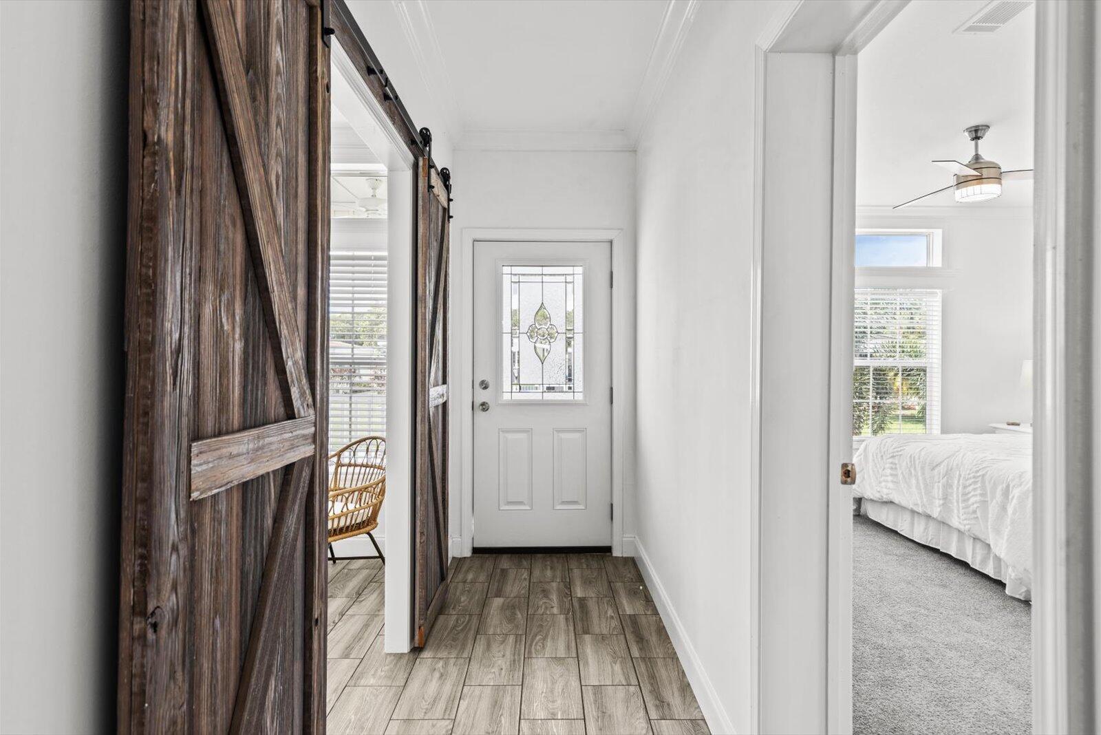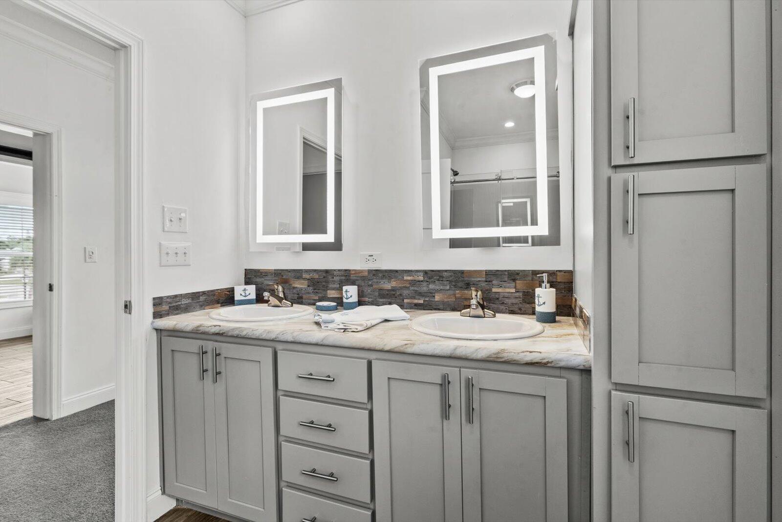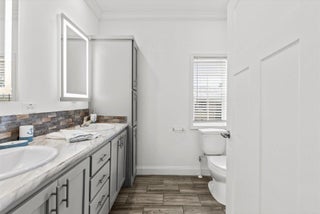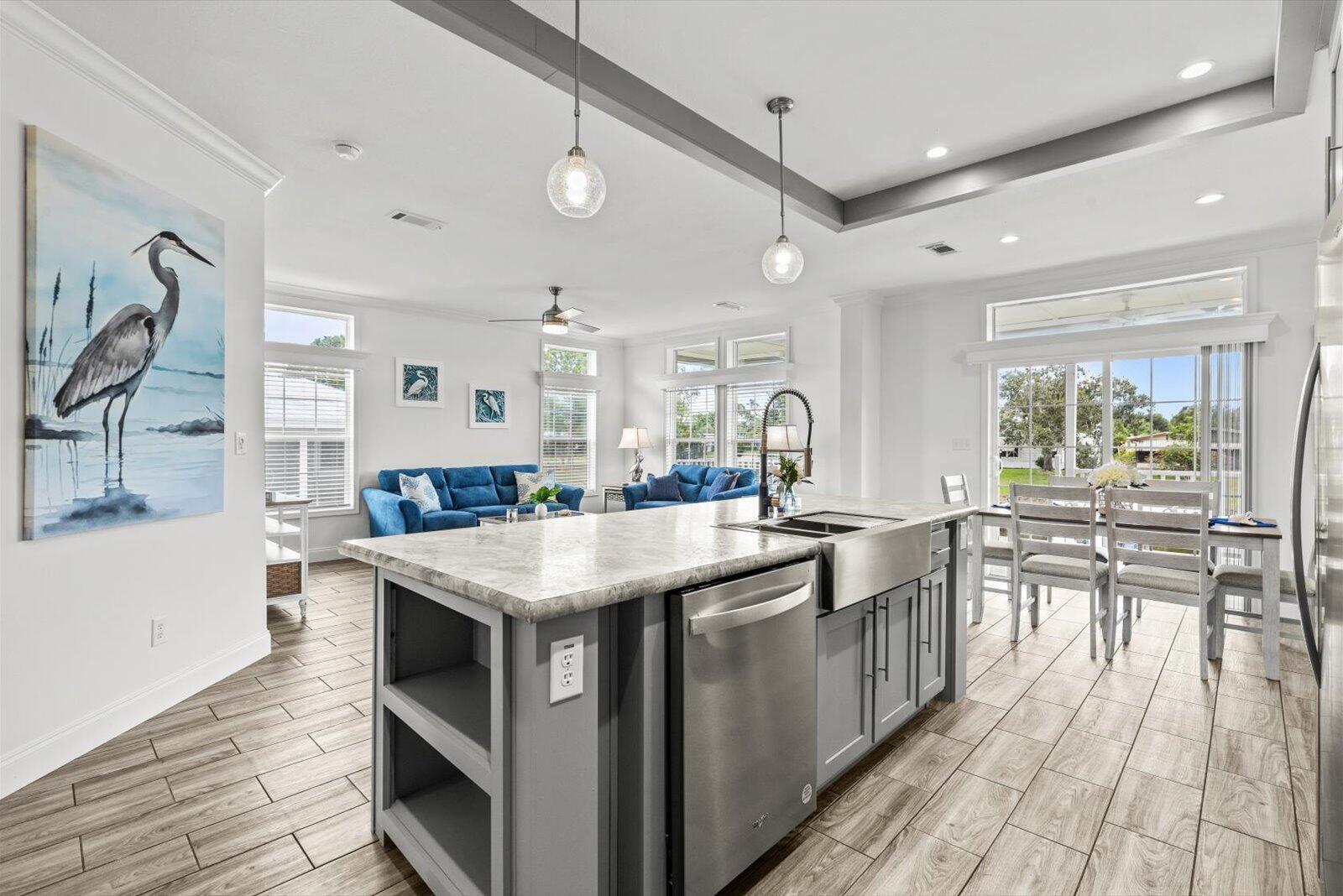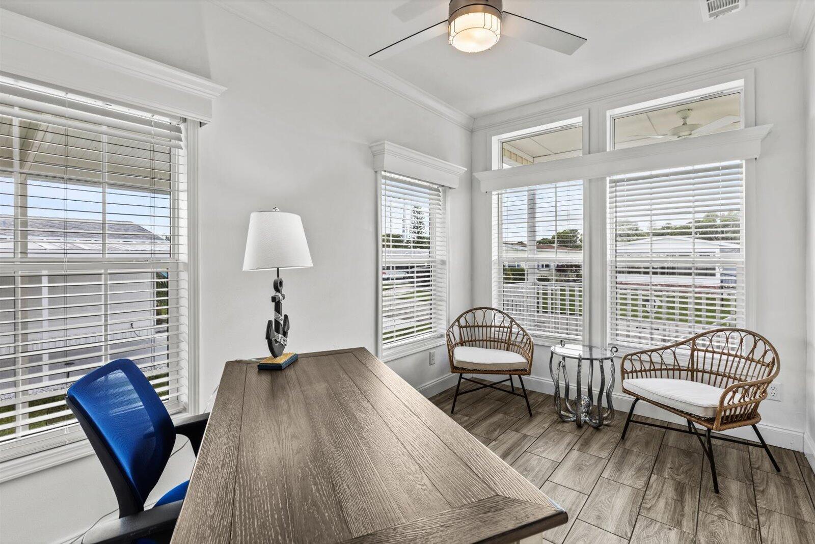 Savanna Club 55+ Resort-styled Golf Community. Preview this NEW 2 BR/2BA with Den/office on lakefront lot. Upgrades include a gourmet kitchen with pot-filler ,wine fridge, SS appl., shaker styled cabinetry and Lux vinyl floors. Enjoy sunrises and sunsets on your front porch or large back porch overlooking the lake! Home comes with a 7 year warranty and move in ready with insulated windows, blinds, cornices and more. All measurements approximate, buyer to verify. Land Lease Property.