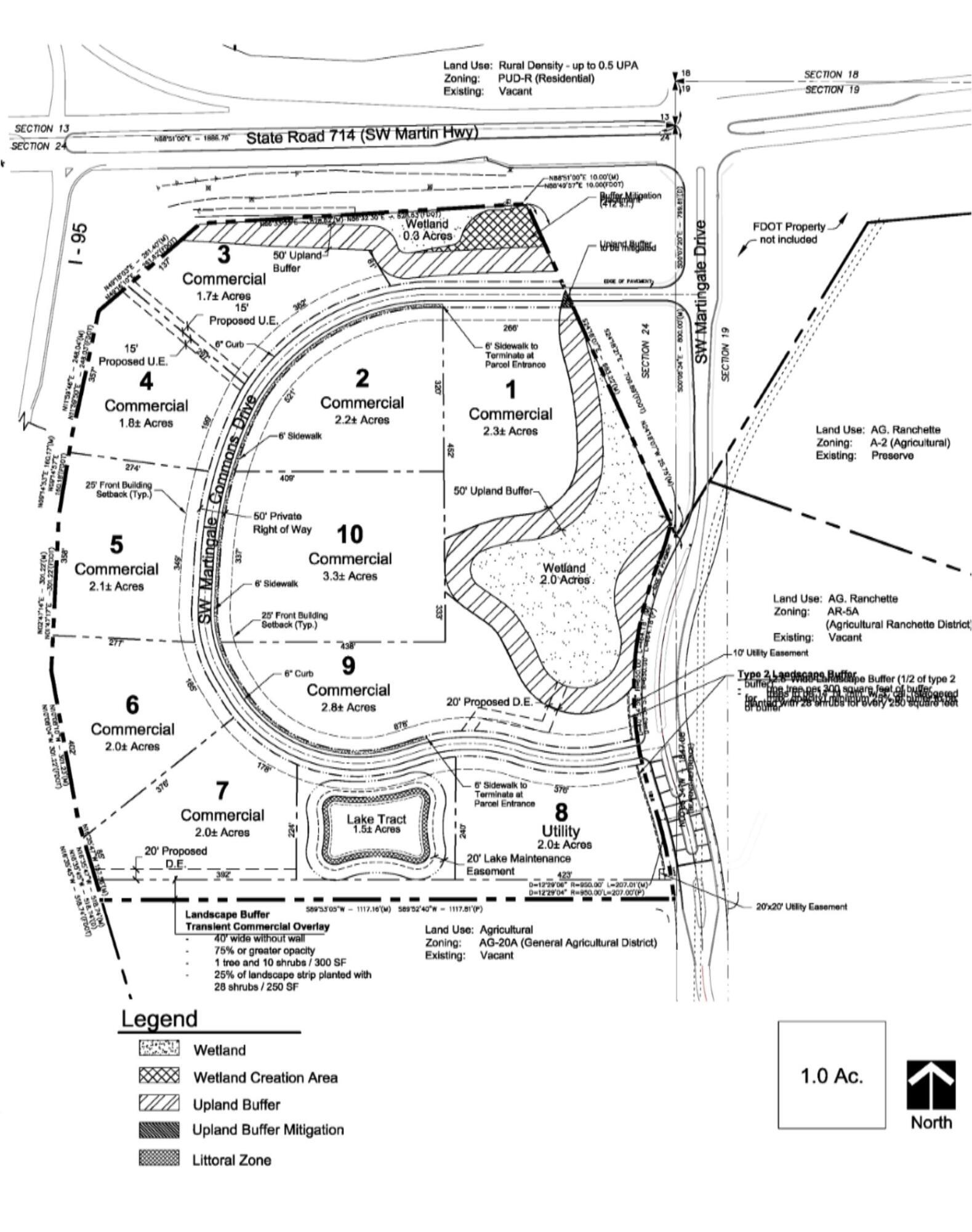 +/- 32.71 acre commercial development site has an excellent location along I-95 at Exit 110 in southeast Florida. The zoning allows a variety of commercial uses including gas station/conveniencestore, restaurant, hotel and other commercial/retail uses. Great location and one of the last remainingcommercial sites along the corridor on the Treasure Coast. Lots of new housing planned to the east, along with large industrial projects planned both east and west. Heavy commuter corridor along I-95 and into Palm City/Stuart. Martin Hwy is major connector to Indiantown and Okeechobee.