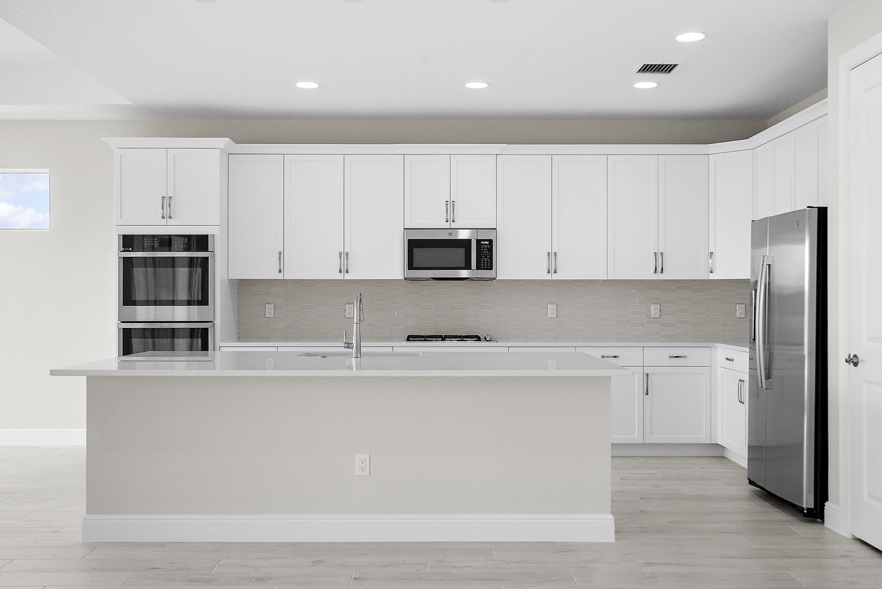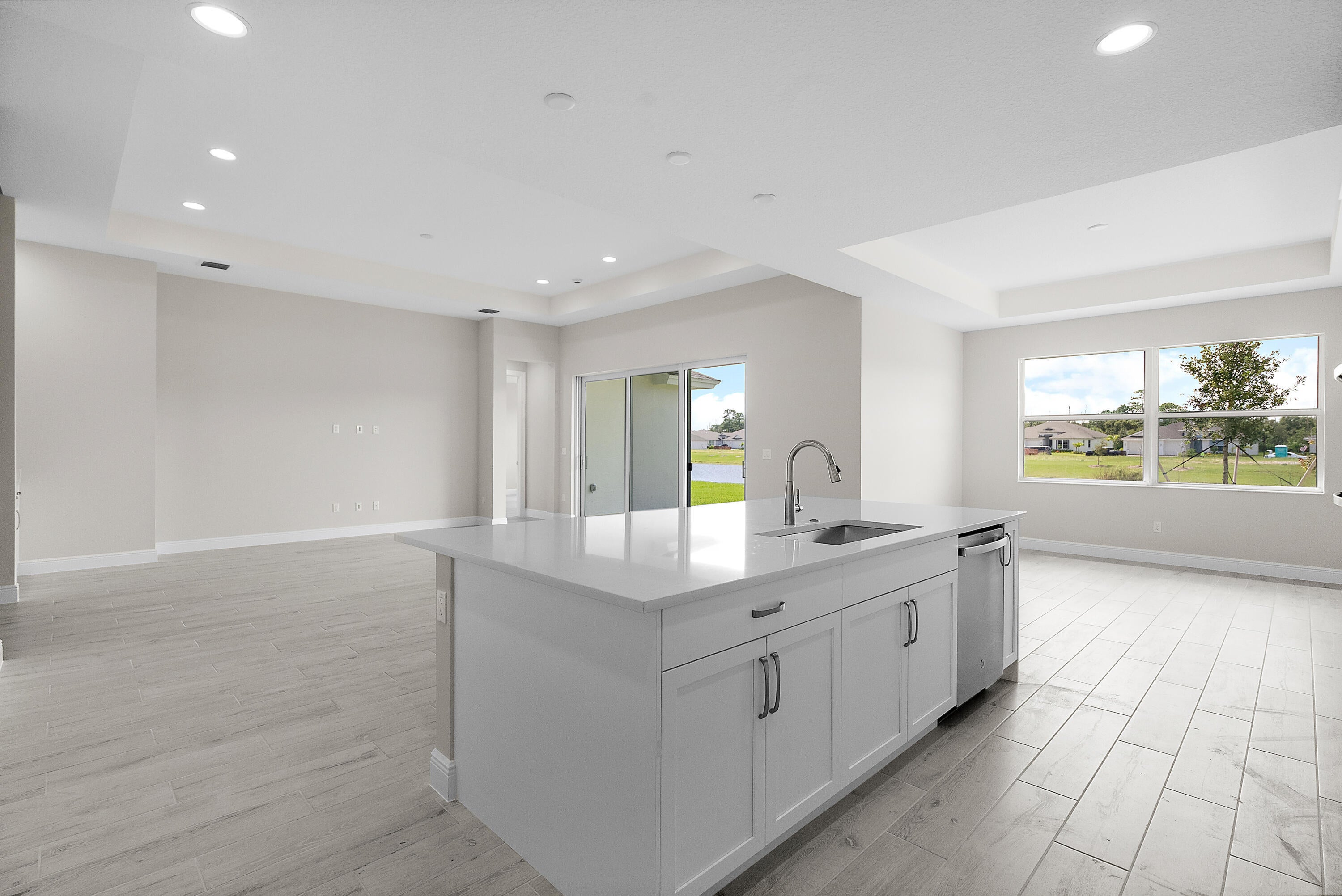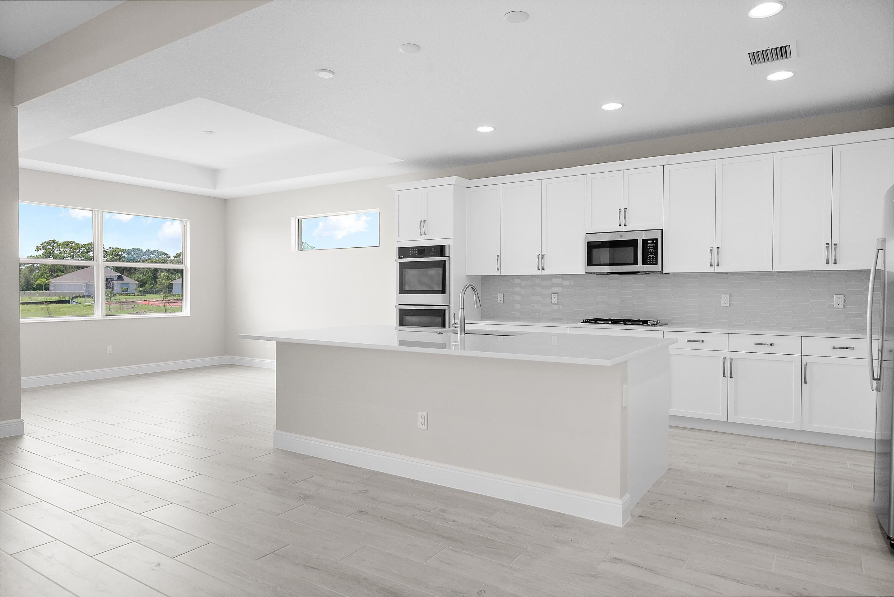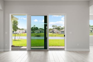 MOVE IN READY! Waterfront lot in High Pointe, one of the newest communities by GHO Homes. The Aurora boasts over 2500 sq ft of luxurious living space, w/ 3 bedrooms, 3 full baths, den & 2 car garage. The kitchen will have upgraded and extended white cabinets w/crown molding, soft close and dovetail finish, quartz countertops, level 3 backsplash, upgraded gourmet kitchen w/double oven. All windows & sliders are impact glass. Other upgrades include a coffer ceiling package. Entertain your family & friends at our Future Clubhouse, complete w/ a pool, pickleball courts, fitness center, billiards