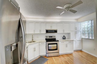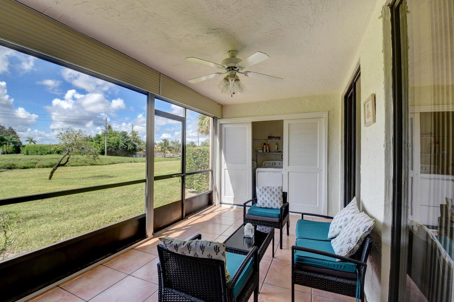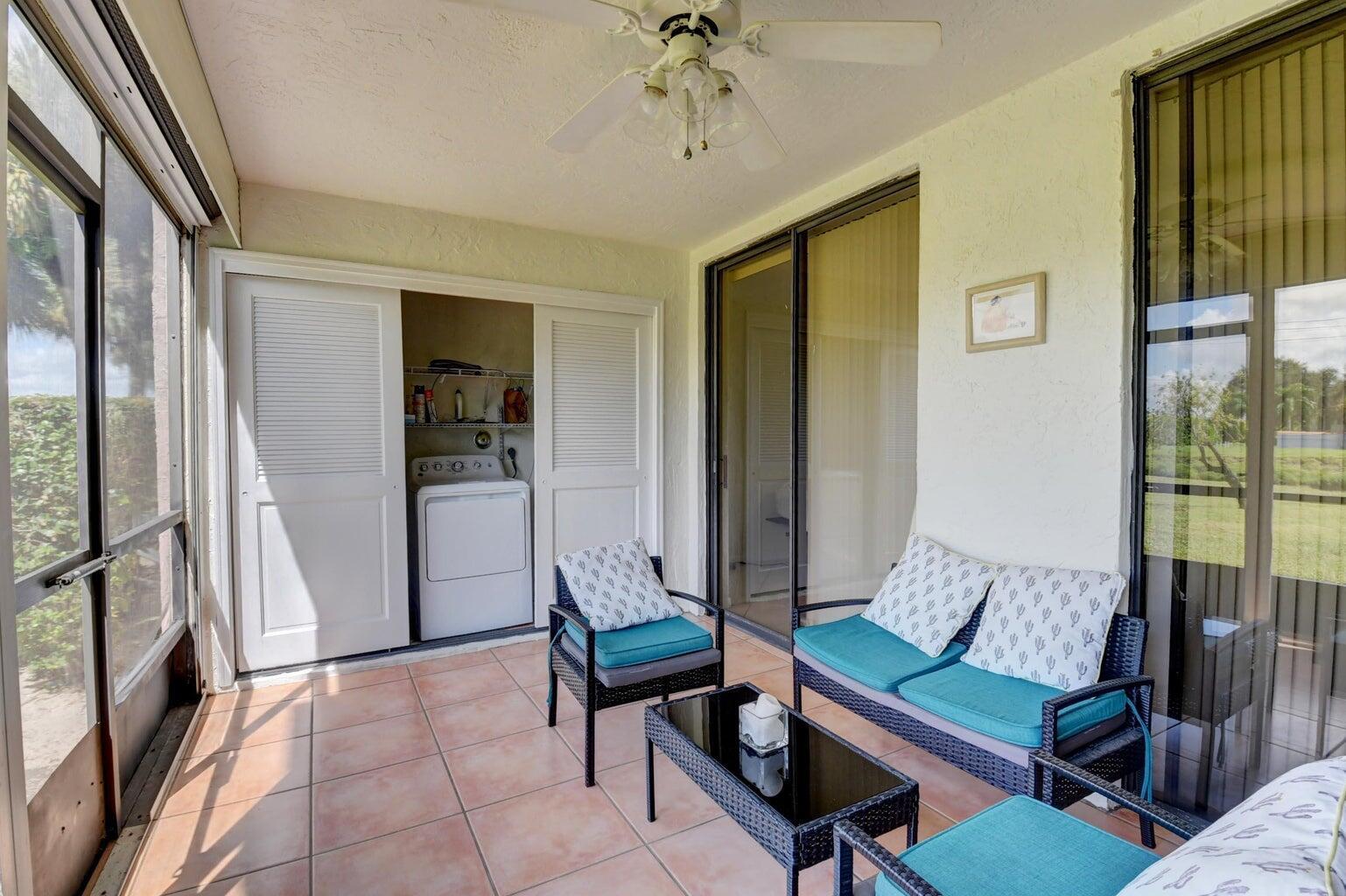Enjoy lovely sunsets from your patio. Beautiful three-bedroom, two-bath first-floor home in excellent condition with garden and canal views. Bathrooms have been updated. The kitchen is fully updated with granite countertops, new cabinetry, and new appliances. The patio has a tile floor and a utility area with washer and dryer. New air conditioning was installed recently. The recently remodeled clubhouse offers many amenities, including a cafe - all within walking distance from your front door. A very lively and active clubhouse. The home is fully furnished.