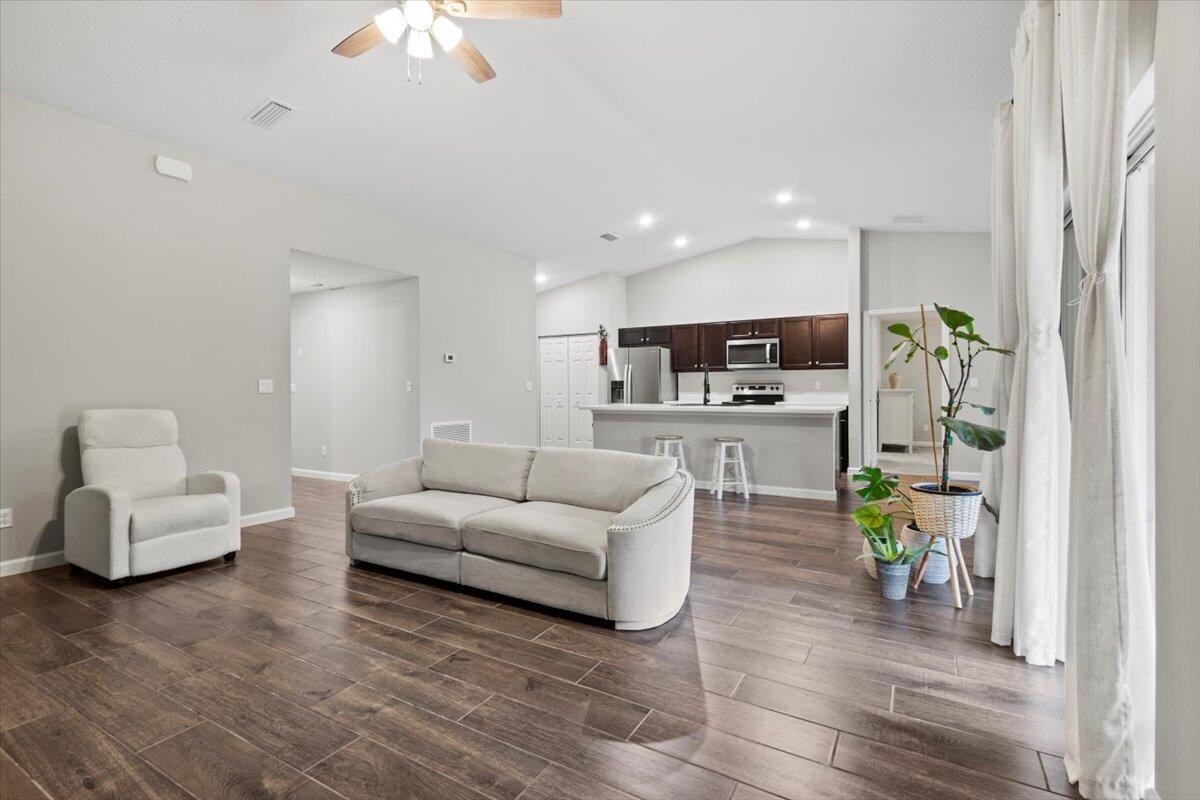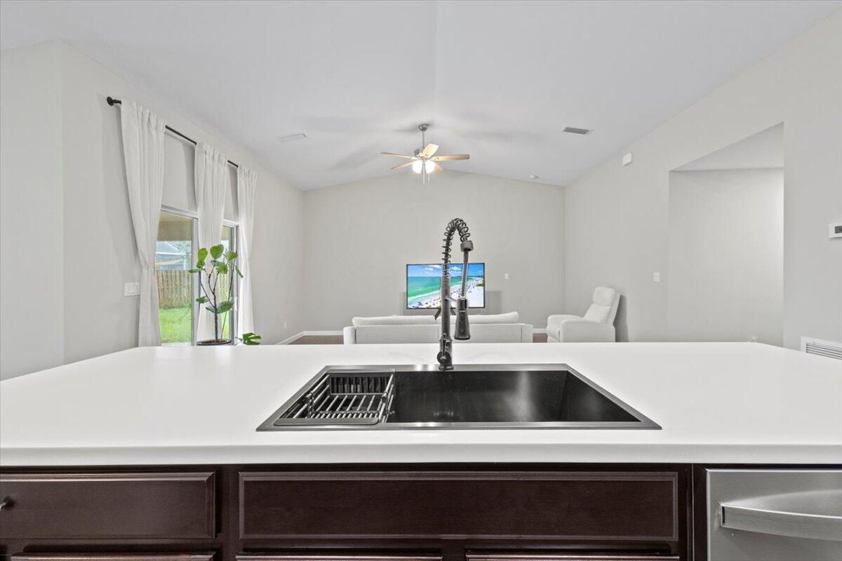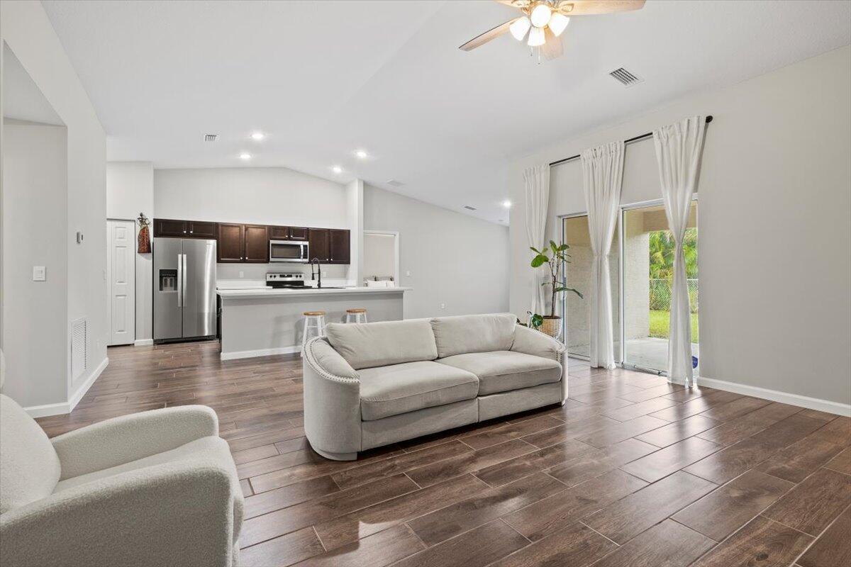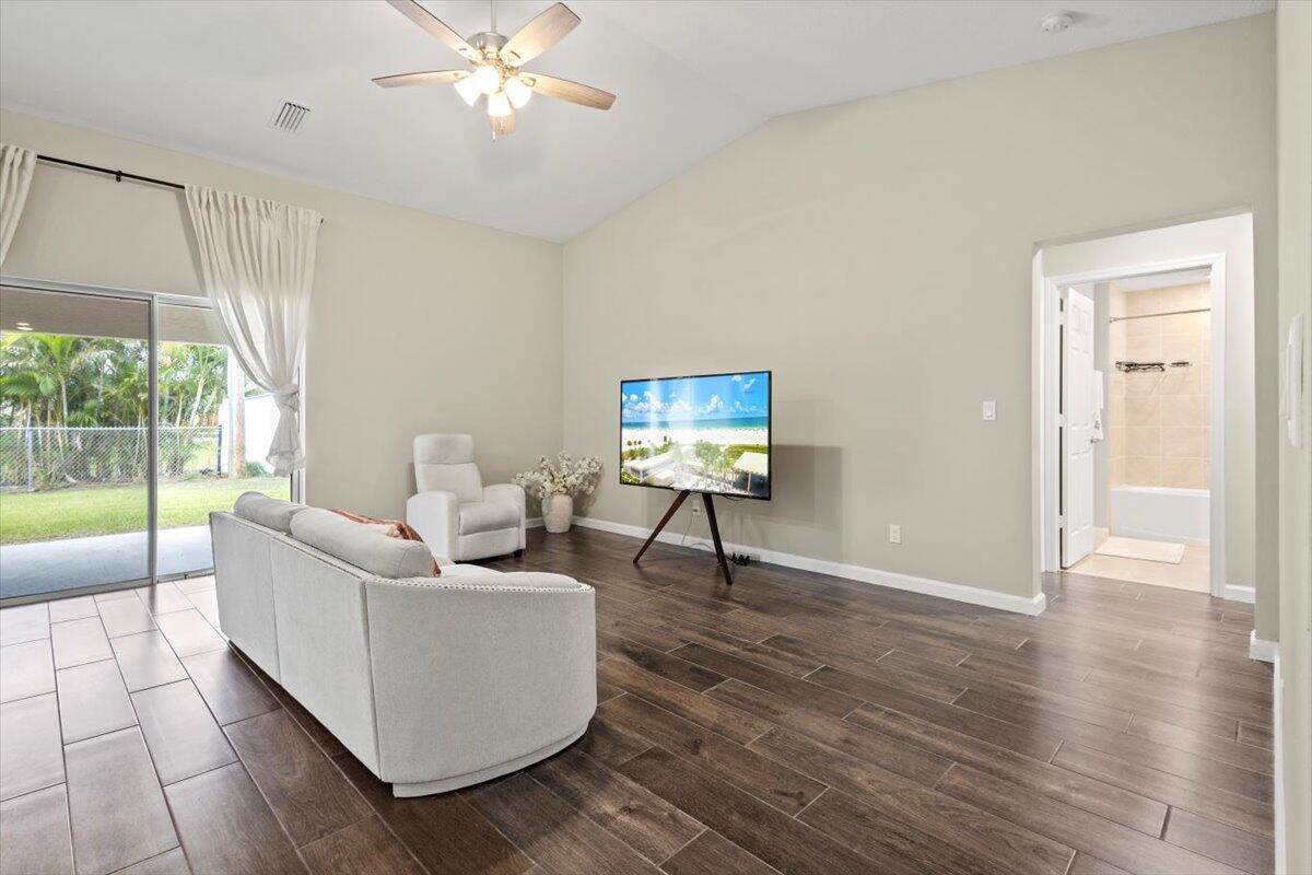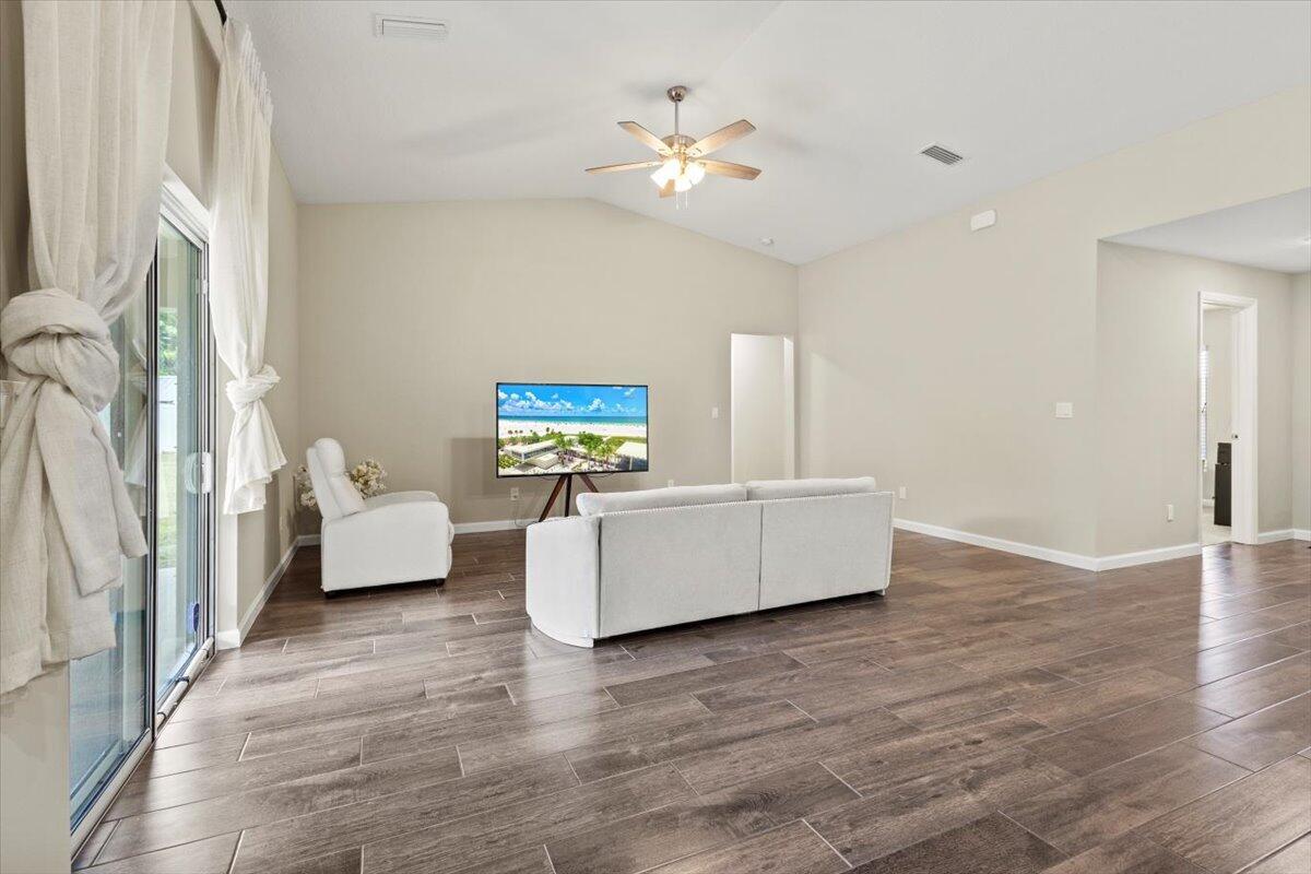 Mother-In-Law Suite!! Feast your eyes on this nearly brand new, customized Synergy Homes Verona model Exterior Elevation A , 4/2/2 CBS 1,915 square foot home, complete with a mother-in-law suite, built in 2023 and barely lived in. This home is incredible, but lot is unbeatable! This pristine home is situated on a .28 acre pie-shaped lot at the end of a cul-de-sac in the deepest interior portion of a quiet neighborhood in the coveted 34953 zip code in Southwest Port St Lucie. This is the best valued home on the market at this time with unbeatable location, incredibly spacious floor plan complete with a Northward facing covered patio and a huge, private backyard due to the pie-shaped lot on the cul-de-sac, and it's nearly brand new.