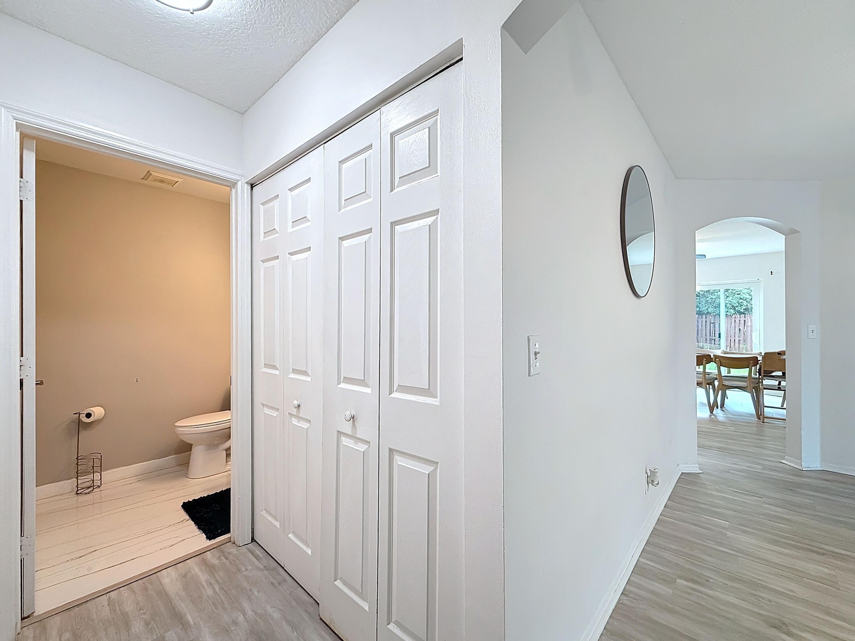 Discover this beautifully remodeled 4-bedroom, 2 1/2 bathroom corner lot home, with loft, featuring salt water pool perfect for relaxation and entertaining. Huge corner lot. Enjoy peace of mind with hurricane impact windows throughout. The updated bathrooms showcase modern finishes. Located in a desirable neighborhood, you'll be just minutes from shopping, dining, and top-rated schools. This home offers the perfect blend of comfort, style, and convenience. No HOA approval, can move in right away.