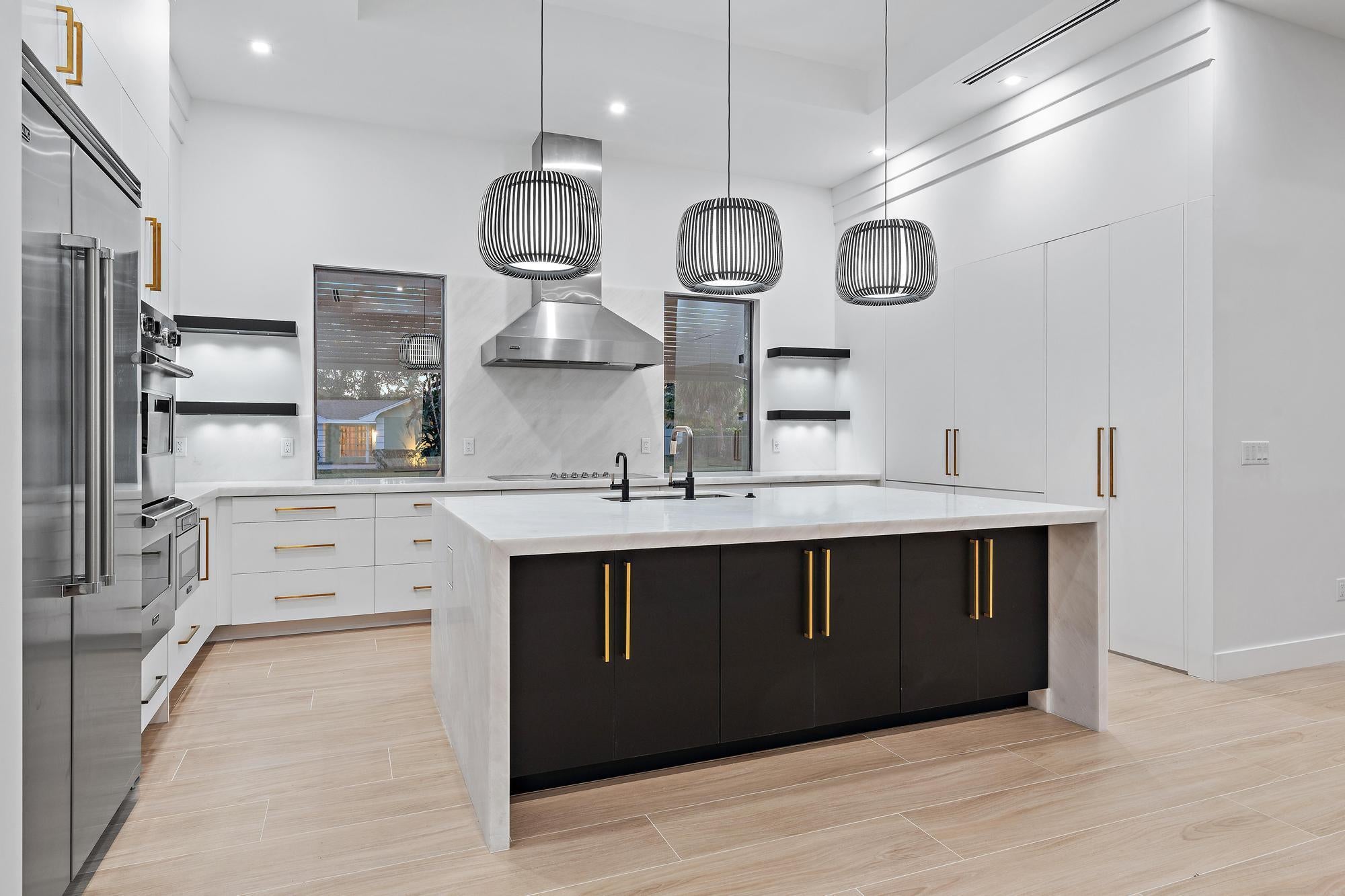 Experience modern luxury in this brand-new, thoughtfully designed 5-bedroom, 5.5-bathroom masterpiece, complete with a saltwater POOL, hot tub, and private casita. This stunning home features an open-concept floor plan that effortlessly blends indoor and outdoor living, basking in natural light by day and glowing with sophistication by night. From the moment you step inside, you'll fall in love with its impeccable design and inviting ambiance. This new construction property combines style and functionality. With impact windows, impact doors, and a durable metal roof, this home offers both timeless elegance and superior protection. Other features include a spacious 3-car garage, laundry room, an under-stairs dog kennel, and a dedicated homework station--all designed for a modern lifestyle.The chef's kitchen is a showstopper, featuring designer cabinetry with soft-close hinges, a massive waterfall island with honed marble countertops, and a hidden walk-in pantry for ample storage. Equipped with top-of-the-line VIKING stainless steel appliances, this space is ideal for culinary enthusiasts. The kitchen flows seamlessly into the expansive dining and living areas, highlighted by soaring ceilings and pocket doors that open to reveal breathtaking views of the backyard oasis. Step outside and immerse yourself in your own private retreat. The outdoor area boasts a saltwater pool, hot tub, marble-paved pool deck, covered lanai, and a fully equipped outdoor kitchenperfect for entertaining or unwinding in style. The first-floor primary suite is a sanctuary, complete with a private patio, two custom walk-in closets, and a luxurious ensuite bathroom featuring dual vanities, chic pendant lighting, a Roman tub, and an oversized shower. A split floor plan places three additional bedrooms in a separate wing of the home, ensuring privacy and convenience. For ultimate flexibility, the second-floor casita offers a private 1-bedroom, 1-bathroom apartment with a full kitchen, LG appliances, washer/dryer, LVP flooring, and a charming Juliette balcony. This space is perfect for extended family, a home office, or even a short-term rental opportunity. Located in the highly sought-after Pennock Point neighborhood, this property is near the scenic waters of the Loxahatchee River and offers easy access to Jupiter's beaches, world-class dining, shopping, and golf courses. With no HOA and plenty of space for your boat and RV, this home truly has it all. Every day will feel like a vacation in this extraordinary new home. Don't miss the chance to make it yours!