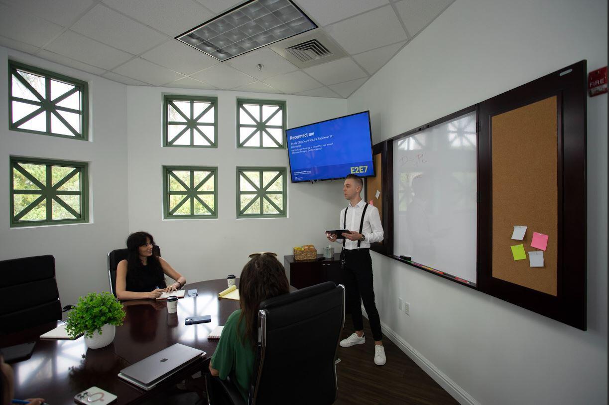 Jupiter Business Center provides a professional environment that enables you to meet with clients and colleagues at a prestigious Jupiter address, located in the heart of the live, work, and play center of Abacoa. Jupiter Business Center offers turn-key administrative outsourcing by unlocking access to services such as a reception, technology and telecom, and meeting and conference rooms. We offer friendly, comfortable community shared areas in our kitchen and break room spaces. Our quiet secure office suites can be leased fully furnished and services can be purchased al la carte or may be included in your rent.