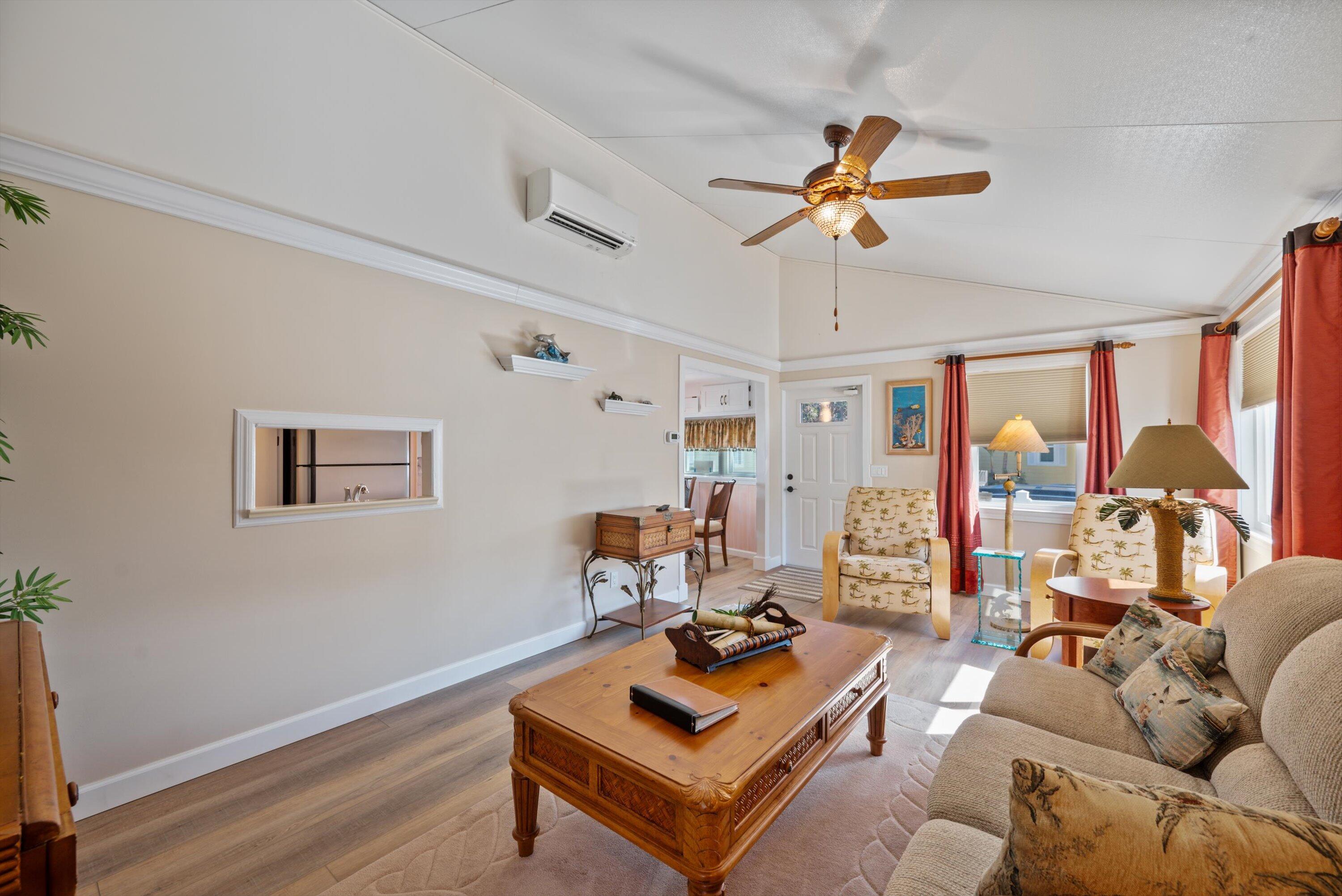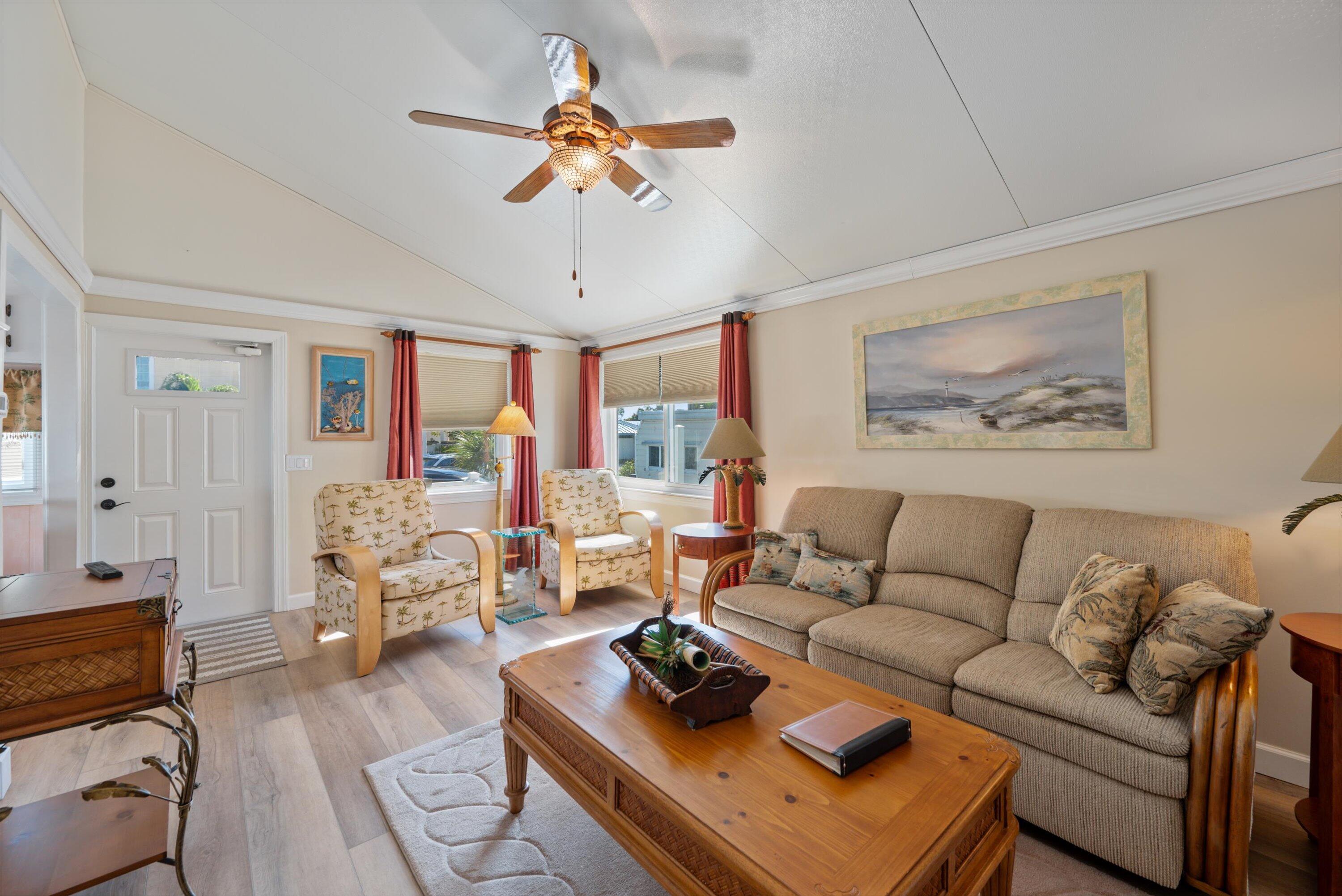 This is a perfect resort style cottage. Gated resort style ocean experience. HOA provides approximately 500 feet of private beach access, an oceanside clubhouse, heated pool, shuffleboard, pickle ball courts, BBQ grill, bocce and a billiard room. Holiday Out is a gated community across street from Atlantic Ocean. This unit is totally charming. It comes with 2 car parking, a new front and back porch, new appliances, floors, small private back yard. Property has an open floor plan and cathedral ceilings. Lovely furniture to remain making this a truly turnkey investment. New Metal Roof 2019 Commercial Hardy board siding 2019. AC, washer & dryer 2022. Seller is motivated.