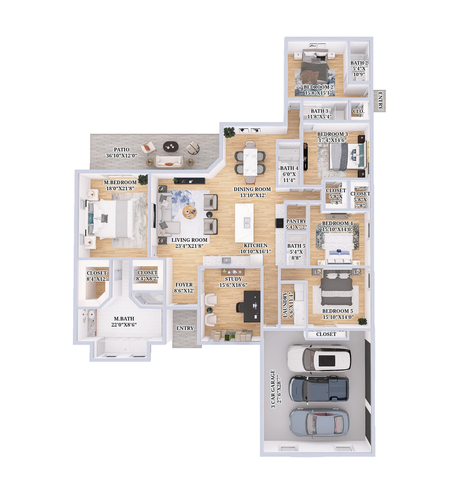Walk-in Closet, Wet Bar, Pull Down Stairs, Volume Ceiling, Cook Island, French Door
