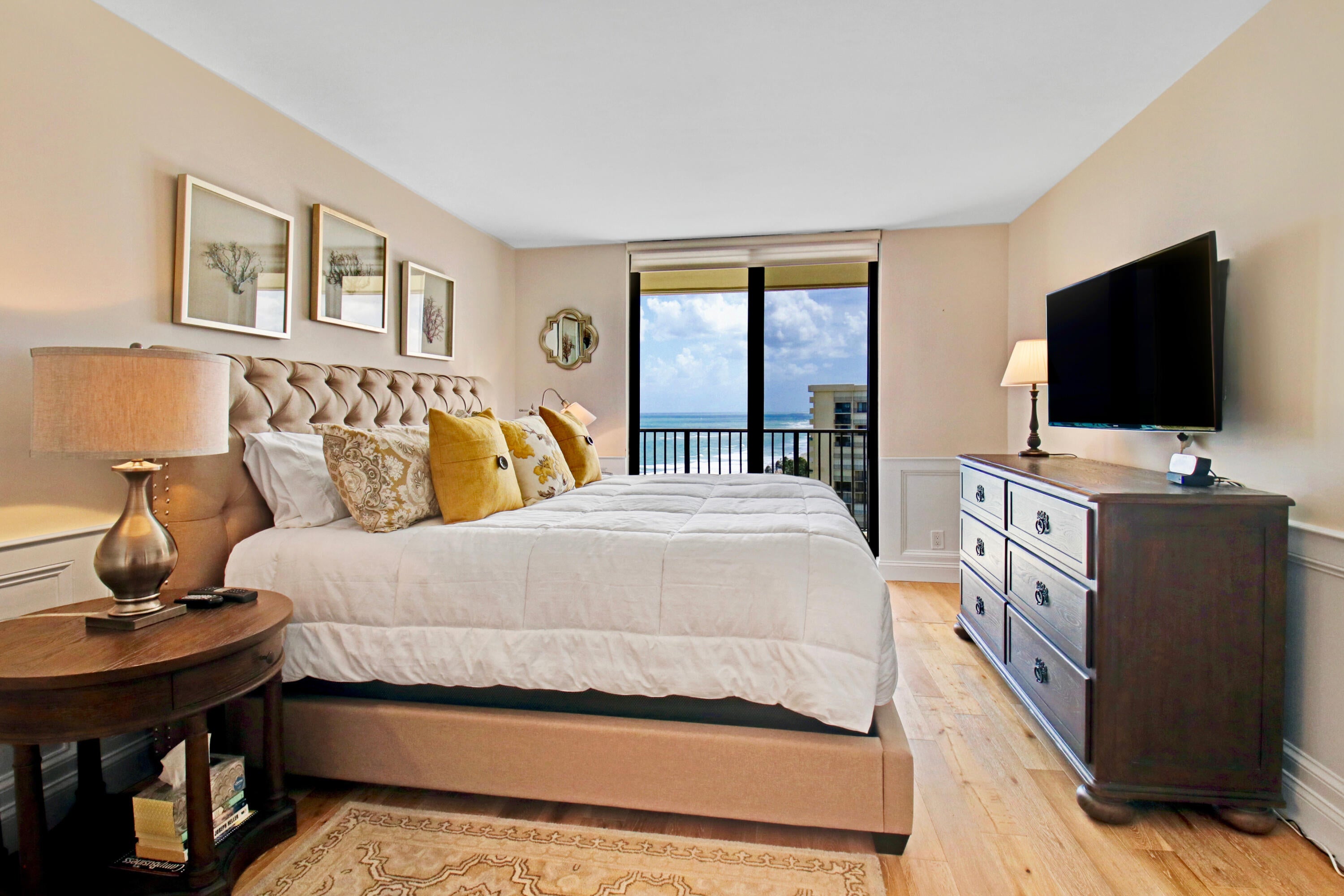 Summer / Off Season 2025 Rental @$4500 /month. Also open for 2026 Winter Season @$9000 / month.Coastal elegance directly on the beach in Jupiter with the SE, high floor exposure you desire. Beachy white washed wood flooring throughout. Updated baths and kitchen. King main bedroom & queen guest room. Washer & dryer inside condo. Fresh, tidy, extremely well maintained condo. New AC. Pool, spa, fitness room, 24-hour manned guard gate, secure garage parking, active tennis center. Direct beach access. Located a few minutes from many local restaurants and shops. Great location for those that like to bike, walk or just relax by the pool or beach.Open for 2025 Summer / Fall Open for 2026 Winter Season Seasonal Rent is $9000 / month (Dec - April) Off Season rent is $4500 / month (May - Nov) 13% sales tax. $150 condo application. $250 exit clean. Includes all utilities with a cap on electric at $100. Security deposit = $4,000