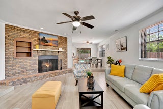 **SHORT & MID TERM RENTAL**Looking for a comfortable, relaxing home for a minimum of 3 months? This beautifully renovated 2-bedroom, 2-bathroom house (1,292 sq ft) offers a fully furnished, stylish space perfect for short-term living. The kitchen is fully equipped. The home features modern ceramic tiles throughout and updated bathrooms, with a spacious layout ideal for both relaxation and working from home. Washer and dryer are available in the house. The private outdoor patio with a screened-in pool, surrounded by lush nature and a privacy fence, is a serene retreat. Enjoy the perfect balance of comfort, style, and privacy--secure your stay today!