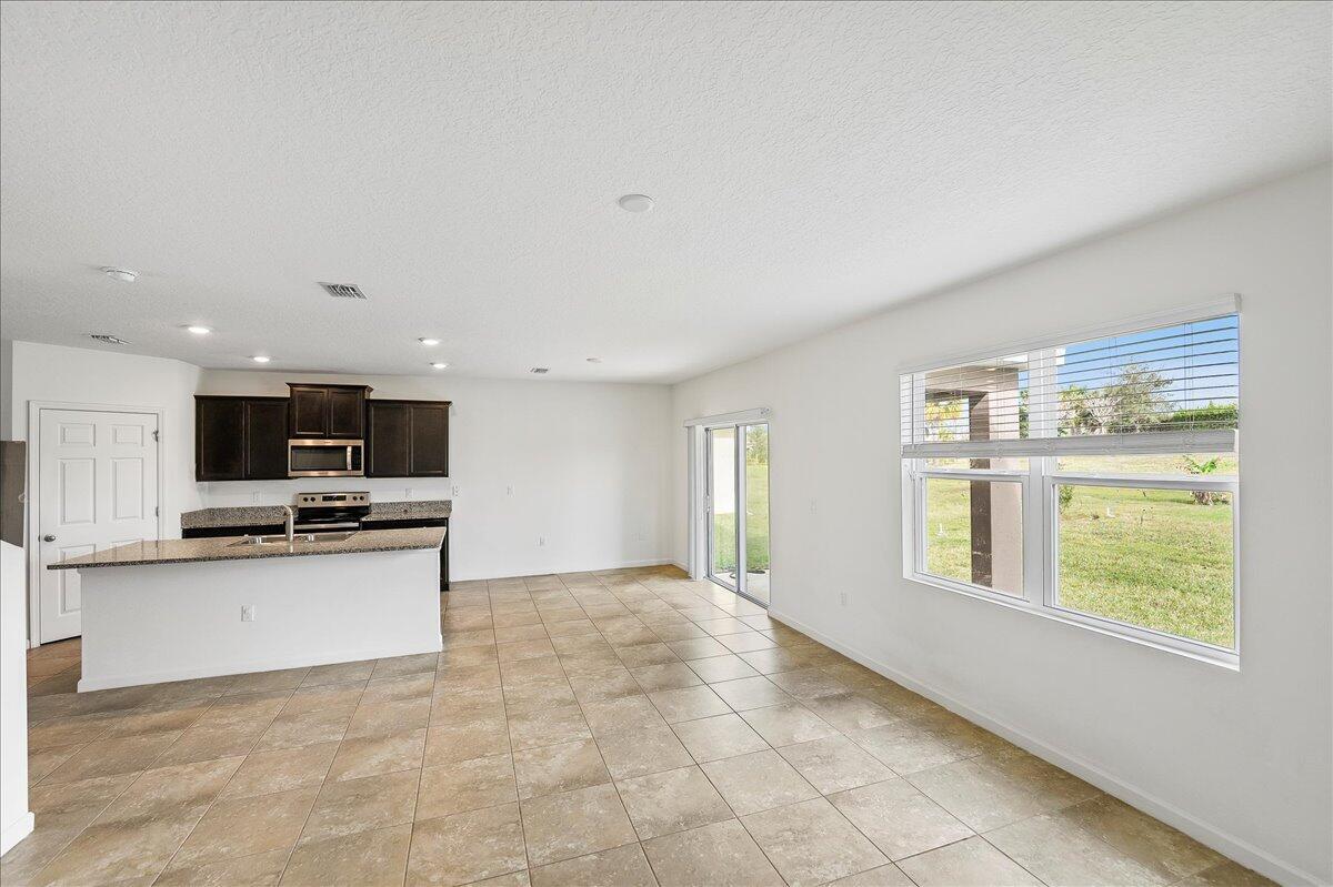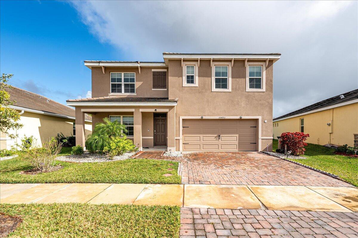 Discover this stunning estate home in the prestigious gated community of Estates at Tradition! Built in 2021, this elegant two-story residence offers abundant space with 5 bedrooms, 3 bathrooms, and a 2-car garage. The first floor features a guest-friendly layout, including a bedroom and full bathroom, perfect for visitors or multi-generational living. The spacious family room seamlessly connects to the dining area and a beautifully designed white kitchen, complete with granite countertops, a center island, and a pantry. A formal dining room adds a touch of sophistication, ideal for hosting special occasions. Upstairs, the expansive master suite boasts dual walk-in closets, providing ample storage. Three additional generously sized bedrooms offer flexibility and functionality, whilea large loft with a walk-in closet and a conveniently located utility room enhance everyday convenience. Home is upgraded with a tile room and has all storm protection! Outside, the back porch and large back yard offer plenty of space for outdoor activities and entertaining. This home is a rare find and perfict for your family! Top Tradition location convenient to areas shopping, schools, restaurant's and more!