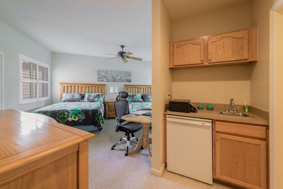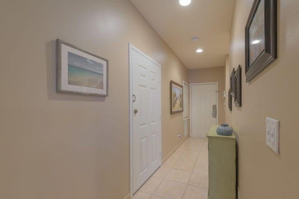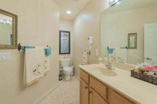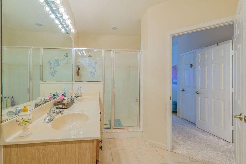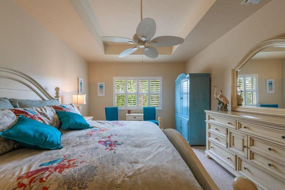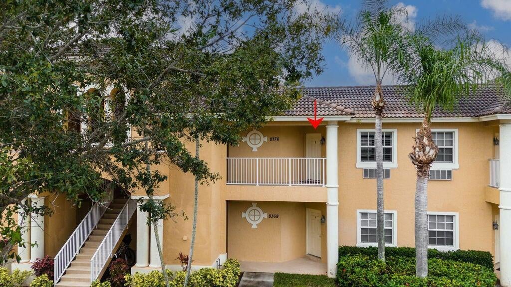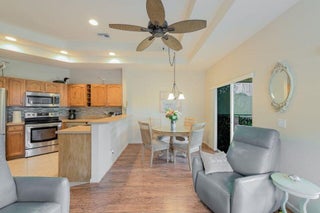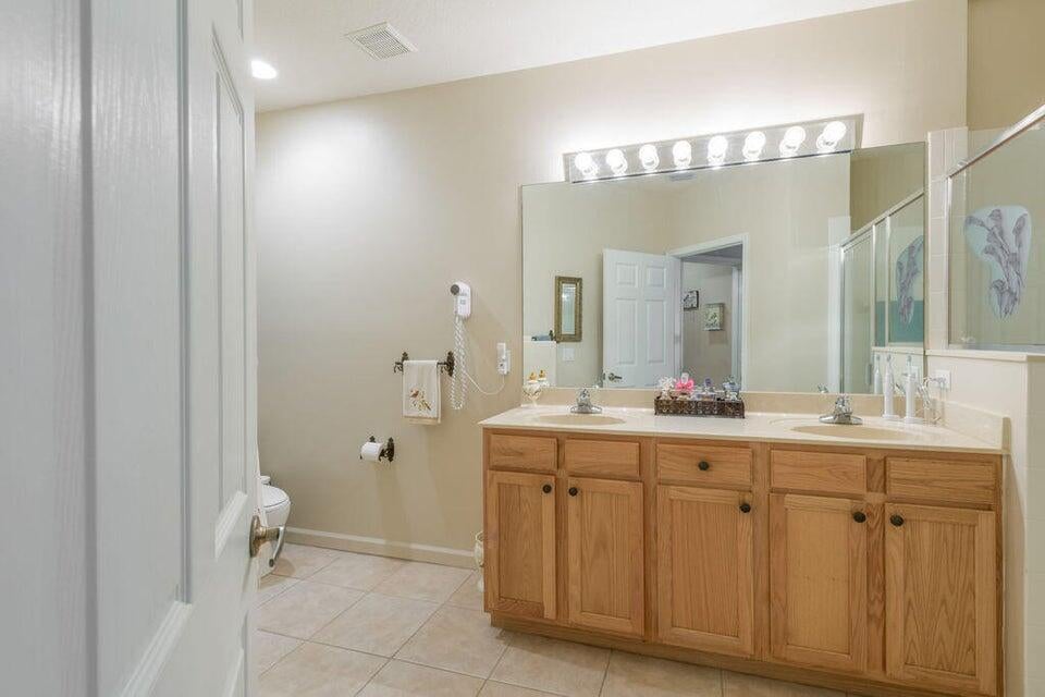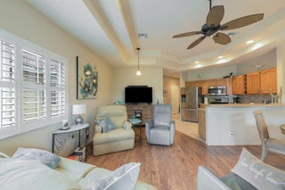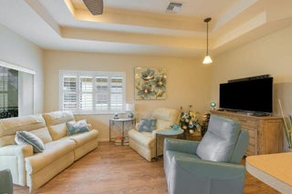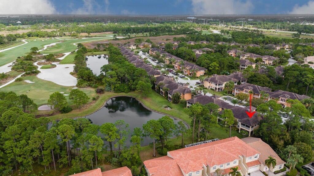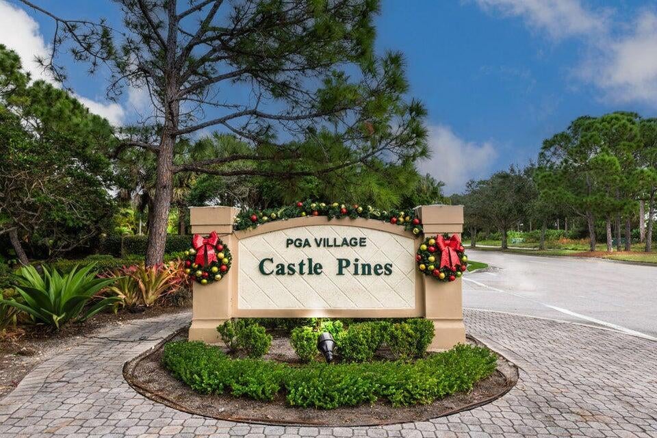 WHAT A VIEW! Enjoy the Quietude of the golf course from the large screened lanai while overlooking the waterfront and PGA 16th green from the large screened lanai. Serenity abounds after a successful day on the course! This living space of AWES is yours for proud ownership, recreational use and investment return. BONUS: only 1.5 miles from NY Mets Spring Training Stadium. There are two separate fully furnished turnkey living areas with their own private entrances. Side A has a full size updated kitchen, a newer air conditioner (2022), a full bath, and a half bath. Side B studio - kitchenette, full sized bath, A/C unit for comfort - which can be locked off from side A. Short-term or long-term rentals are okay in this Castle Pines PGA community and is just a short walk to pool.