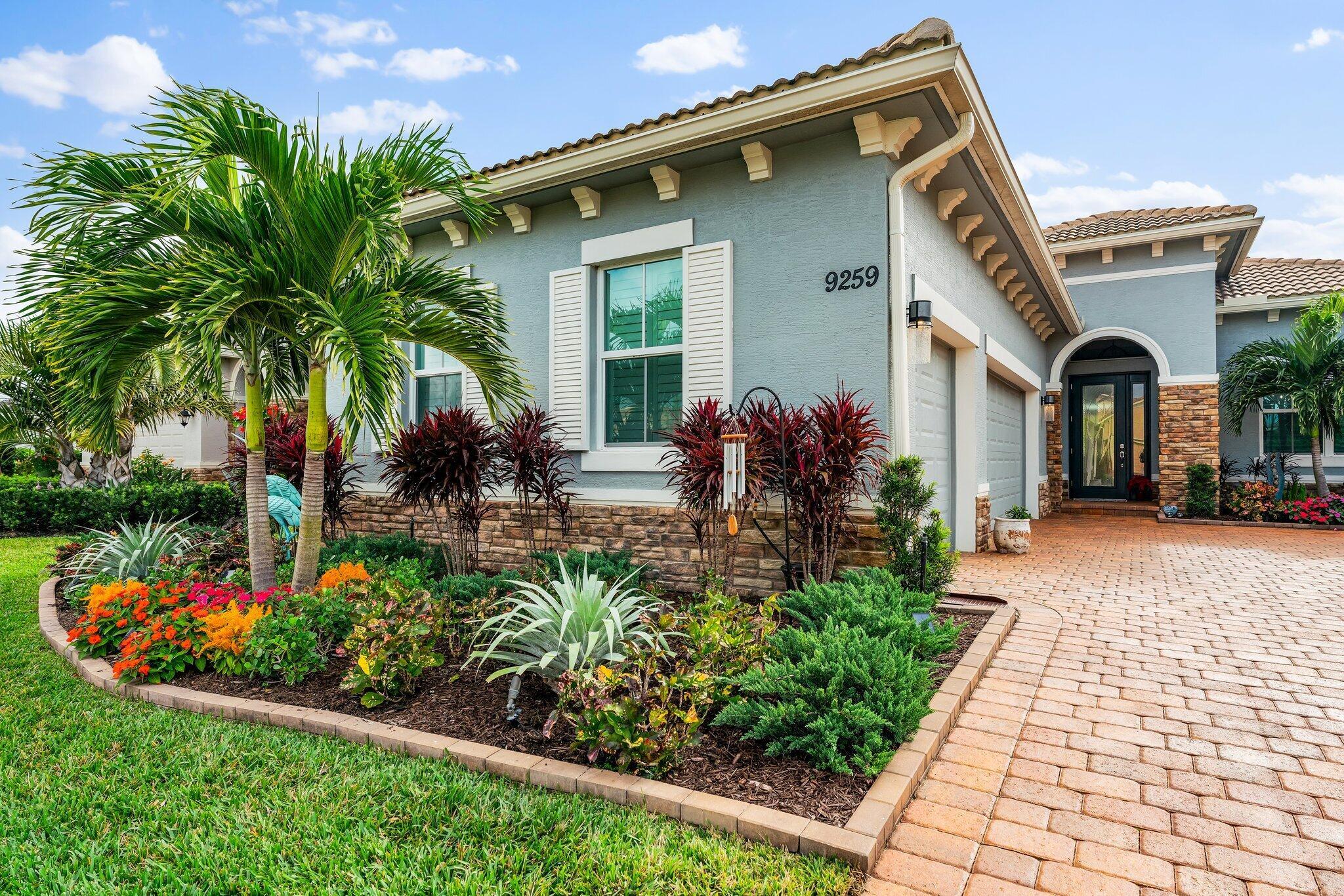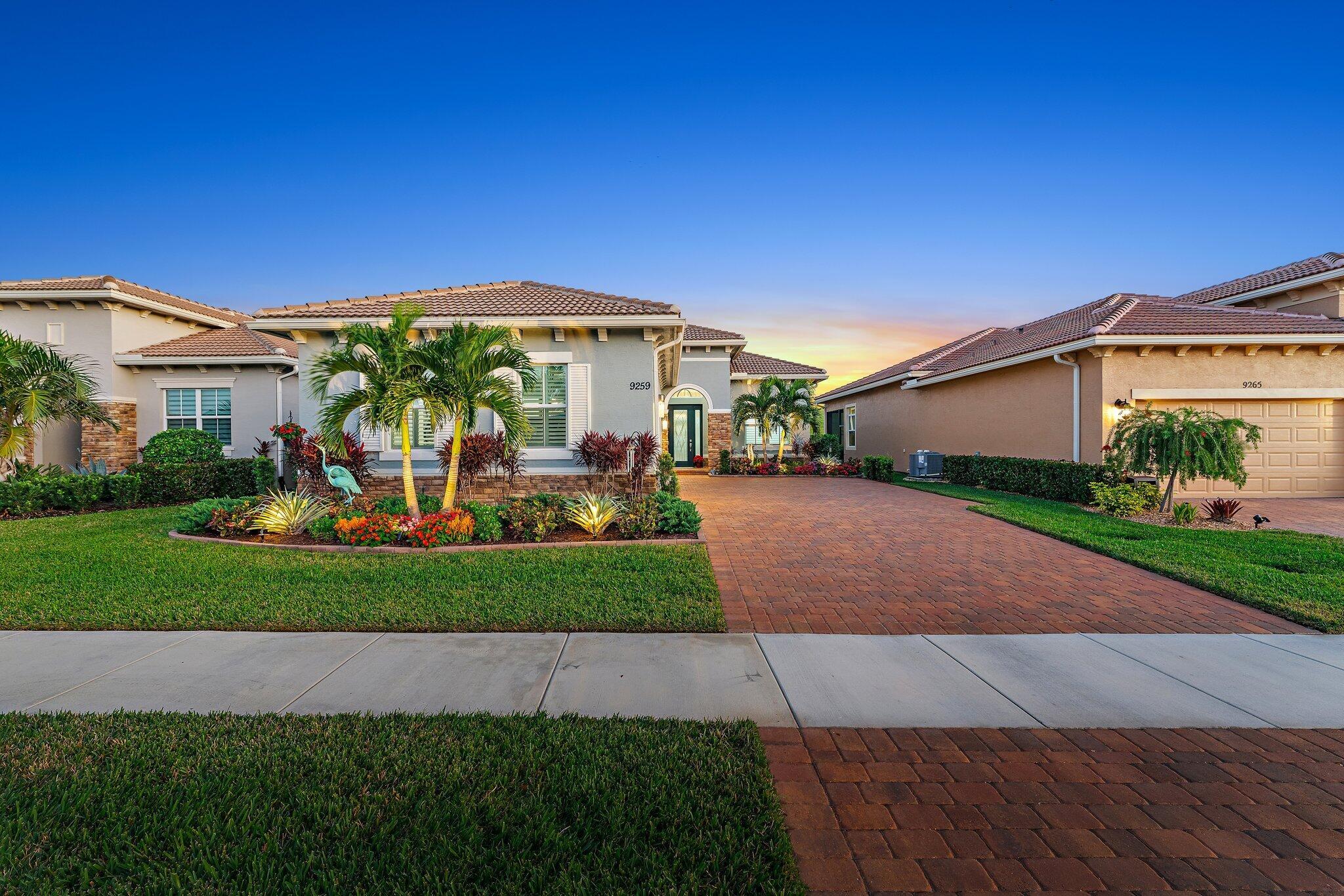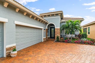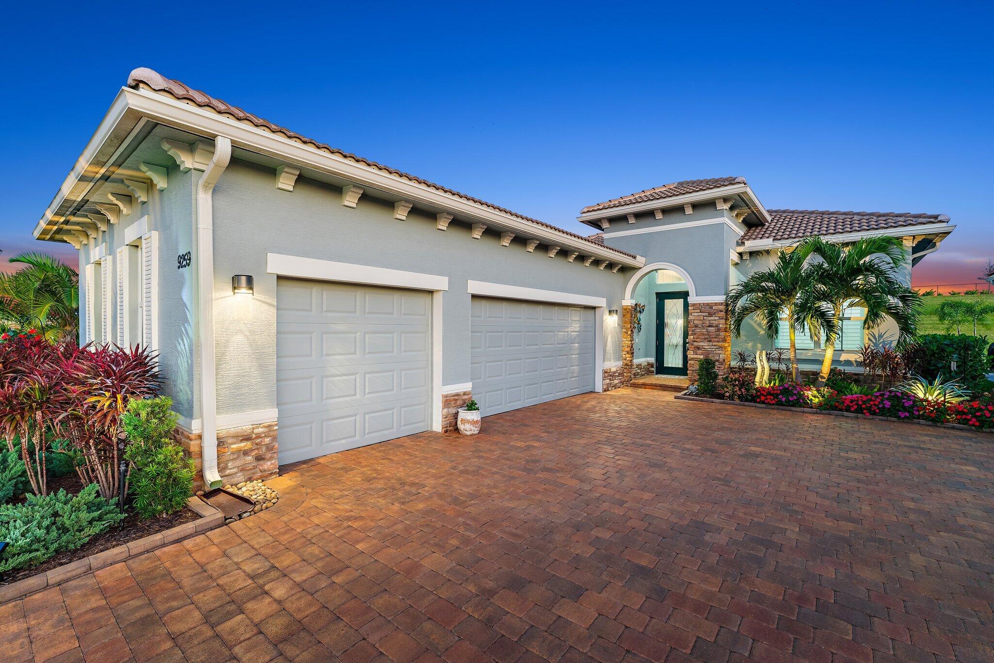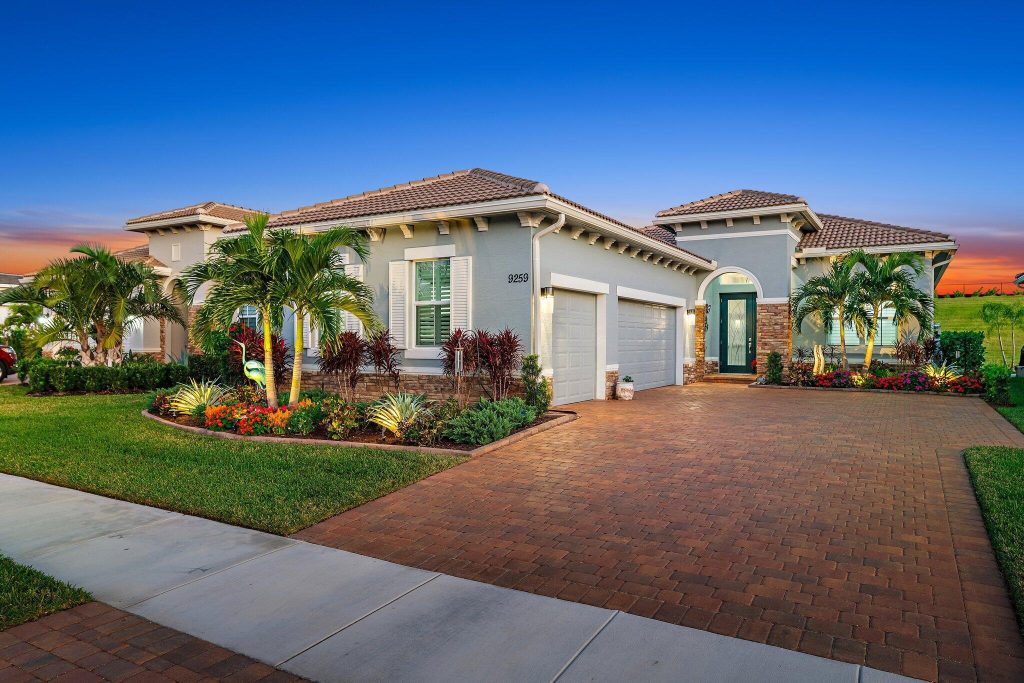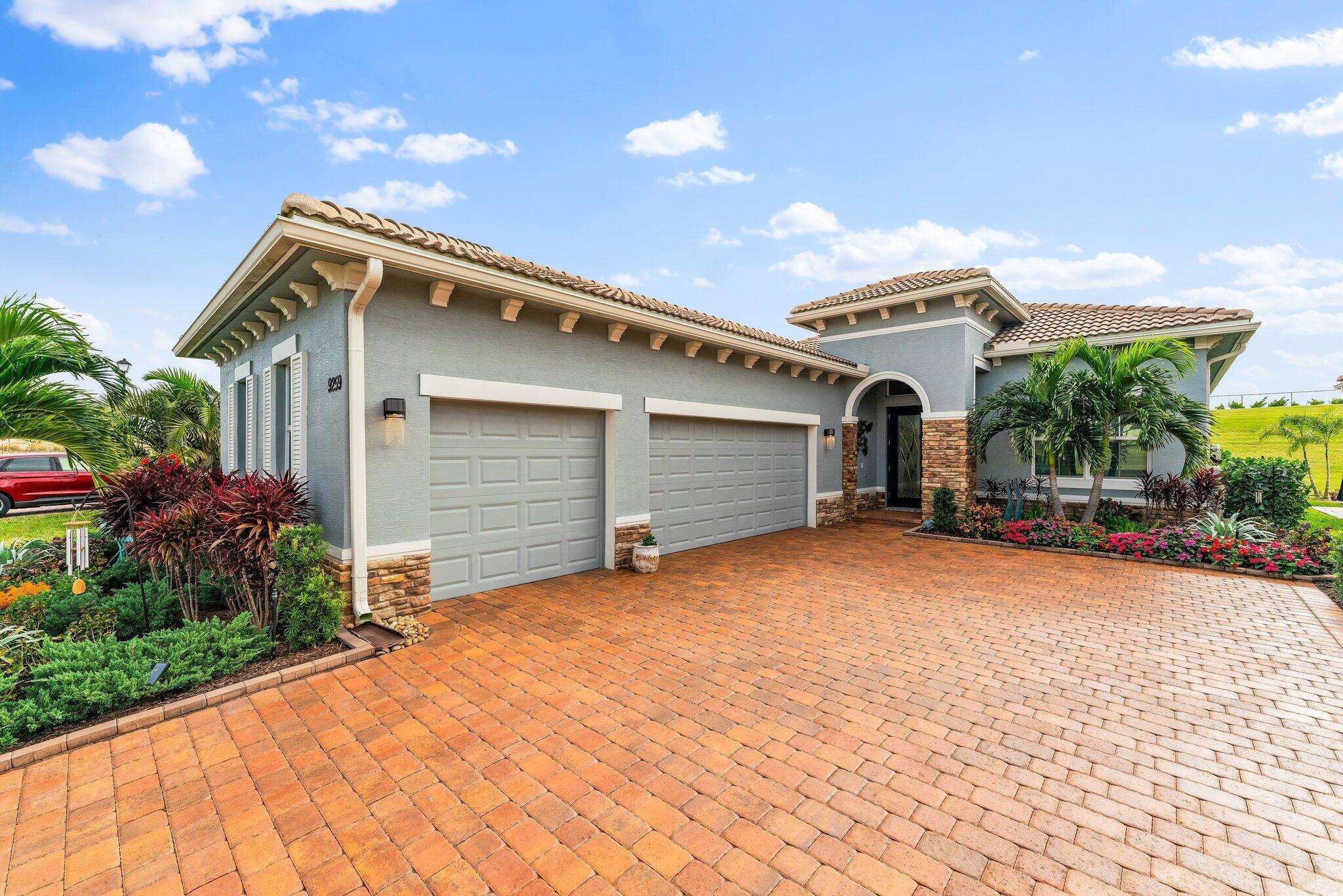 Welcome to 9259 SW Miracoli Way, an exquisite 3-bedroom, 2.5-bathroom CBS construction home with a stunning pool and hot tub, located in the prestigious Verano community of Port St Lucie, FL! This property combines luxury and comfort in one of Florida's most sought-after neighborhoods.As you enter this beautifully designed home, you are greeted by an open-concept layout that seamlessly blends spacious living and dining areas, perfect for entertaining family and friends. The well-appointed kitchen boasts modern appliances, waterfall quartz countertops, ample storage, and a breakfast nook overlooking the inviting outdoor space.Custom cabinetry and stone fireplace brings warmth and ambiance to the main living area. This home has more upgrades than you could ever imagine. Customwindow treatments and crown molding throughout enhance the entire home. Every closet has been upgraded with custom shelving units to add to the convenience and increase the storage space. Retreat to the expansive master suite with volume ceilings, featuring a lavish en-suite bathroom with dual sinks, a soaking tub, and a walk-in shower, providing a perfect oasis for relaxation. Two additional bedrooms, each with their own bathrooms, ensure privacy and convenience for guests or family. Step outside to your private paradise, where you'll find a sparkling pool and soothing hot tub surrounded by lush landscaping. Pool is equipped with aqua link so you can operate pool from anywhere. This outdoor haven is perfect for sunbathing, swimming, or hosting summer barbecues. Custom motorized hurricane rated screens will protect your outdoor space and give you peace of mind. The 3 car garage is oversized and custom cabinets give you ample storage while the insulated garage keeps things cool. The floor was upgraded with epoxy flooring. This is a garage to be proud of. The Cresswind neighborhood is a boutique 55+ section within PGA Verano of about 245 homes. Cresswind has its own pool, putting green and outside pavilion where neighbors gather to enjoy each others company. They also have access to all that PGA Verano offers: a dynamic resort-style living experience, featuring extensive amenities such as a 27-court pickleball facility, scenic walking paths, both indoor and outdoor pools, multiple fitness centers, a sauna, a dog park, tennis courts, and a variety of social clubs and activities. HOA dues cover basic cable, internet, alarm monitoring, security, lawn care, and maintenance of common areas, along with access to all amenity centers. Golf enthusiasts will appreciate the cart path to the PGA Golf Club, with optional membership and varying availability. This could be your dream home! Call and schedule showing today!!
