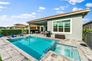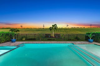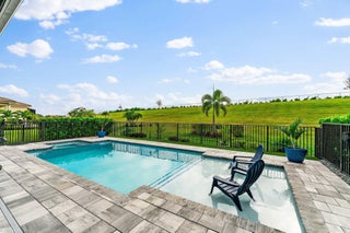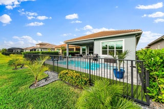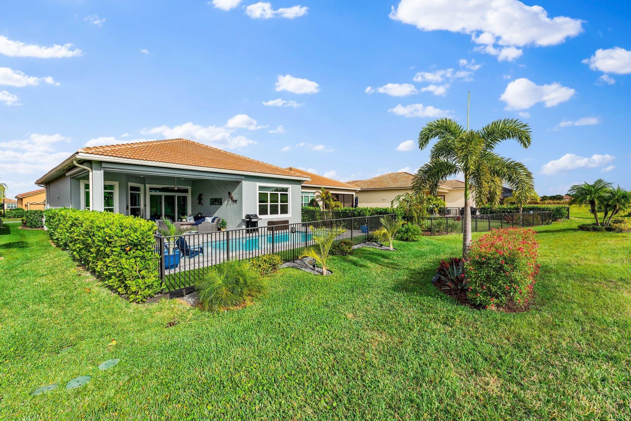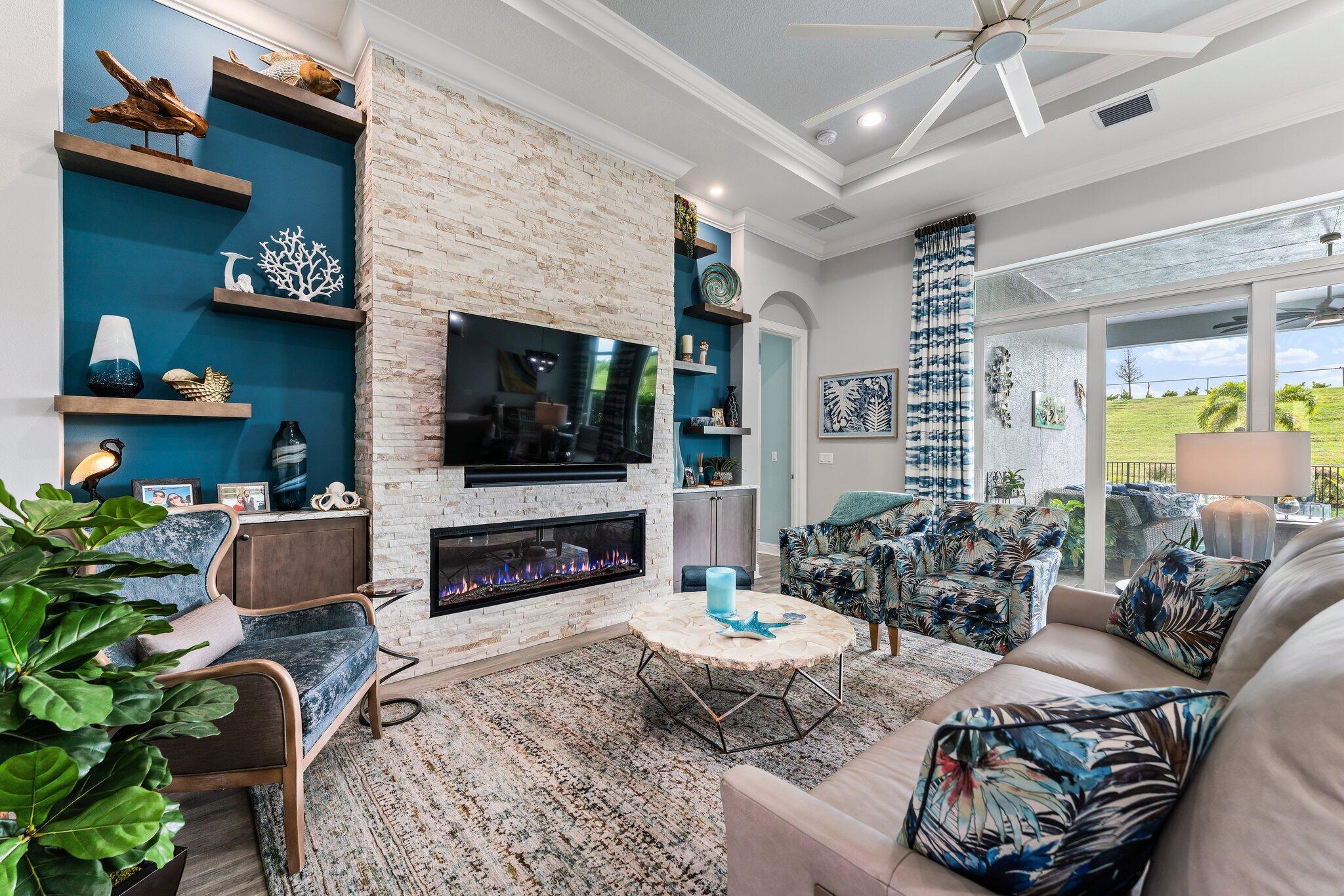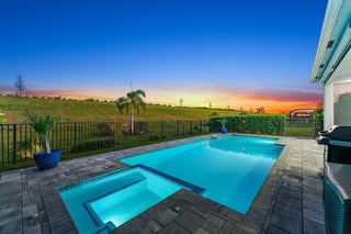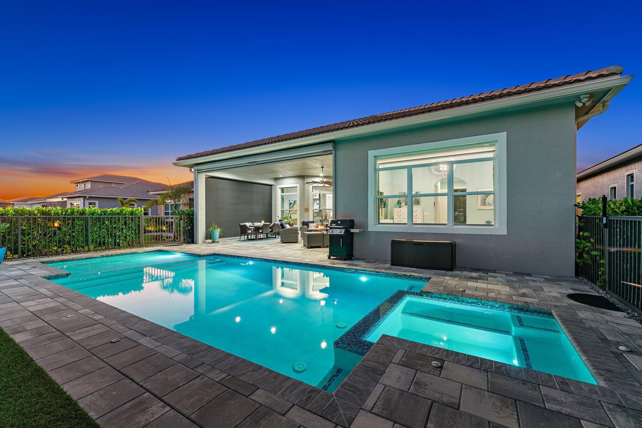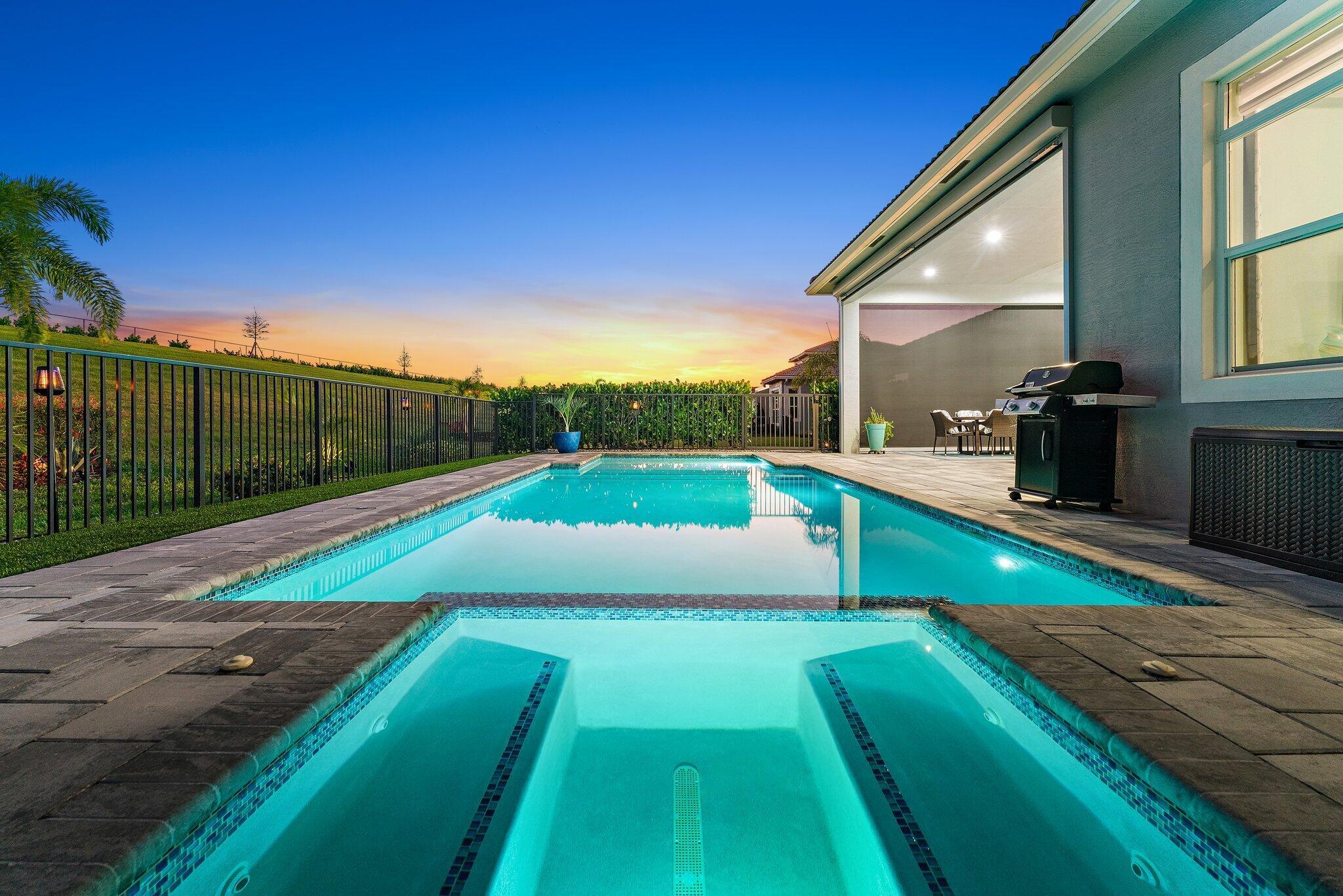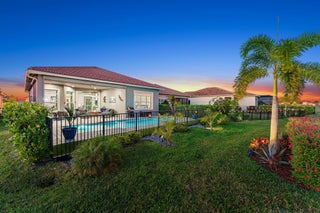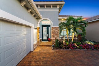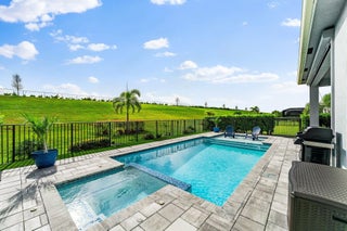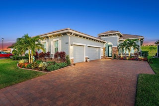 Welcome to 9259 SW Miracoli Way, an exquisite 3-bedroom, 2.5-bathroom CBS construction home with a stunning pool and hot tub, located in the prestigious Verano community of Port St Lucie, FL! This property combines luxury and comfort in one of Florida's most sought-after neighborhoods.As you enter this beautifully designed home, you are greeted by an open-concept layout that seamlessly blends spacious living and dining areas, perfect for entertaining family and friends. The well-appointed kitchen boasts modern appliances, waterfall quartz countertops, ample storage, and a breakfast nook overlooking the inviting outdoor space.Custom cabinetry and stone fireplace brings warmth and ambiance to the main living area. This home has more upgrades than you could ever imagine. Customwindow treatments and crown molding throughout enhance the entire home. Every closet has been upgraded with custom shelving units to add to the convenience and increase the storage space. Retreat to the expansive master suite with volume ceilings, featuring a lavish en-suite bathroom with dual sinks, a soaking tub, and a walk-in shower, providing a perfect oasis for relaxation. Two additional bedrooms, each with their own bathrooms, ensure privacy and convenience for guests or family. Step outside to your private paradise, where you'll find a sparkling pool and soothing hot tub surrounded by lush landscaping. Pool is equipped with aqua link so you can operate pool from anywhere. This outdoor haven is perfect for sunbathing, swimming, or hosting summer barbecues. Custom motorized hurricane rated screens will protect your outdoor space and give you peace of mind. The 3 car garage is oversized and custom cabinets give you ample storage while the insulated garage keeps things cool. The floor was upgraded with epoxy flooring. This is a garage to be proud of. The Cresswind neighborhood is a boutique 55+ section within PGA Verano of about 245 homes. Cresswind has its own pool, putting green and outside pavilion where neighbors gather to enjoy each others company. They also have access to all that PGA Verano offers: a dynamic resort-style living experience, featuring extensive amenities such as a 27-court pickleball facility, scenic walking paths, both indoor and outdoor pools, multiple fitness centers, a sauna, a dog park, tennis courts, and a variety of social clubs and activities. HOA dues cover basic cable, internet, alarm monitoring, security, lawn care, and maintenance of common areas, along with access to all amenity centers. Golf enthusiasts will appreciate the cart path to the PGA Golf Club, with optional membership and varying availability. This could be your dream home! Call and schedule showing today!!