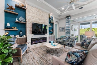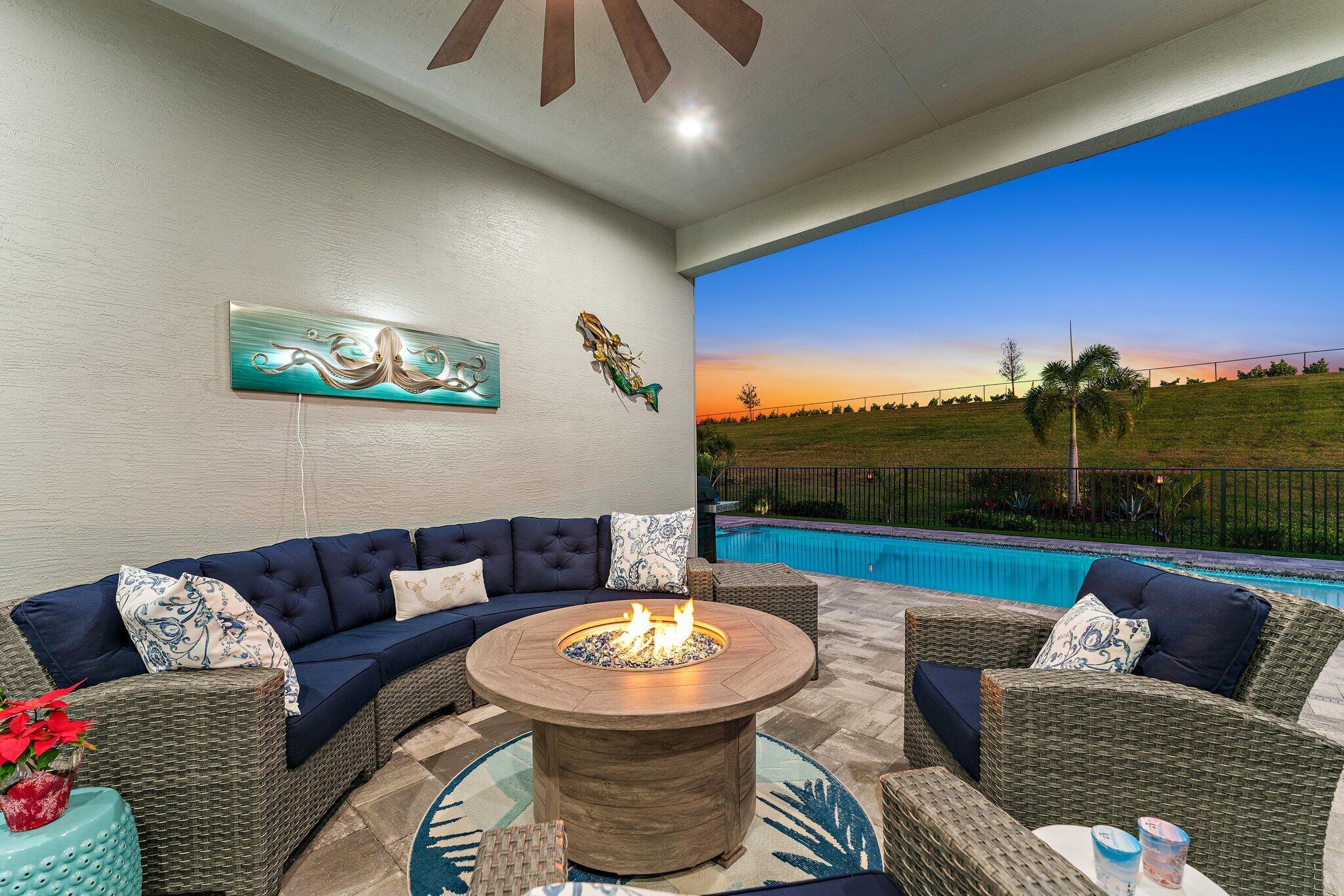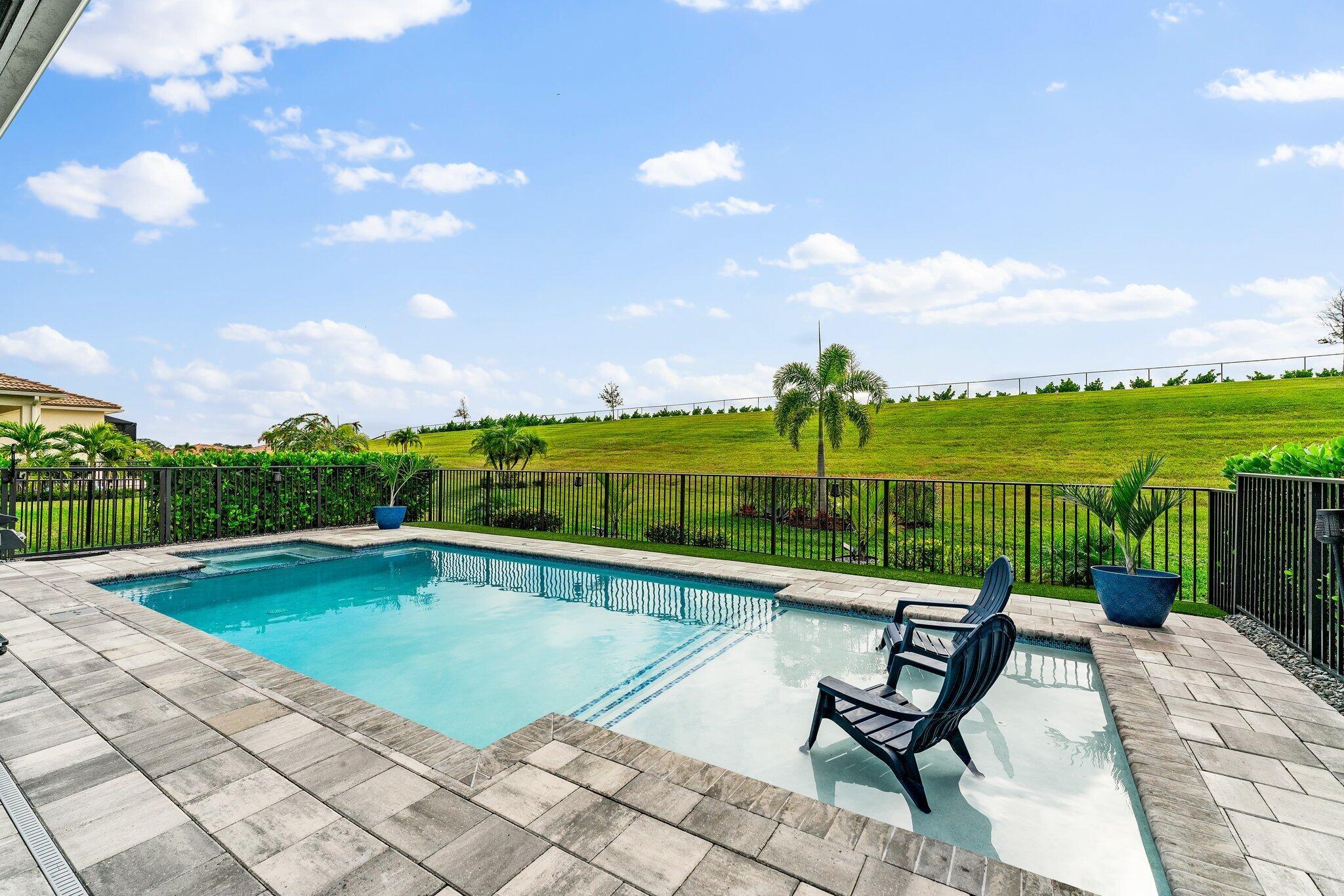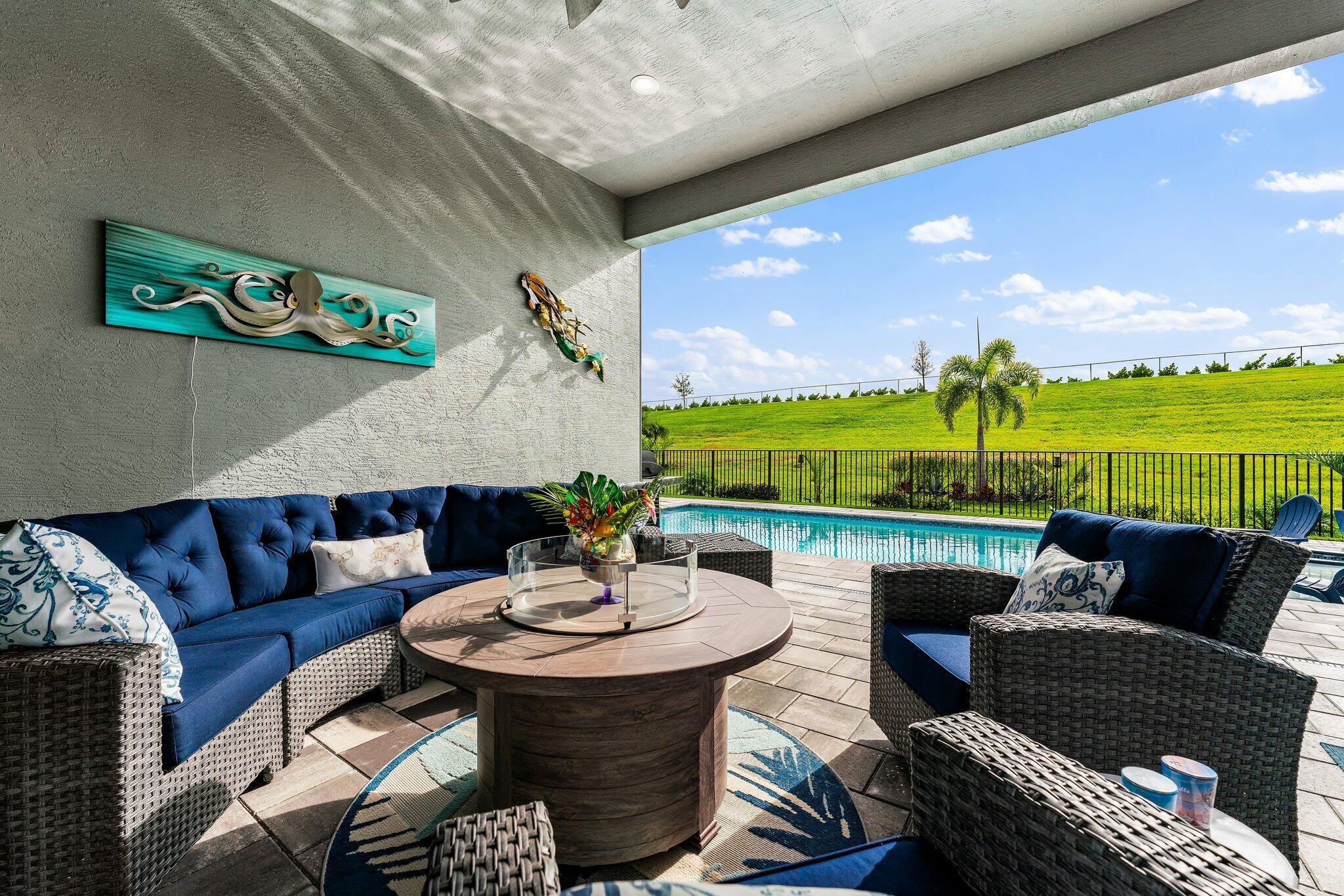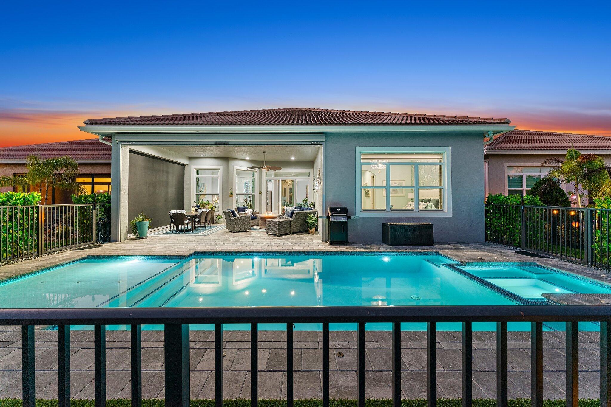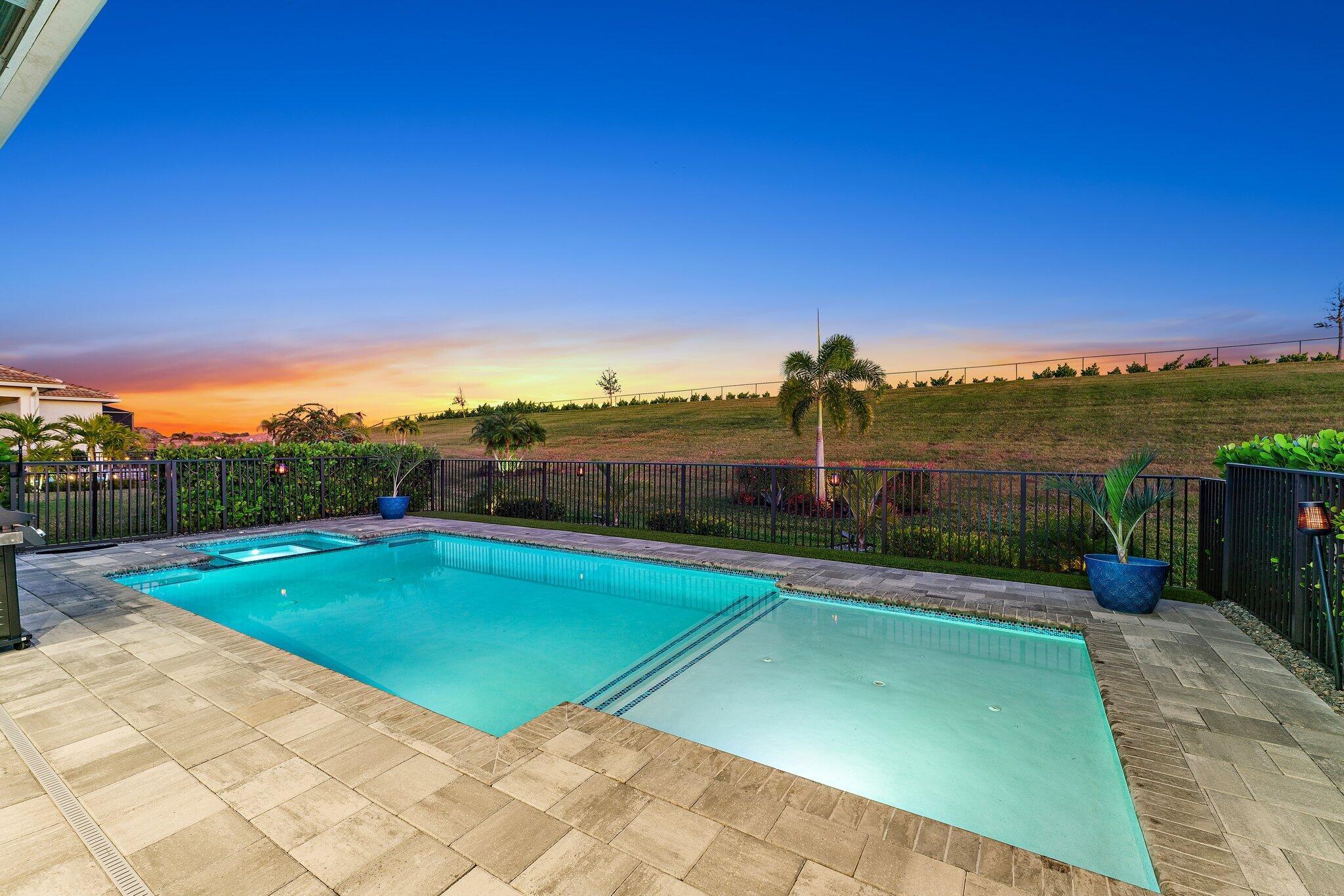 Welcome to 9259 SW Miracoli Way, an exquisite 3-bedroom, 2.5-bathroom CBS construction home with a stunning pool and hot tub, located in the prestigious Verano community of Port St Lucie, FL! This property combines luxury and comfort in one of Florida's most sought-after neighborhoods.As you enter this beautifully designed home, you are greeted by an open-concept layout that seamlessly blends spacious living and dining areas, perfect for entertaining family and friends. The well-appointed kitchen boasts modern appliances, waterfall quartz countertops, ample storage, and a breakfast nook overlooking the inviting outdoor space.Custom cabinetry and stone fireplace brings warmth and ambiance to the main living area. This home has more upgrades than you could ever imagine. Customwindow treatments and crown molding throughout enhance the entire home. Every closet has been upgraded with custom shelving units to add to the convenience and increase the storage space. Retreat to the expansive master suite with volume ceilings, featuring a lavish en-suite bathroom with dual sinks, a soaking tub, and a walk-in shower, providing a perfect oasis for relaxation. Two additional bedrooms, each with their own bathrooms, ensure privacy and convenience for guests or family. Step outside to your private paradise, where you'll find a sparkling pool and soothing hot tub surrounded by lush landscaping. Pool is equipped with aqua link so you can operate pool from anywhere. This outdoor haven is perfect for sunbathing, swimming, or hosting summer barbecues. Custom motorized hurricane rated screens will protect your outdoor space and give you peace of mind. The 3 car garage is oversized and custom cabinets give you ample storage while the insulated garage keeps things cool. The floor was upgraded with epoxy flooring. This is a garage to be proud of. The Cresswind neighborhood is a boutique 55+ section within PGA Verano of about 245 homes. Cresswind has its own pool, putting green and outside pavilion where neighbors gather to enjoy each others company. They also have access to all that PGA Verano offers: a dynamic resort-style living experience, featuring extensive amenities such as a 27-court pickleball facility, scenic walking paths, both indoor and outdoor pools, multiple fitness centers, a sauna, a dog park, tennis courts, and a variety of social clubs and activities. HOA dues cover basic cable, internet, alarm monitoring, security, lawn care, and maintenance of common areas, along with access to all amenity centers. Golf enthusiasts will appreciate the cart path to the PGA Golf Club, with optional membership and varying availability. This could be your dream home! Call and schedule showing today!!