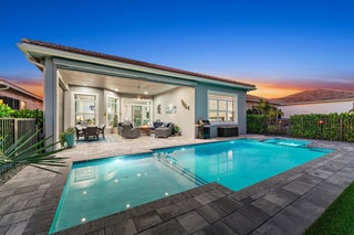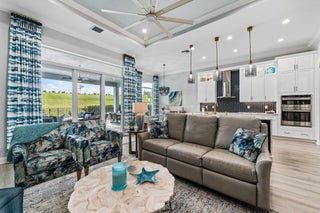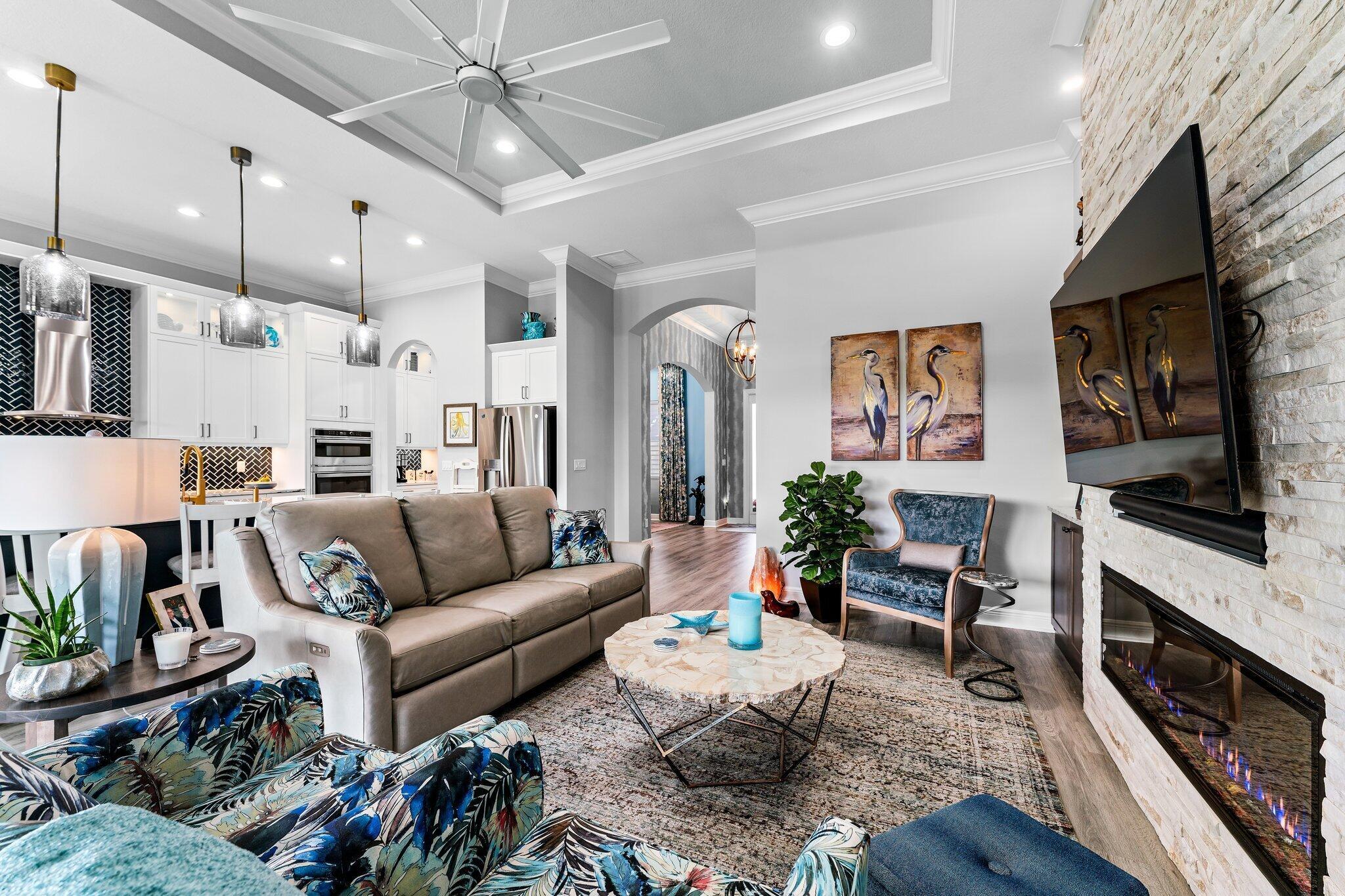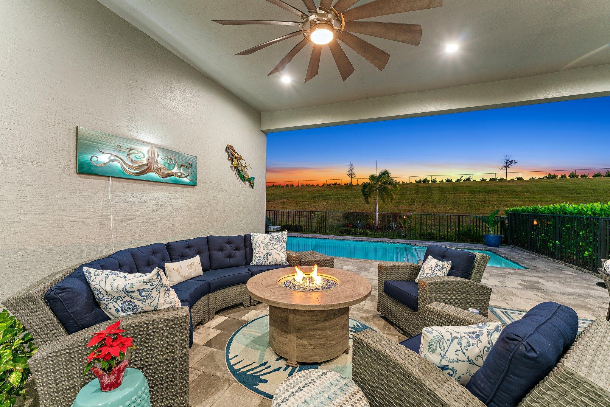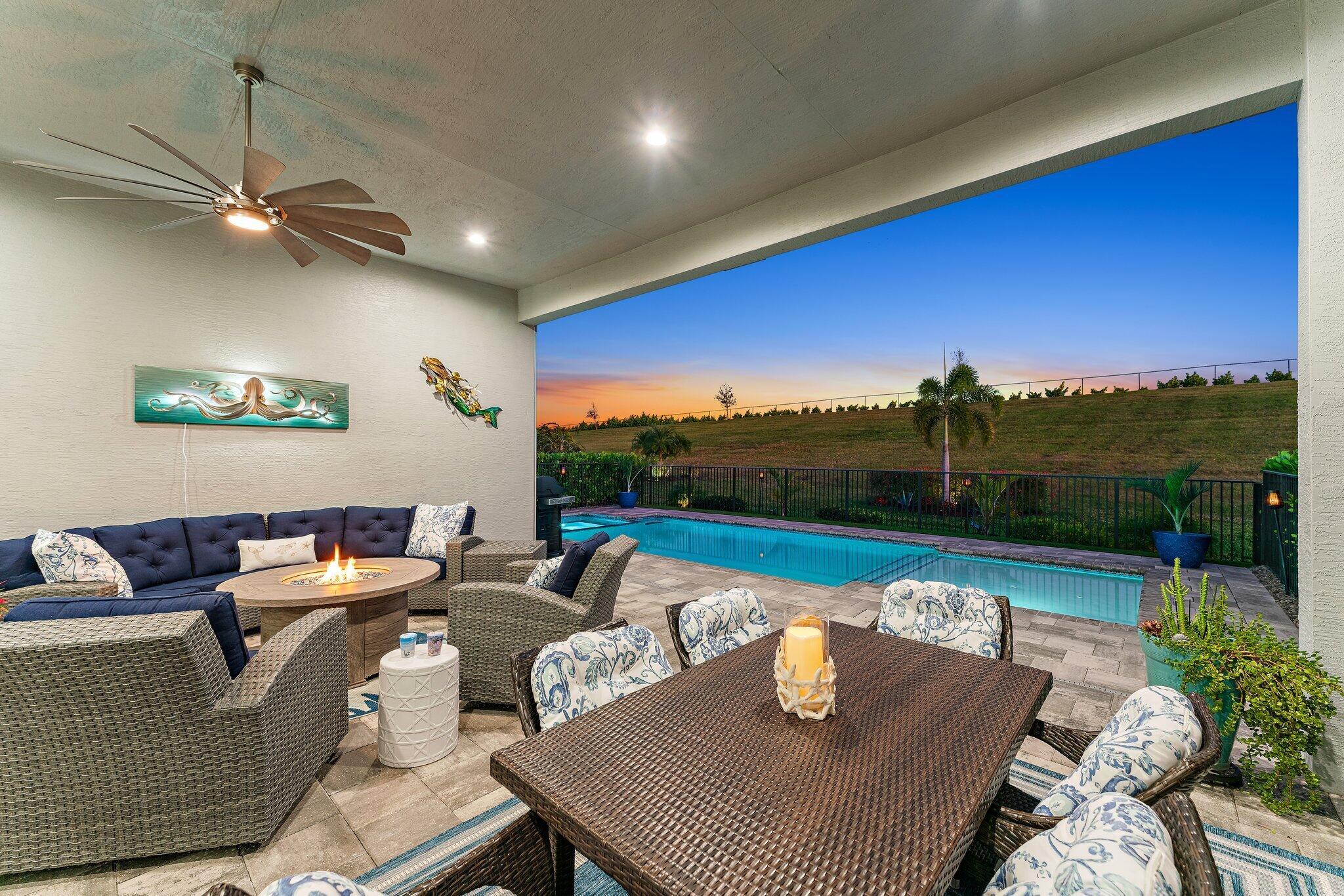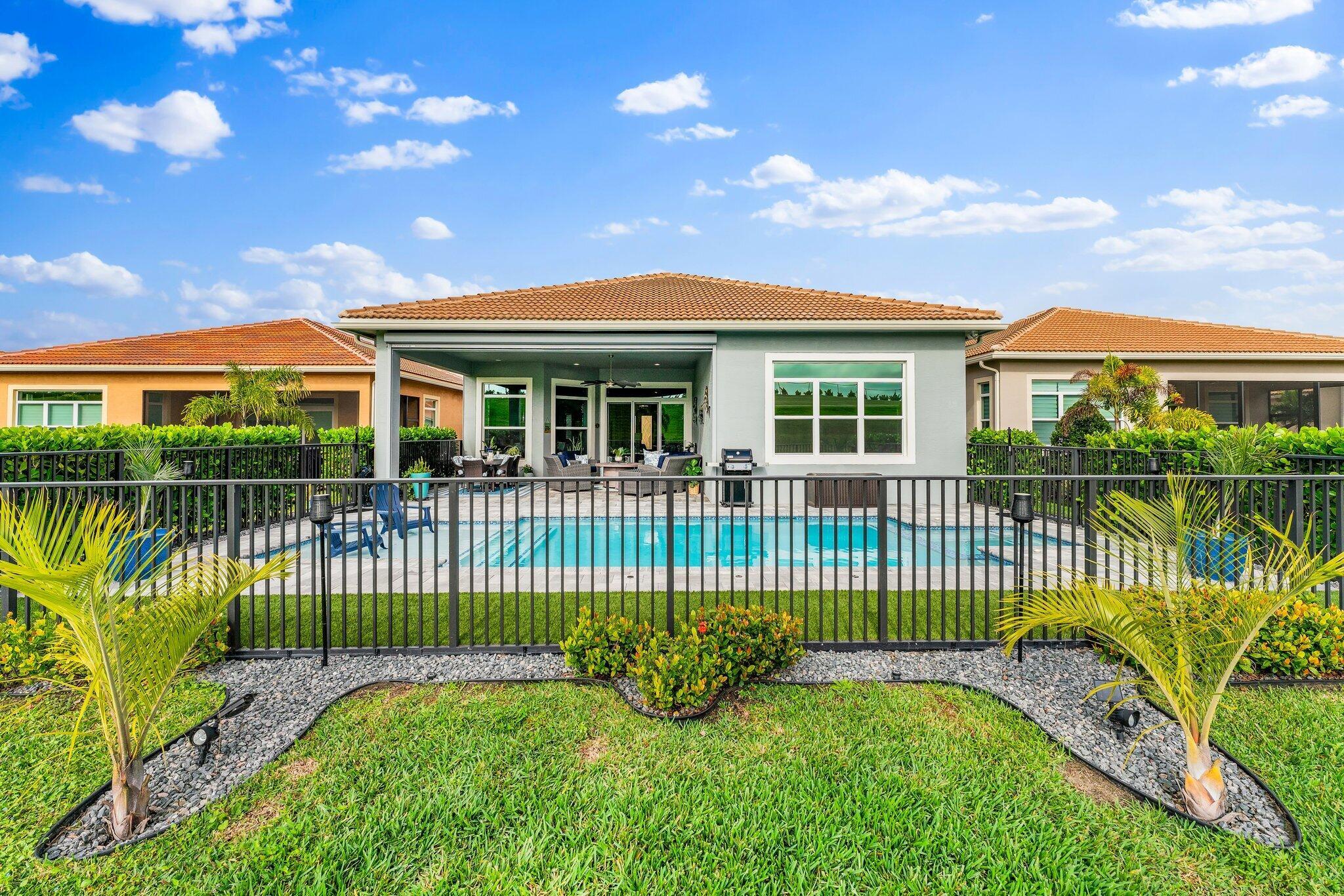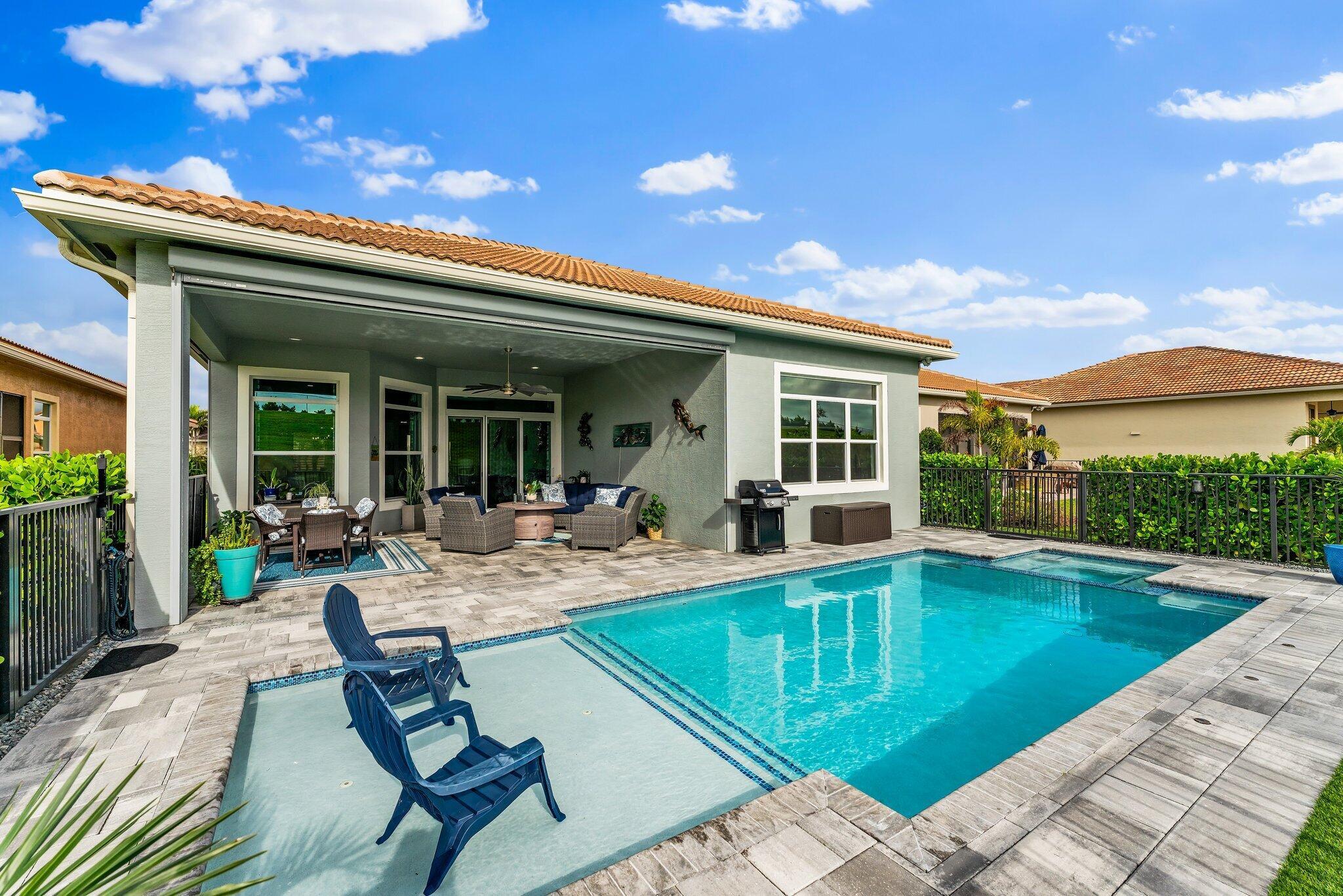 Welcome to 9259 SW Miracoli Way, an exquisite 3-bedroom, 2.5-bathroom CBS construction home with a stunning pool and hot tub, located in the prestigious Verano community of Port St Lucie, FL! This property combines luxury and comfort in one of Florida's most sought-after neighborhoods.As you enter this beautifully designed home, you are greeted by an open-concept layout that seamlessly blends spacious living and dining areas, perfect for entertaining family and friends. The well-appointed kitchen boasts modern appliances, waterfall quartz countertops, ample storage, and a breakfast nook overlooking the inviting outdoor space.Custom cabinetry and stone fireplace brings warmth and ambiance to the main living area. This home has more upgrades than you could ever imagine. Customwindow treatments and crown molding throughout enhance the entire home. Every closet has been upgraded with custom shelving units to add to the convenience and increase the storage space. Retreat to the expansive master suite with volume ceilings, featuring a lavish en-suite bathroom with dual sinks, a soaking tub, and a walk-in shower, providing a perfect oasis for relaxation. Two additional bedrooms, each with their own bathrooms, ensure privacy and convenience for guests or family. Step outside to your private paradise, where you'll find a sparkling pool and soothing hot tub surrounded by lush landscaping. Pool is equipped with aqua link so you can operate pool from anywhere. This outdoor haven is perfect for sunbathing, swimming, or hosting summer barbecues. Custom motorized hurricane rated screens will protect your outdoor space and give you peace of mind. The 3 car garage is oversized and custom cabinets give you ample storage while the insulated garage keeps things cool. The floor was upgraded with epoxy flooring. This is a garage to be proud of. The Cresswind neighborhood is a boutique 55+ section within PGA Verano of about 245 homes. Cresswind has its own pool, putting green and outside pavilion where neighbors gather to enjoy each others company. They also have access to all that PGA Verano offers: a dynamic resort-style living experience, featuring extensive amenities such as a 27-court pickleball facility, scenic walking paths, both indoor and outdoor pools, multiple fitness centers, a sauna, a dog park, tennis courts, and a variety of social clubs and activities. HOA dues cover basic cable, internet, alarm monitoring, security, lawn care, and maintenance of common areas, along with access to all amenity centers. Golf enthusiasts will appreciate the cart path to the PGA Golf Club, with optional membership and varying availability. This could be your dream home! Call and schedule showing today!!