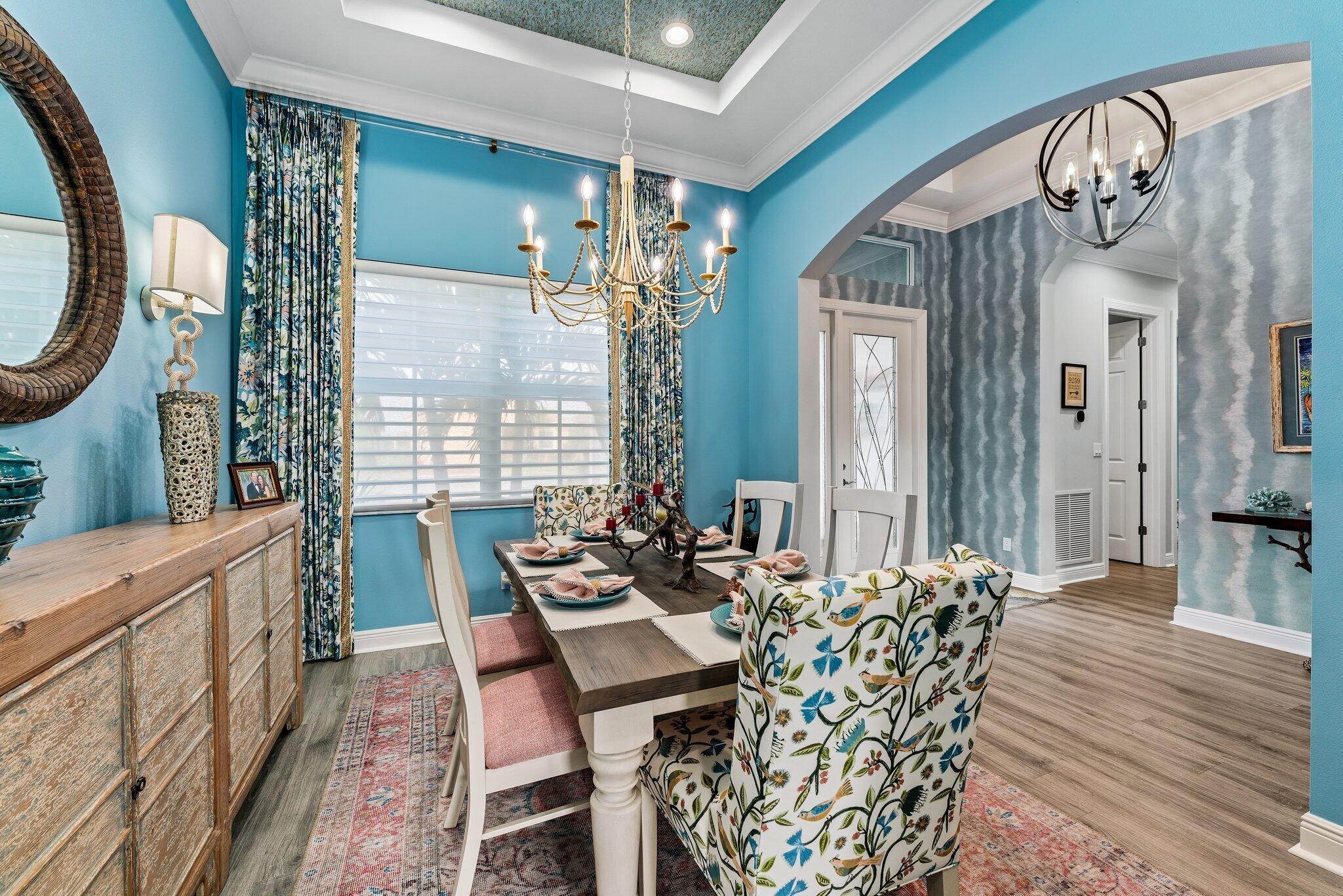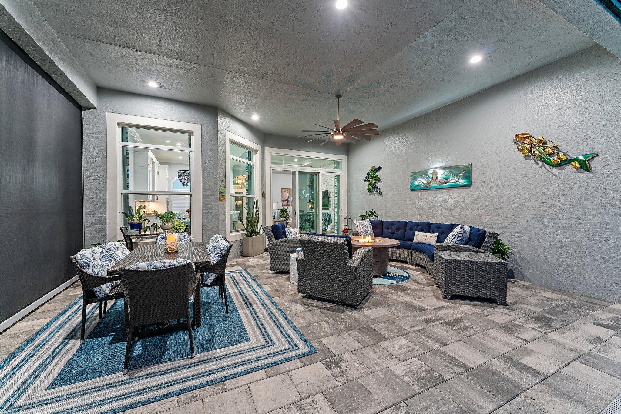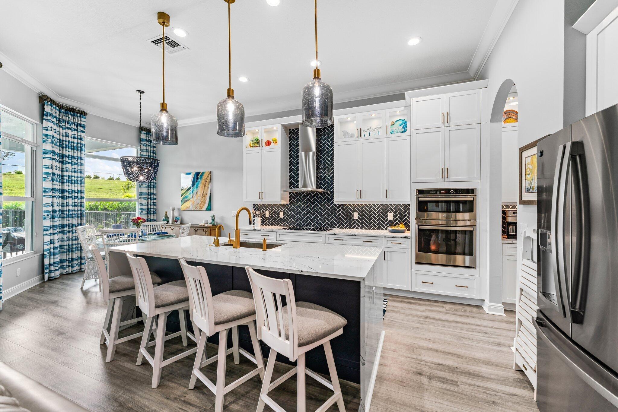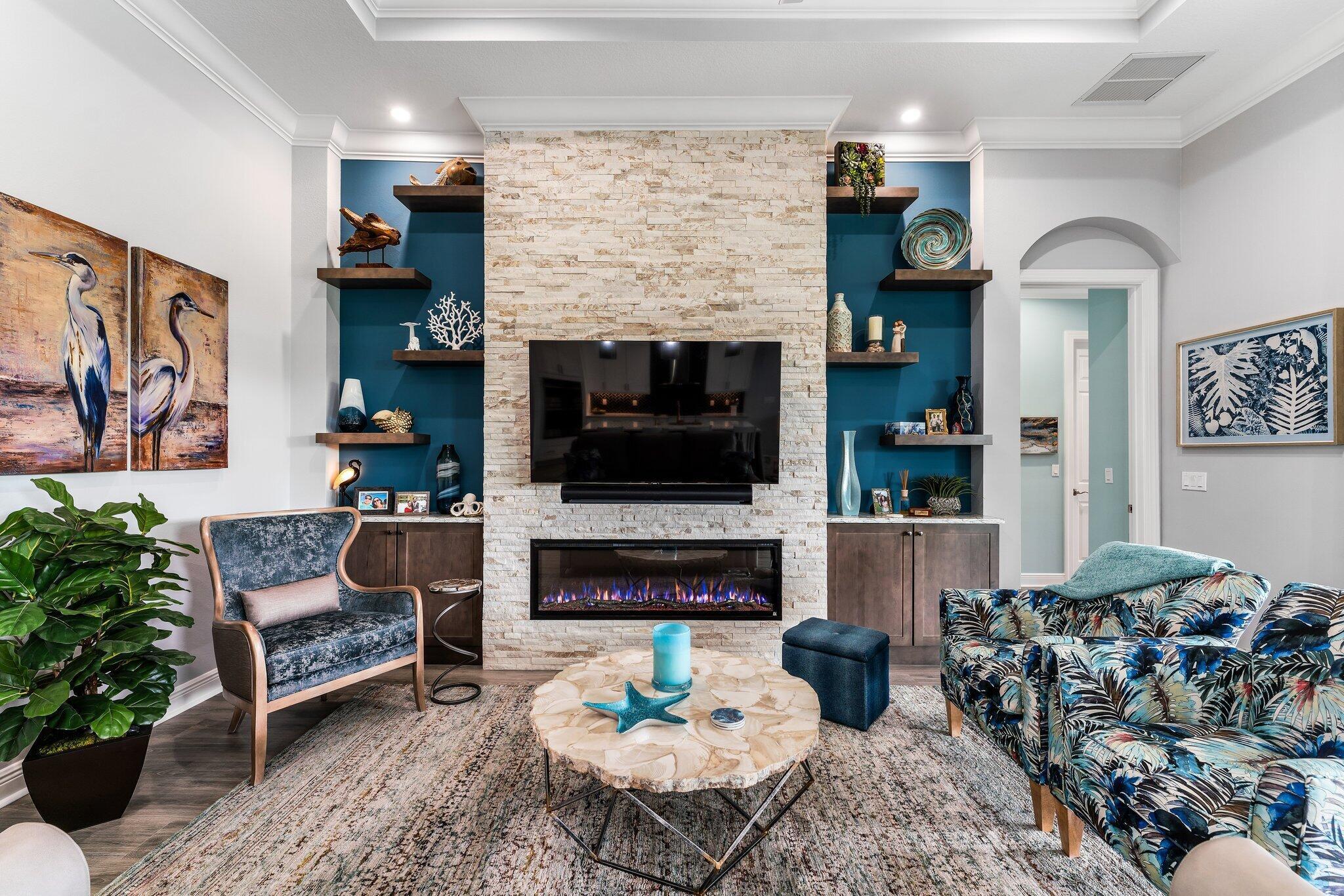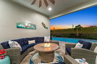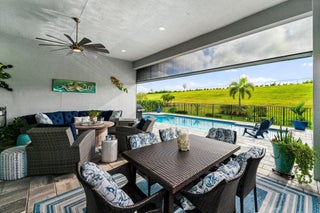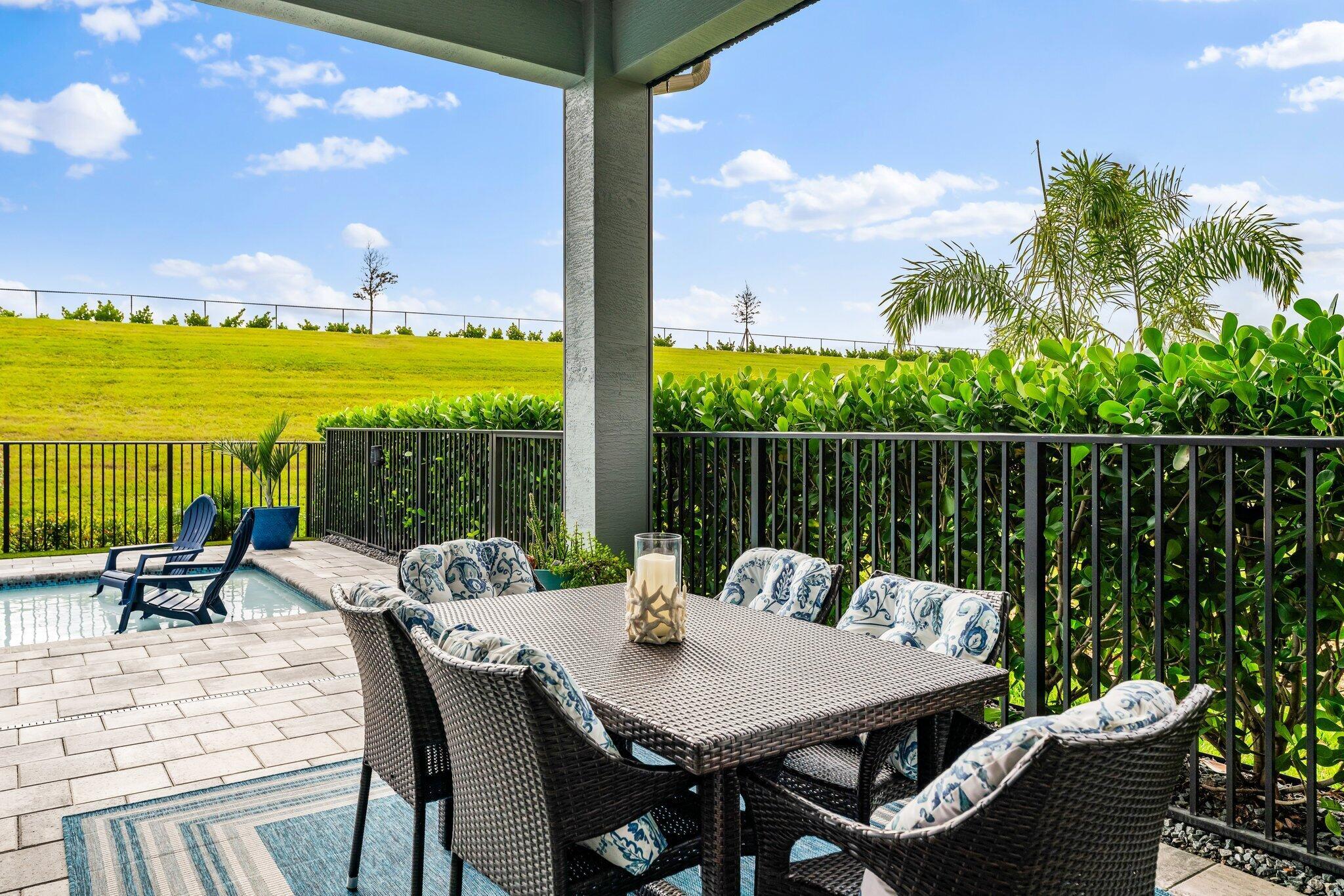 Welcome to 9259 SW Miracoli Way, an exquisite 3-bedroom, 2.5-bathroom CBS construction home with a stunning pool and hot tub, located in the prestigious Verano community of Port St Lucie, FL! This property combines luxury and comfort in one of Florida's most sought-after neighborhoods.As you enter this beautifully designed home, you are greeted by an open-concept layout that seamlessly blends spacious living and dining areas, perfect for entertaining family and friends. The well-appointed kitchen boasts modern appliances, waterfall quartz countertops, ample storage, and a breakfast nook overlooking the inviting outdoor space.Custom cabinetry and stone fireplace brings warmth and ambiance to the main living area. This home has more upgrades than you could ever imagine. Customwindow treatments and crown molding throughout enhance the entire home. Every closet has been upgraded with custom shelving units to add to the convenience and increase the storage space. Retreat to the expansive master suite with volume ceilings, featuring a lavish en-suite bathroom with dual sinks, a soaking tub, and a walk-in shower, providing a perfect oasis for relaxation. Two additional bedrooms, each with their own bathrooms, ensure privacy and convenience for guests or family. Step outside to your private paradise, where you'll find a sparkling pool and soothing hot tub surrounded by lush landscaping. Pool is equipped with aqua link so you can operate pool from anywhere. This outdoor haven is perfect for sunbathing, swimming, or hosting summer barbecues. Custom motorized hurricane rated screens will protect your outdoor space and give you peace of mind. The 3 car garage is oversized and custom cabinets give you ample storage while the insulated garage keeps things cool. The floor was upgraded with epoxy flooring. This is a garage to be proud of. The Cresswind neighborhood is a boutique 55+ section within PGA Verano of about 245 homes. Cresswind has its own pool, putting green and outside pavilion where neighbors gather to enjoy each others company. They also have access to all that PGA Verano offers: a dynamic resort-style living experience, featuring extensive amenities such as a 27-court pickleball facility, scenic walking paths, both indoor and outdoor pools, multiple fitness centers, a sauna, a dog park, tennis courts, and a variety of social clubs and activities. HOA dues cover basic cable, internet, alarm monitoring, security, lawn care, and maintenance of common areas, along with access to all amenity centers. Golf enthusiasts will appreciate the cart path to the PGA Golf Club, with optional membership and varying availability. This could be your dream home! Call and schedule showing today!!