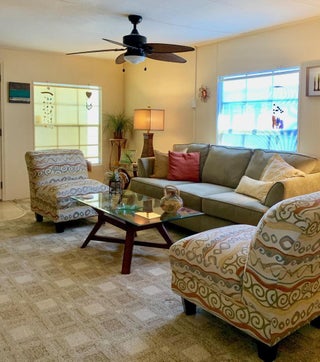 FREE LOT RENT for 30 days w/ this DBL WIDE,2 Bed/2 Bath FURNISHED home. Open to all offers. Den doubles as an extra room/office/living room. Dont hesitate - turnkey home in active 55+ community! Well-maintained! 2019 ROOF, 2018 AC, 2023 VENTS, 2025 POWER WASHED & PAINTED DRIVEWAY, & Kitchen FLOOR REPLACED! Nestled in a warm, welcoming neighborhood, this home offers a true community. Neighbors are like family, hosting parades, dances & dinners while always looking out for one another. Enjoy a close-knit street where friendships flourish & social events unite.PRIME location; 15 min to beach but NO FLOOD ZONE, close to grocery, bank,pharmacy,grocery,postal,& more! Lot lease of 899.25 includes lawn care, trash,free private golf course,heated pool, gym,cards, pickleball, tennis, bocce & more!