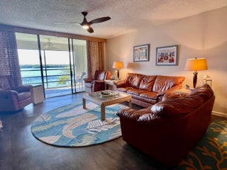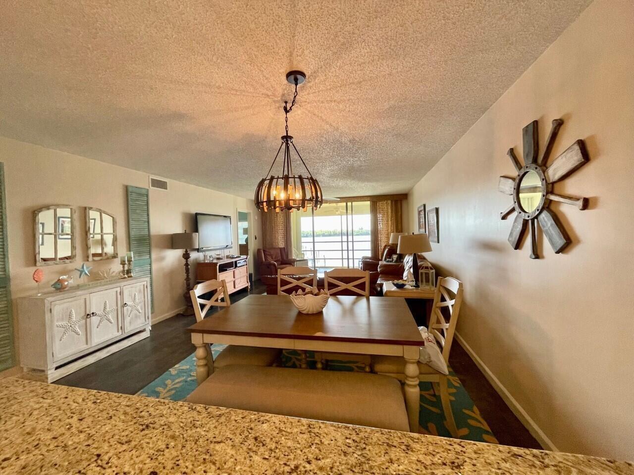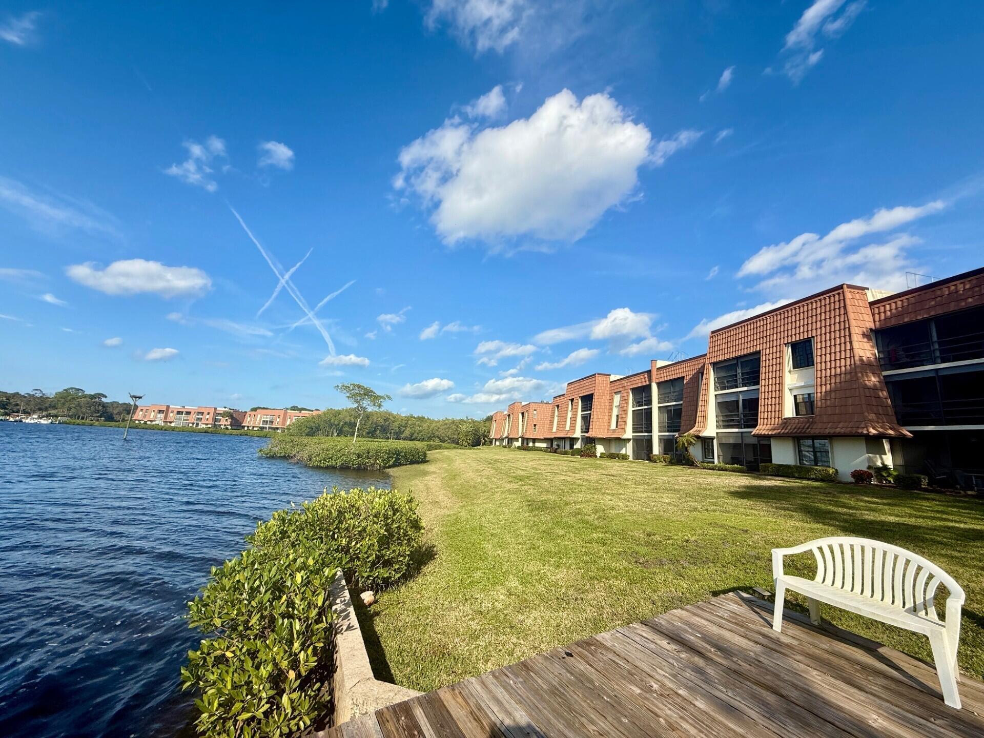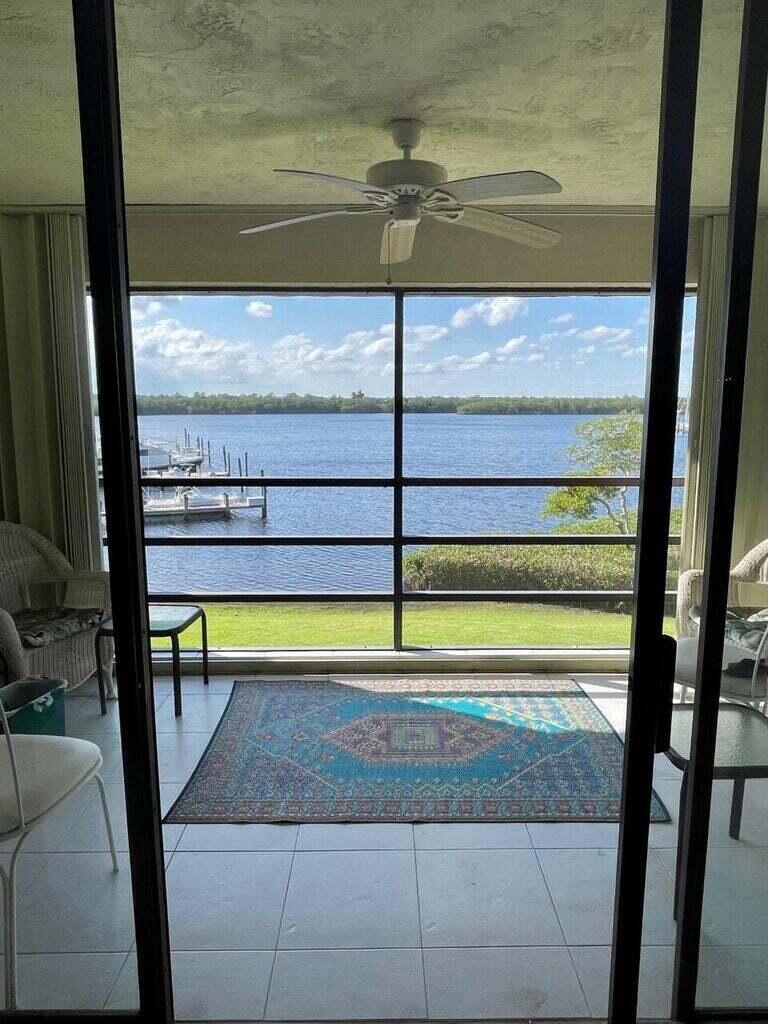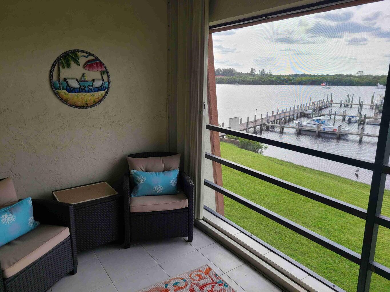 Forever views of the Saint Lucie River and the protected Kitching Cove. Abundant nature and amazing sunsets tucked away but 15 minutes to the beach. Updated 2 bedroom, 2 bath condo for seasonal rent. Open kitchen to dining & living room. Beautifully furnished, turnkey for a stress free stay. Main bedroom, queen bed overlooks water & docks. Spacious master bath. Guest bedroom with twin beds that combine to a king. Large laundry room in unit. Desirable screened in patio to enjoy tranquil views. Active community with heated pool, 2 saunas, tennis/pickleball courts, clubhouse with full kitchen & bbq areas throughout the complex. Completely furnished, includes cable, internet, water, plus electric up to $85 a month. 55+ No smoking complex. 3 month minimum rental.
