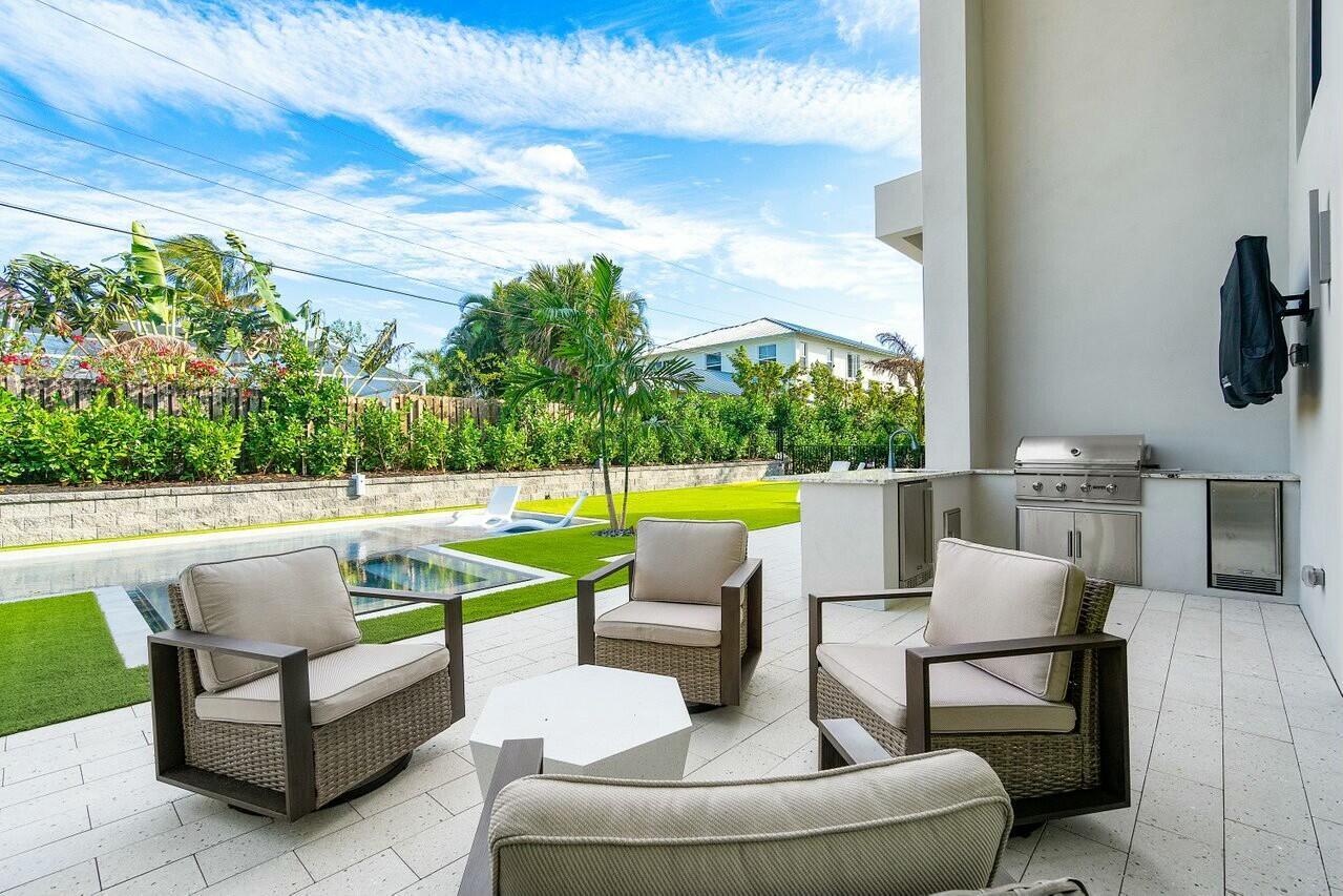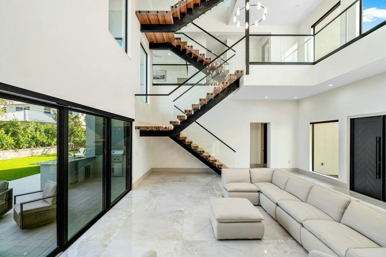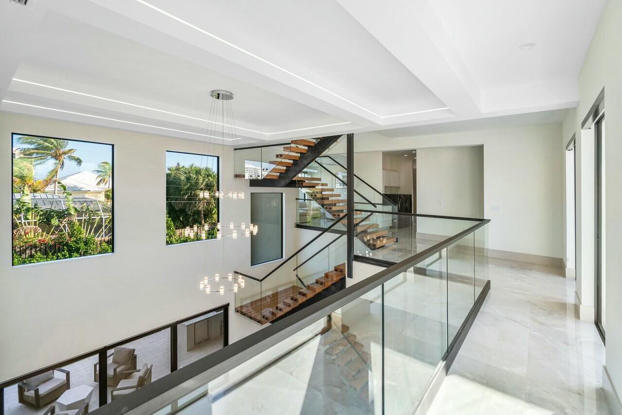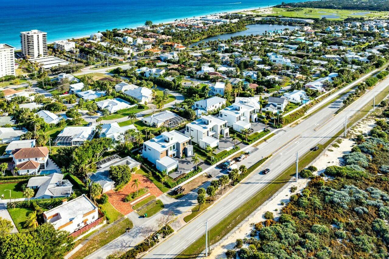 Your new lifestyle will exceed your expectations in this eloquently designed contemporary beach estate. Its offerings include; a grand gated entry with plenty of parking for friends and family, and 3 garage spaces with plenty of height to add lifts for more luxury car space. Upon entry of the oversized double custom doors you will be greeted with 25 foot ceilings boasting ample natural light, and highlighted by custom floating staircase and modern yet elegant fixtures. The north side of the estate features a meticulously designed custom kitchen with 12 foot ceilings, highest quality appliances and fixtures, thoughtfully designed to provide you with ease for entertainment and indoor outdoor Florida living. The south end of the main level includes an inviting in-law suite withoversized ensuite and walk-in closet, an additional bedroom ensuite which could convert easily to an executive office. Prior to arriving at the air conditioned 1 car garage you will see the conveniently located 1st floor laundry facility. As you ascend the floating staircase onto the second level you will be enamored by the 11 foot second floor ceilings and brilliant layout which provides the owner a master wing of their dreams, including a morning kitchen and large terrace along with a well appointed ensuite. Crossing the open walkway to the south end of the second story you will appreciate the natural light once again! The open loft and wet bar makes for a perfect game room or home office. There are 3 additional bedrooms, 2 bathrooms and a second laundry room to enhance your luxury living experience. Returning to the custom staircase to access your roof top terrace will undoubtably be a staple in your daily routine. The Terrace sits more than 50 feet above sea level and offers amazing sunrise views over the ocean as well as gorgeous sunsets framing the preserve. Additional outdoor amenities to fulfill your lavish lifestyle include a custom pool and spa, putting green, outdoor kitchen, and cabana bath. Although you may not want to leave, your convenient access to one of the most amazing beaches in the country is less than a 5 minute walk away. Your Juno Beach Estate awaits!