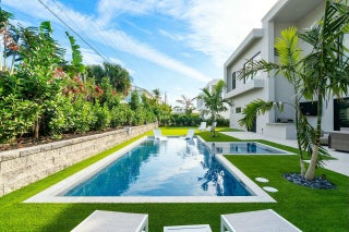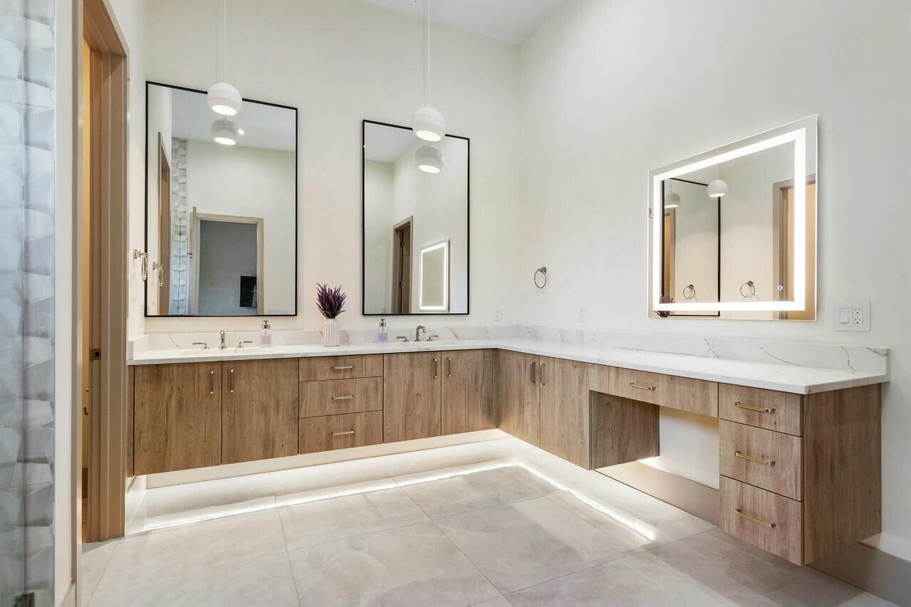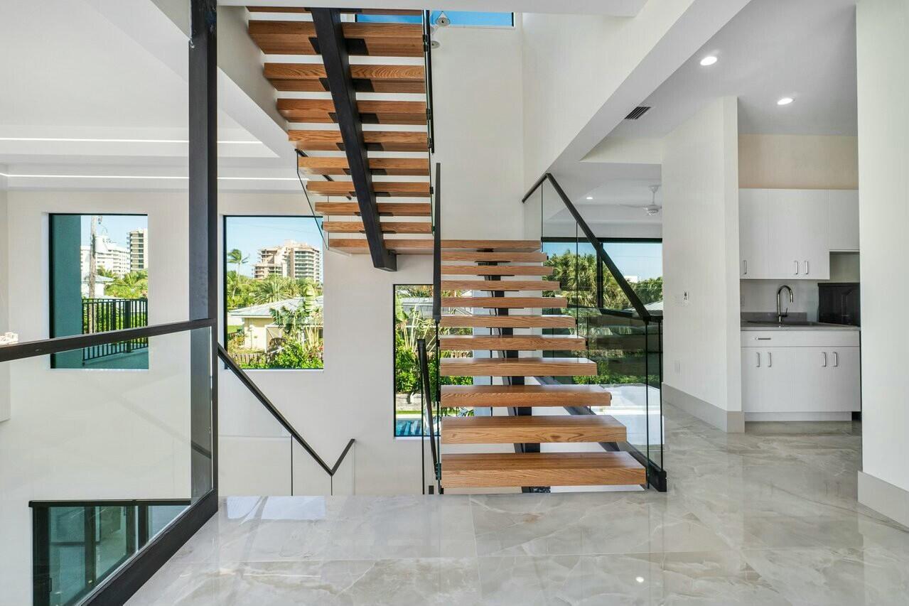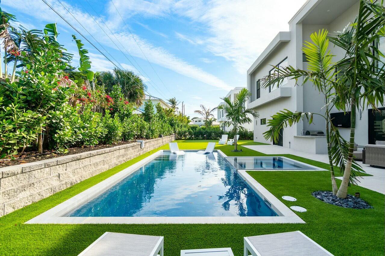 Your new lifestyle will exceed your expectations in this eloquently designed contemporary beach estate. Its offerings include; a grand gated entry with plenty of parking for friends and family, and 3 garage spaces with plenty of height to add lifts for more luxury car space. Upon entry of the oversized double custom doors you will be greeted with 25 foot ceilings boasting ample natural light, and highlighted by custom floating staircase and modern yet elegant fixtures. The north side of the estate features a meticulously designed custom kitchen with 12 foot ceilings, highest quality appliances and fixtures, thoughtfully designed to provide you with ease for entertainment and indoor outdoor Florida living. The south end of the main level includes an inviting in-law suite withoversized ensuite and walk-in closet, an additional bedroom ensuite which could convert easily to an executive office. Prior to arriving at the air conditioned 1 car garage you will see the conveniently located 1st floor laundry facility. As you ascend the floating staircase onto the second level you will be enamored by the 11 foot second floor ceilings and brilliant layout which provides the owner a master wing of their dreams, including a morning kitchen and large terrace along with a well appointed ensuite. Crossing the open walkway to the south end of the second story you will appreciate the natural light once again! The open loft and wet bar makes for a perfect game room or home office. There are 3 additional bedrooms, 2 bathrooms and a second laundry room to enhance your luxury living experience. Returning to the custom staircase to access your roof top terrace will undoubtably be a staple in your daily routine. The Terrace sits more than 50 feet above sea level and offers amazing sunrise views over the ocean as well as gorgeous sunsets framing the preserve. Additional outdoor amenities to fulfill your lavish lifestyle include a custom pool and spa, putting green, outdoor kitchen, and cabana bath. Although you may not want to leave, your convenient access to one of the most amazing beaches in the country is less than a 5 minute walk away. Your Juno Beach Estate awaits!