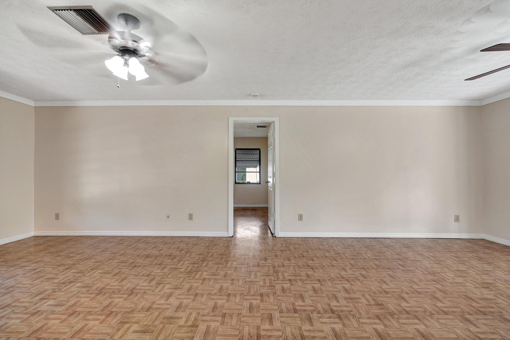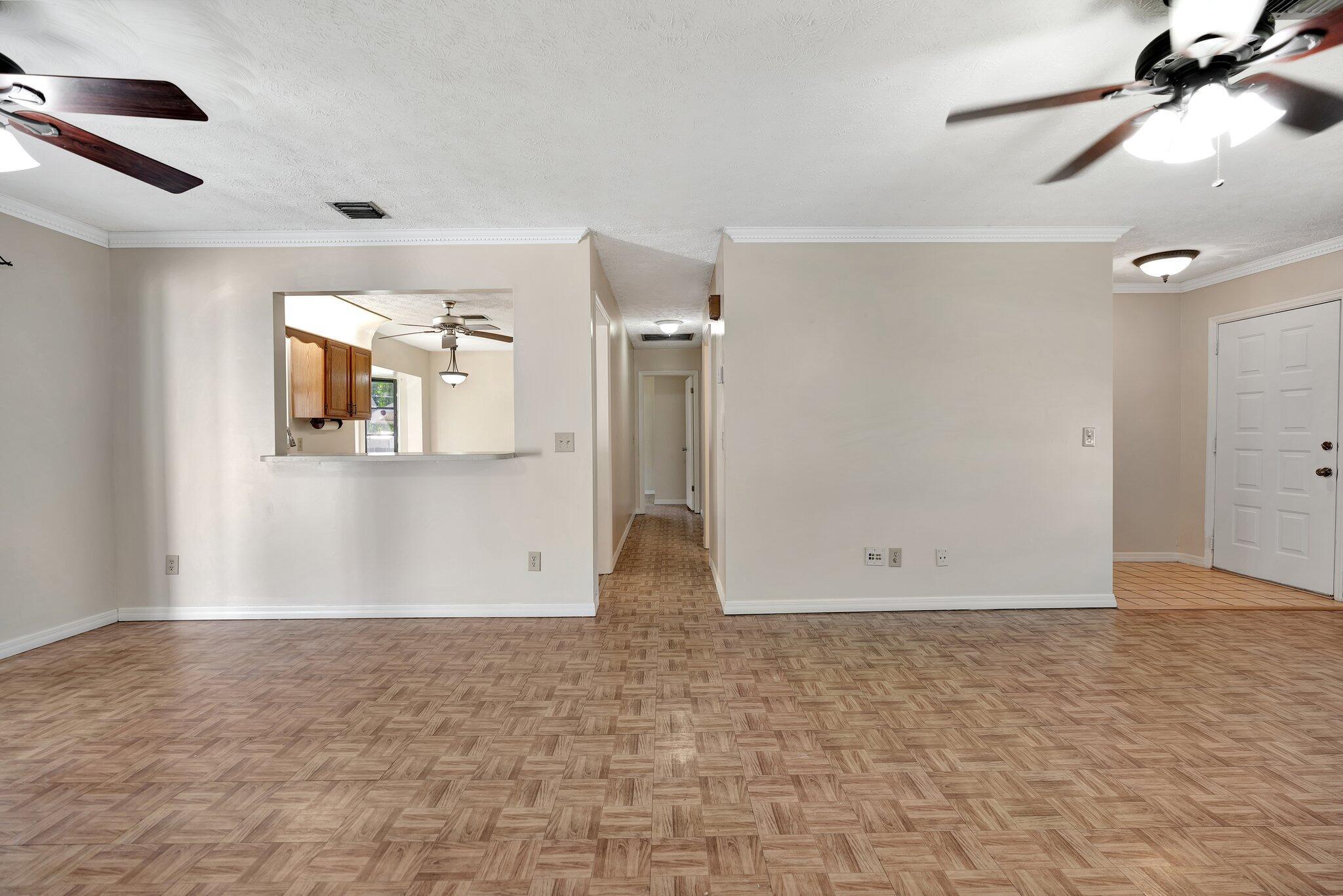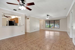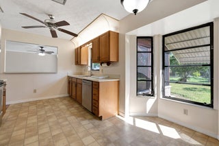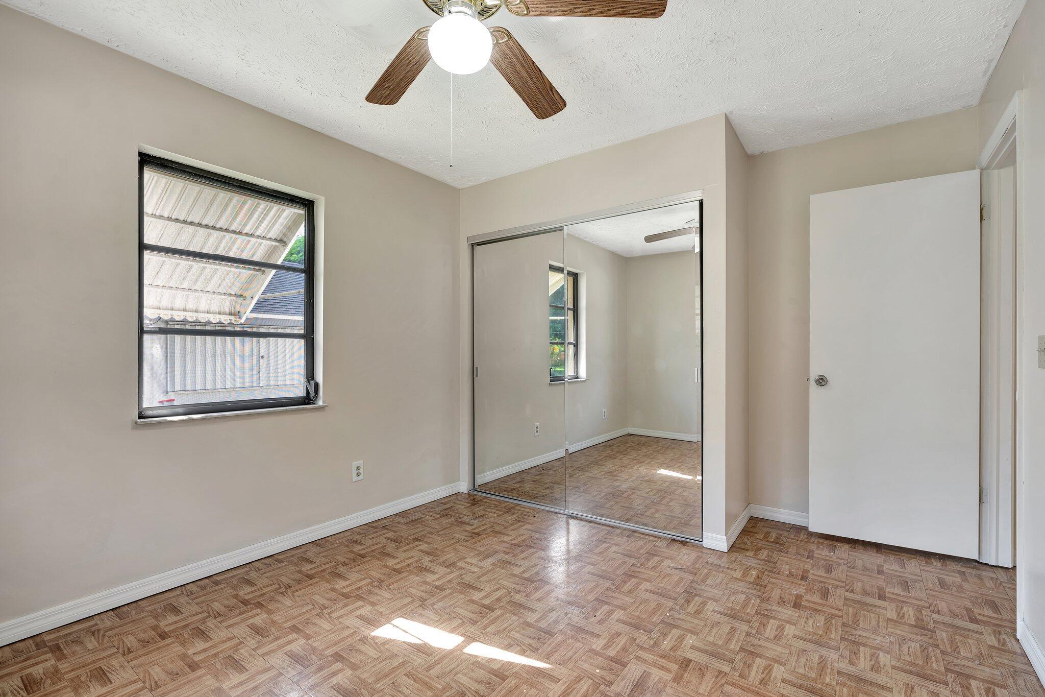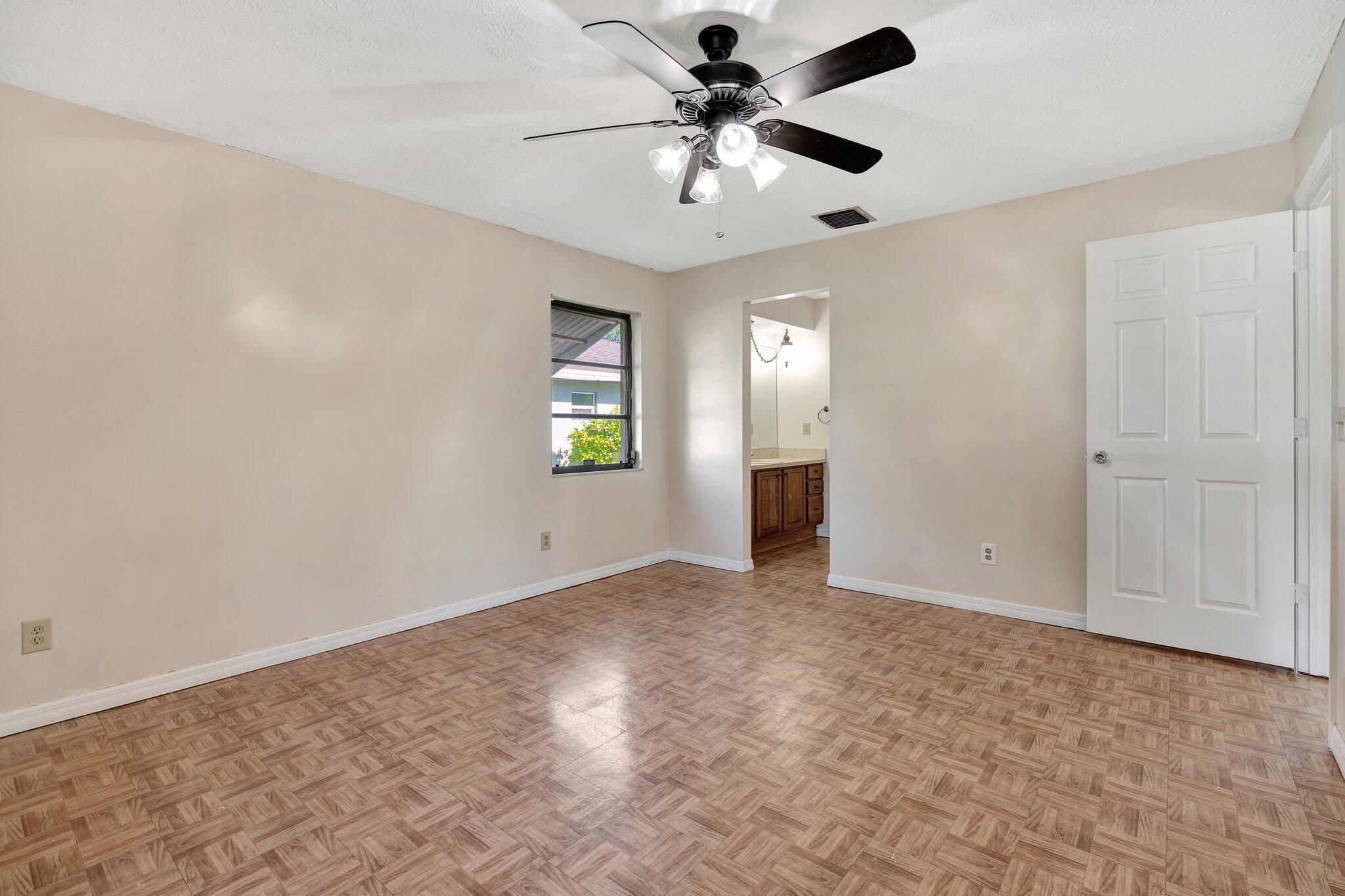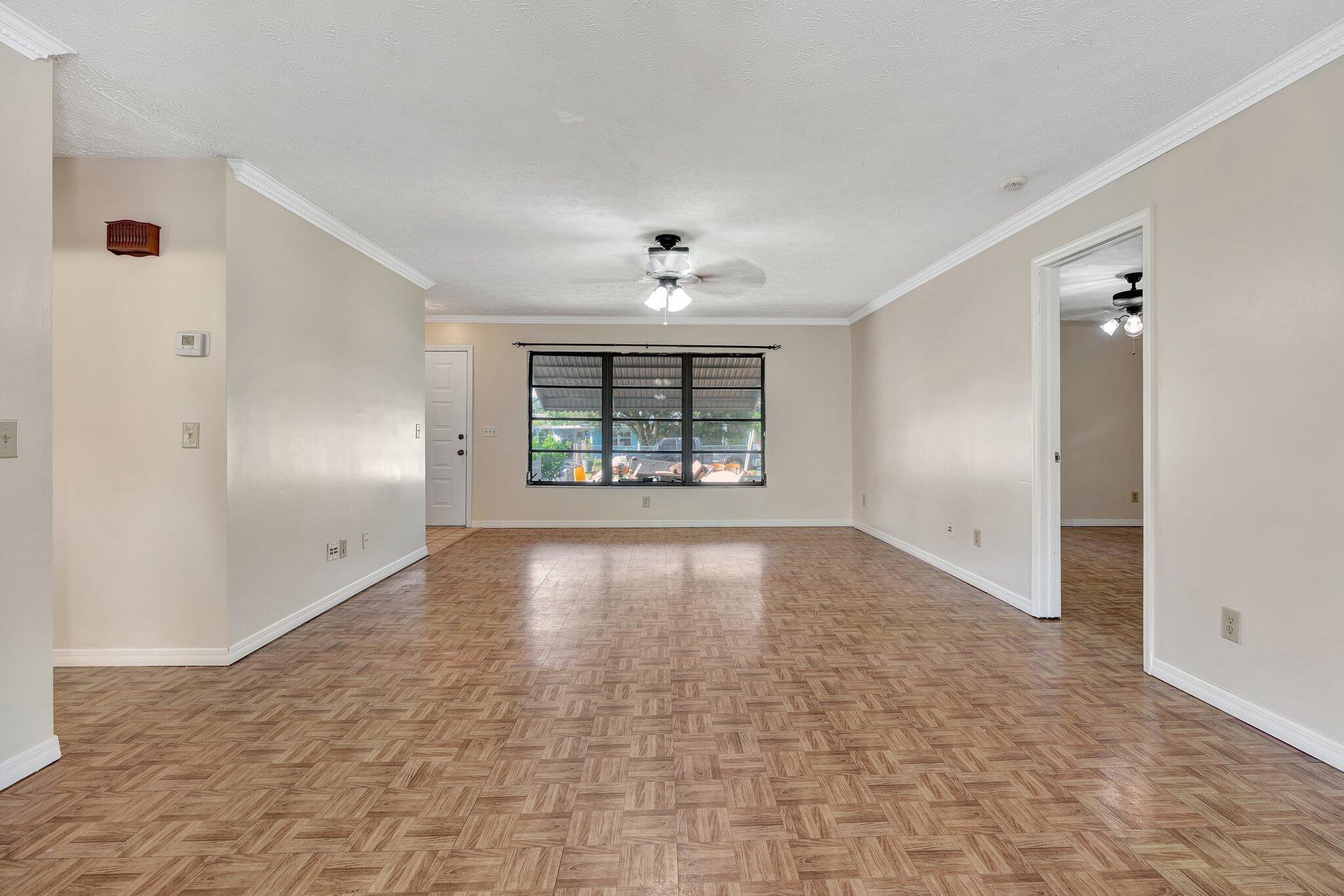 Sought after Poinciana Gardens! A two bedroom two bath split with 1,220sq ft of living space! This home is a wonderful family home with an eat in kitchen, stainless appliances, great room entrance opening up onto a newly screened in porch. The over sized primary bedroom has a huge walk in closet. A fresh coat of paint throughout the home, water softner system, and ceiling fans throughout, new garage door opener. Poinciana Gardens is a NO HOA community. Located close to all, shops, restaurants,Stuart, Jupiter, and I-95.