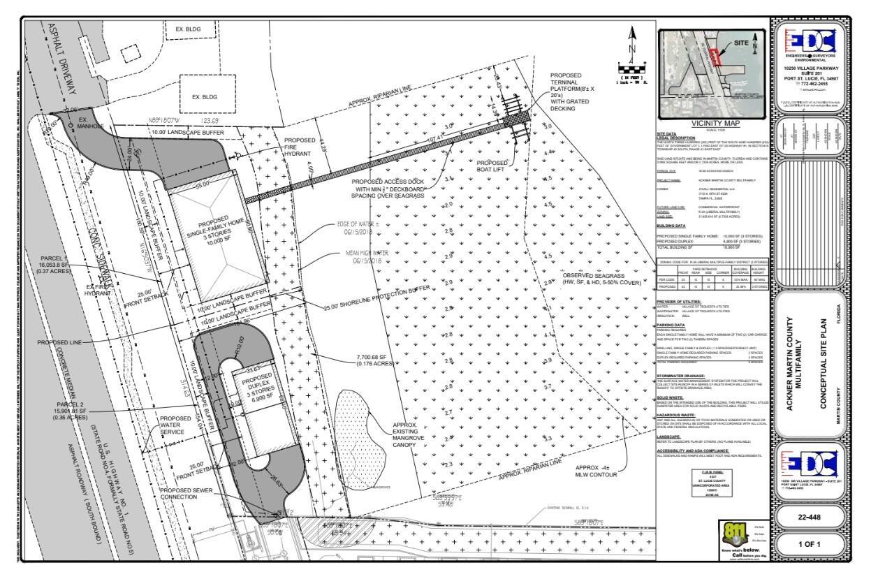Enjoy the shimmering turquoise waters as your backdrop. SITE PLAN APPROVAL NOT REQUIRED TO BUILD YOUR DREAM HOME OR 2 DUPLEXES on this beautiful waterfront property in Jupiter Florida. DOCK HAS GONE THROUGH PERMITTING PROCESS AND WAS PREVIOUSLY APPROVED. Build your expansive dream home and/or investment property. INCREDIBLE LOCATION- Approx. 30 minutes from PBI airport and West Palm Beach, just across from Jupiter Hills Golf Club and close to sandy beaches, the Jupiter Inlet, waterfront dining, boutiques, and natural splendor. RARE OPPORTUNITY! All information provided is deemed reliable but not guaranteed; Buyer is advised to verify all details independently.