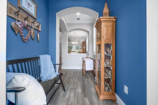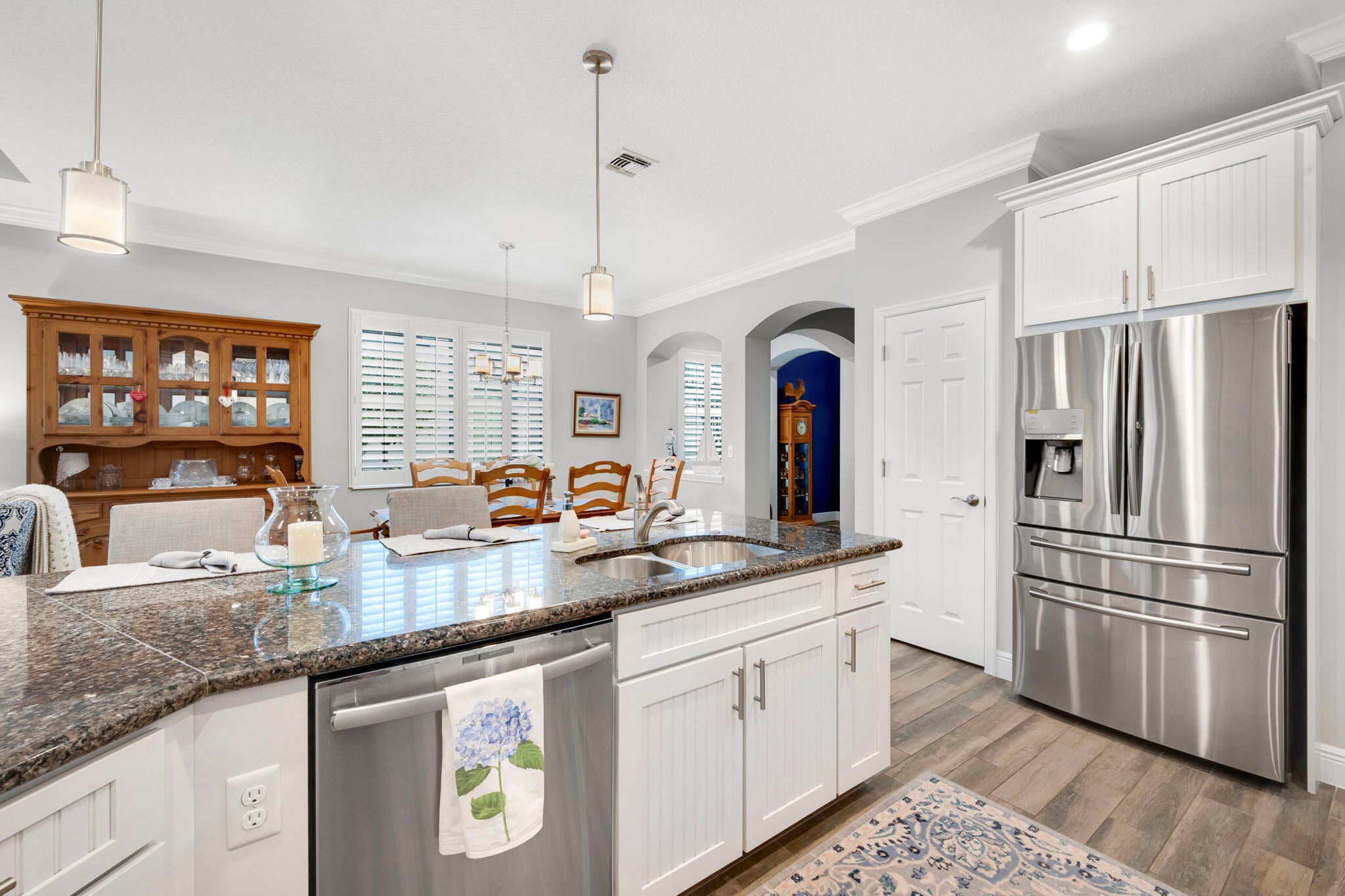 Welcome to this beautifully upgraded villa in a serene and secure 55+ gated community. Designed for comfort and luxury living, this home boasts an array of high-end features and upgrades throughout. Step inside to find elegant tile plank flooring that extends seamlessly throughout the entire home. Impact-resistant windows and doors offer peace of mind. The open-concept living space is enhanced by tray ceilings, crown molding, and plantation shutters, creating a warm, inviting atmosphere. The chef-inspired kitchen is a true highlight, featuring upgraded cabinetry with convenient pull-outs, sleek granite countertops & backsplash, and premium stainless steel appliances. Pendant lighting above the expansive counter adds a touch of sophistication, perfect for both cooking and entertaining. ThThe spacious master suite is a private retreat, with a tray ceiling that adds to its grandeur. The en-suite bathroom offers a spa-like experience, and the second bedroom and bath provides ample space for guests. Work or create in your conveniently located den / office space. Enjoy the outdoors from the extended paver patio and screened lanai, where you can unwind while taking in the peaceful preserve view! Whether hosting a BBQ or enjoying morning coffee, this outdoor space offers tranquility and privacy. As a resident of this community, you'll have access to fantastic amenities, including a sparkling pool and clubhouse with a variety of social activities designed for a vibrant and active lifestyle. This villa combines style, functionality, and peace of mind in a location designed for those who appreciate the finer things in life. Don't miss the opportunity to call this gem your new home!