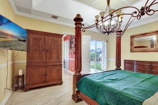 This spacious 5-bed, 3-bath home offers an inviting open concept living area, perfect for entertaining and family gatherings. The modern kitchen features 42-inch maple cabinets, granite countertops, and stainless steel appliances. The main floor boasts a luxurious primary suite, complete with a serene spa bath that includes a soaking tub and an open walk-in shower. All 3 bathrooms have been fully updated. Tray ceilings grace both the first and second floors, with wood floors on the second floor. Enjoy crown molding throughout, a built-in home entertainment center, a walk-out balcony, and 2 A/C units to keep the home cool. Outside, an epic tiki bar awaits. Conveniently located near shopping, dining, and schools. Schedule your private tour today!