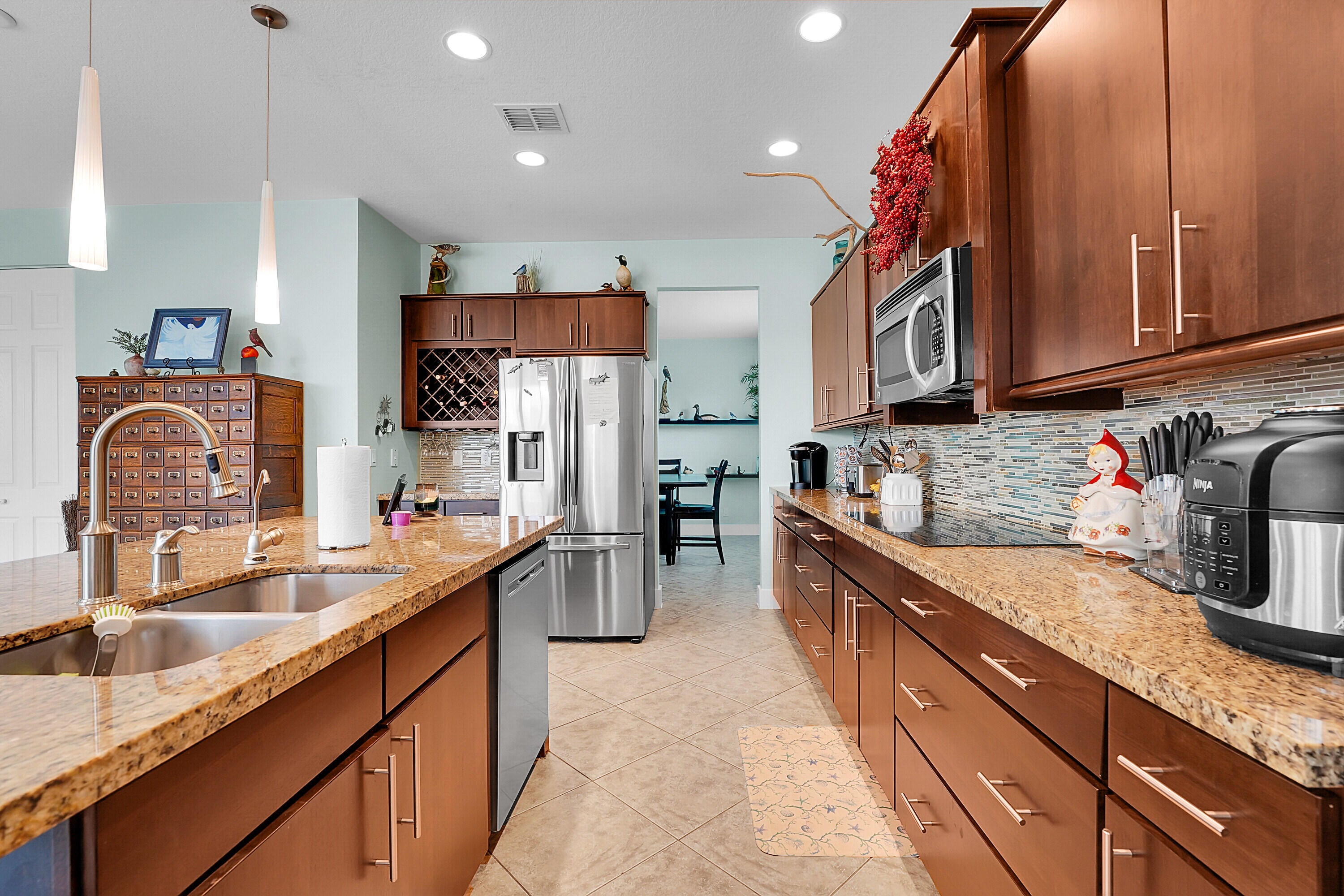 Discover spacious living in this 3-bedroom + den, 2.5-bathroom lakefront pool home in TownPark at Tradition, home sits on a 1/3 acre lakefront corner lot! Perfect for entertaining, the open floor plan includes upgrades like impact windows, a gourmet kitchen with 42'' cabinets, a custom backsplash, stainless steel appliances, and a stone accent wall. Ceramic tile is on a diagonal pattern , private pool with lake views add elegance and charm. The master suite provides a peaceful retreat with serene lake views. Recent updates include a NEW water heater, refrigerator, and washer/dryer. HOA fees cover cable, high-speed internet, irrigation, a manned gate, and a beautiful clubhouse. Tradition offers parks, dining, shopping, and proximity to the Cleveland Clinic and I-95. Call today for a tour!!
