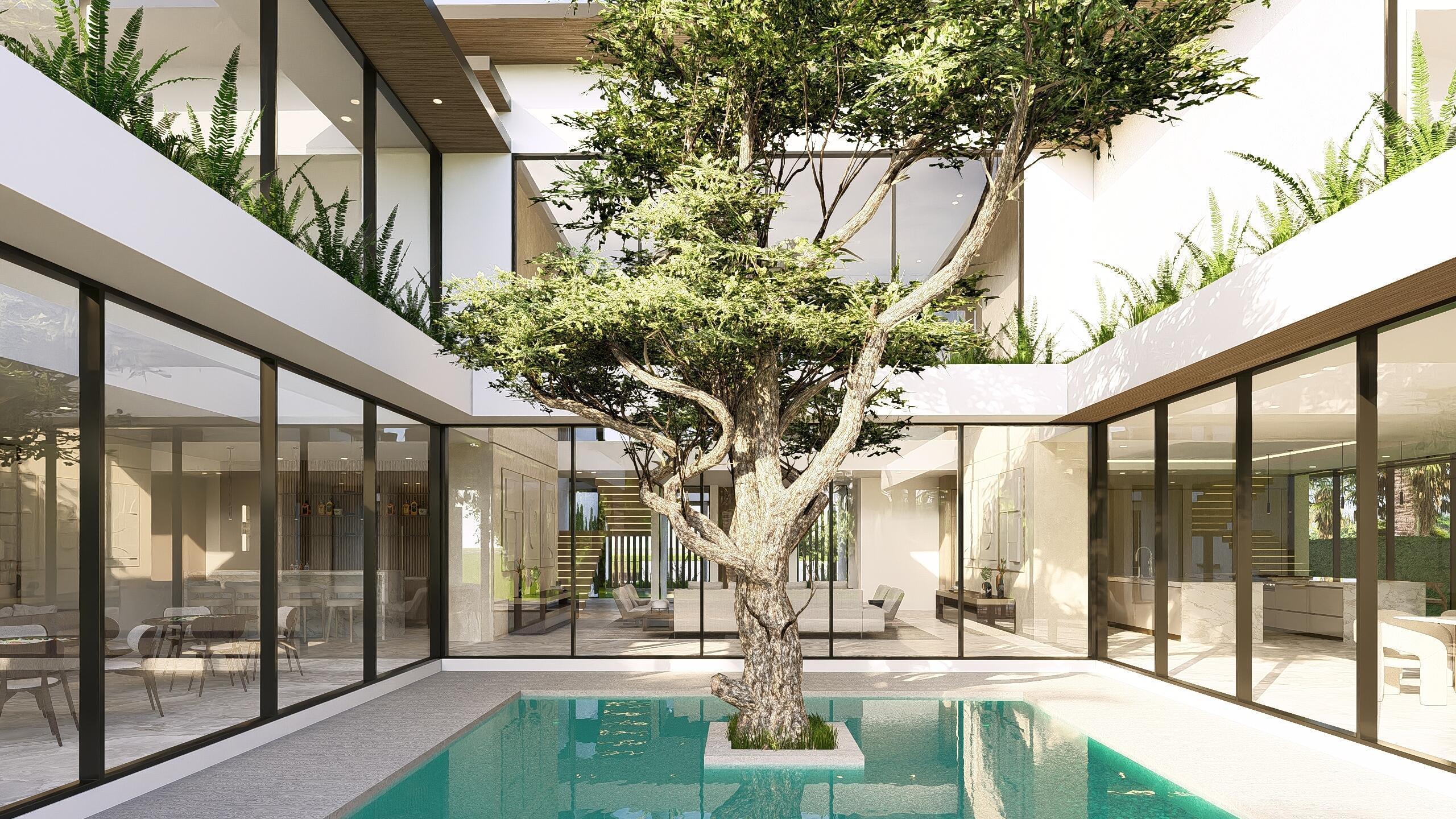 Located in the exclusive Spanish River Land community of East Boca Raton, 1148 Cocoanut Road redefines luxury living with a blend of architectural brilliance, modern sophistication, and seamless indoor-outdoor harmony. Perfectly situated between the Intracoastal Waterway and just two blocks from the Atlantic Ocean, this estate offers unparalleled privacy, tranquility, and access to Boca Raton's premier coastal lifestyle.Spanning 16,117 square feet of lush grounds and 9,675 square feet of air-conditioned living space, this estate is a modern tropical oasis. A gated privacy wall leads to an impeccably designed entry courtyard, flanked by dual two-car garages and tranquil reflection pools.Dual sheer descent water walls frame the front entrance, setting the stage for the breathtaking design inside. The 23-foot glass walls in the foyer offer a picturesque view of the rear courtyard, anchored by an ancient olive tree. The open-concept design emphasizes effortless flow and a connection with nature. The layout wraps around the central courtyard, flooding the interior with natural light through floor-to-ceiling windows. The formal living room, with soaring ceilings, opens seamlessly to expansive entertaining spaces, including a two-story club room with a bar and wine room. At the heart of the residence is a chef's kitchen, both a showpiece and highly functional. Dual islands, paneled natural gas appliances, and premium brands such as SubZero, Wolf, and Cove are complemented by a separate full prep kitchen with matching appliances, offering convenience for everything from gourmet dinners to kosher meal preparation. Private accommodations include five luxurious bedrooms, each with an en-suite bath, designed for ultimate comfort and privacy. The primary suite is a sanctuary, featuring a formal sitting area, morning bar, and private balcony with serene views. The spa-inspired bath includes double showers, a soaking tub, a steam room, and a sauna, creating a true retreat. Step outside into the meticulously designed backyard oasis, ideal for relaxation and entertainment. A 43-foot pool with an integrated spa, fire pit, outdoor kitchen, and expansive covered living spaces invite you to embrace South Florida's idyllic climate year- round. No detail has been overlooked in the construction and design. From large-format porcelain flooring in common areas to white oak hardwood upstairs and in private suites, every finish exudes sophistication. State-of-the-art climate control, custom cabinetry, and designer lighting elevate the living experience. Set for completion in Summer 2026, this exceptional property exemplifies Empire Development's commitment to craftsmanship, innovation, and timeless elegance. A rare opportunity to own a legacy residence in Spanish River Land, 1148 Cocoanut Road is not just a homeit is a masterpiece that harmonizes modern luxury with tropical serenity. DISCLAIMER: Builder and/or Seller reserve the right to make changes and/or modifications to plans, specifications, features, colors and prices. All plans, renderings, and videos shown are artists' conceptions. The information herein is believed to accurate but not guaranteed and may be subject to errors, omissions and changes without notice. All measurements, dimensions, room sizes and lot sizes are approximate. All such information should be independently verified by any prospective purchaser or seller. Parties should perform their own due diligence to verify such information prior to a sale or listing. Listing company expressly disclaims any warranty or representation regarding such information. **This property is currently under contract and is scheduled to be in the full possession of the Developer of this project (Empire Development) by March 15, 2025. Any inquiries regarding the status of the current contract should be directed to the listing agent.