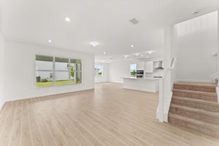 One of the most unique and best selling floorplans in the Halo Collection at Kenley is the Rowan. This larger than life, 3,272 sq. ft. plan features a first floor owners suite, four bedrooms and 2.5 baths in addition to an unbelievable amount of living space. For families seeking extra bedrooms, the Rowan has the ability to be upgraded to up to a six bedroom, four bedroom home. Step through the front doors of this beautiful house and you are met by a flex space perfect for an office, colossal laundry room, gathering room, kitchen, and dining room. Up the stairs find a convenient and spacious loft perfect for a secondary lounge surrounded by three considerably sized bedrooms. Out back on the covered lanai, kick back and relax knowing that you have found the perfect home for you.