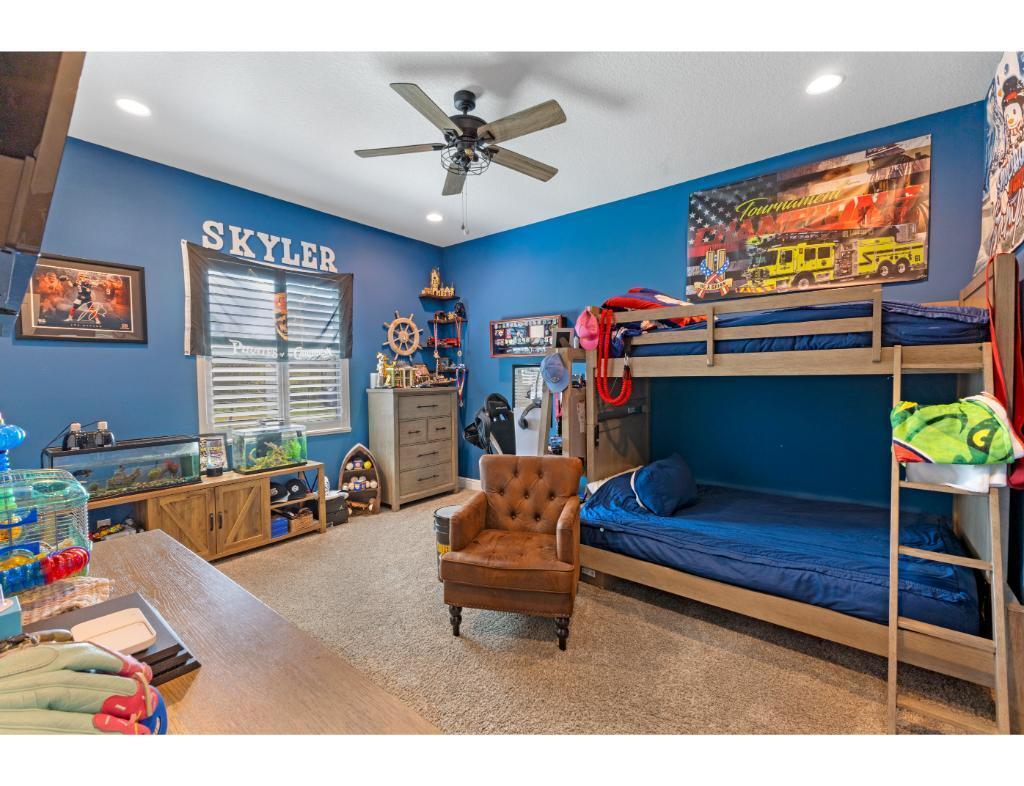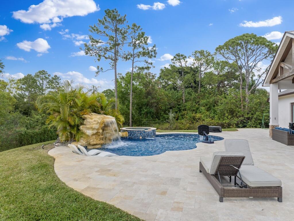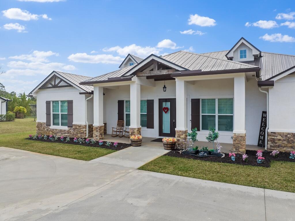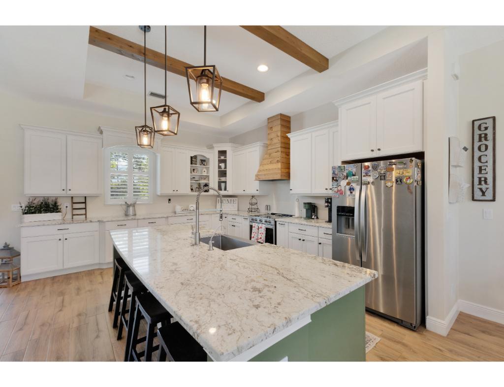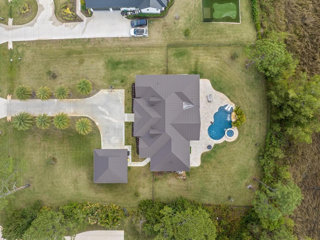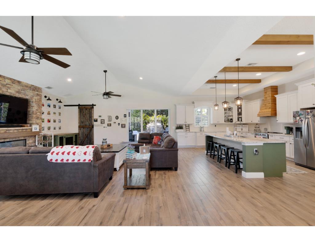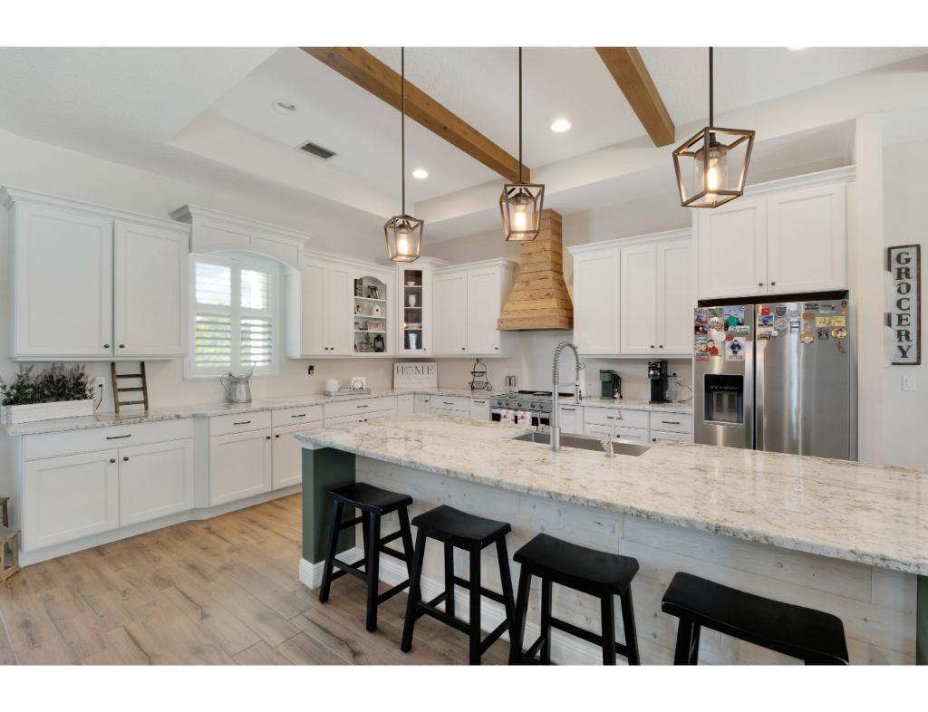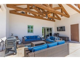 Welcome home! Discover this exceptional CBS residence in the highly sought-after Evergreen/Crane Watch neighborhood. This meticulously maintained property is situated on a 1-acre lot and was constructed in 2020. The home features 3 bedrooms, 2 1/2 bathrooms, an oversized detached 2-car garage, and a spacious flex room (19' x 10') suitable as a game room or 4th bedroom. Highlights include a metal roof, hurricane impact windows and doors, over 3,000 square feet of living space, and a custom pool with a built-in jacuzzi and rock waterfall. Additional amenities comprise a custom-built bar with a Granite Countertop and Plantation Shutters throughout.The versatile layout presents a stunning open great room with a vaulted ceiling and an exquisite island kitchen featuring high-quality custom wood cabinetry, stainless steel appliances, a stainless farmhouse-style sink, elegant wood beams, and a custom range vent hood. Adjacent to the kitchen, you will find a sizable walk-in pantry with solid wood shelving and ample storage. The home also offers a spacious laundry room with additional storage and a utility sink. The generous master bedroom boasts two large walk-in closets and an en-suite bathroom with a dual-sink vanity, a large soaking tub, and a separate shower. Stepping out onto the Travertine pool deck, you will appreciate the private, fully fenced backyard with its remarkable custom pool. This property represents a unique opportunity to own a truly distinctive home in a desirable neighborhood. Home next door, located at 5303 SW Bimini (RX-11058356) is also available-buy both and make a family compound! Room Sizes are approximate and subject to error, buyer to verify. Municipal County Water is coming to Evergreen and is currently being installed with an estimated completion time frame of 270 days!