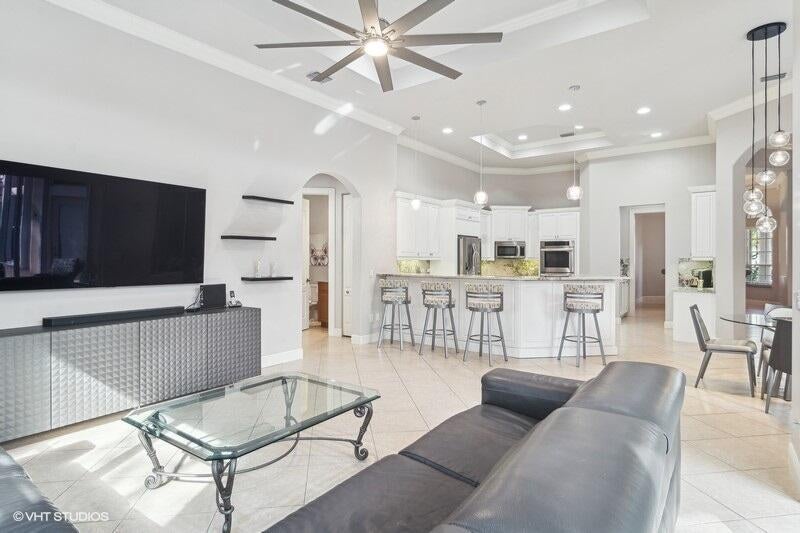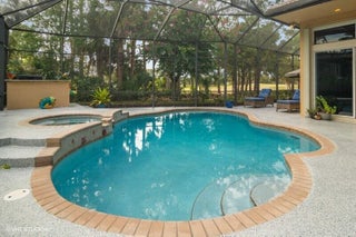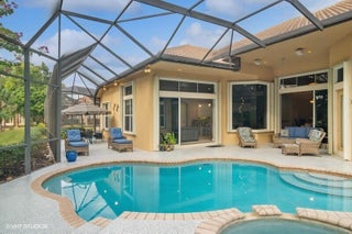 Welcome to your dream home in the exclusive PGA Village! This immaculate 4-bedroom, 4-bathroom home is designed for both comfort and style, featuring a built-in refreshing pool and spa overlooking the lush 7th hole of the PGA Wannamaker Golf Course. In addition to the 4 bedrooms, you have a den/office and a flex room. Formal living room and dining rooms give the extra space needed for entertainment, or for more casual dining you have a breakfast nook and snack bar seating in the open modern kitchen, that over looks a relaxing family room. Don't forget the wet bar for your morning coffee or nightly cocktails. An expansive covered and screened lanai, complete with a built-in BBQ offers the ultimate setting for outdoor dining and relaxation. Other features include a 3-car garage, a 500 gallon propane & a whole house generator for ultimate peace of mind. This home is designed for those who value luxury, comfort, and premier Florida living. Whether you're looking to entertain or simply enjoy peaceful golf course views, this home has it all! A perfect balance of modern amenities and classic elegance.