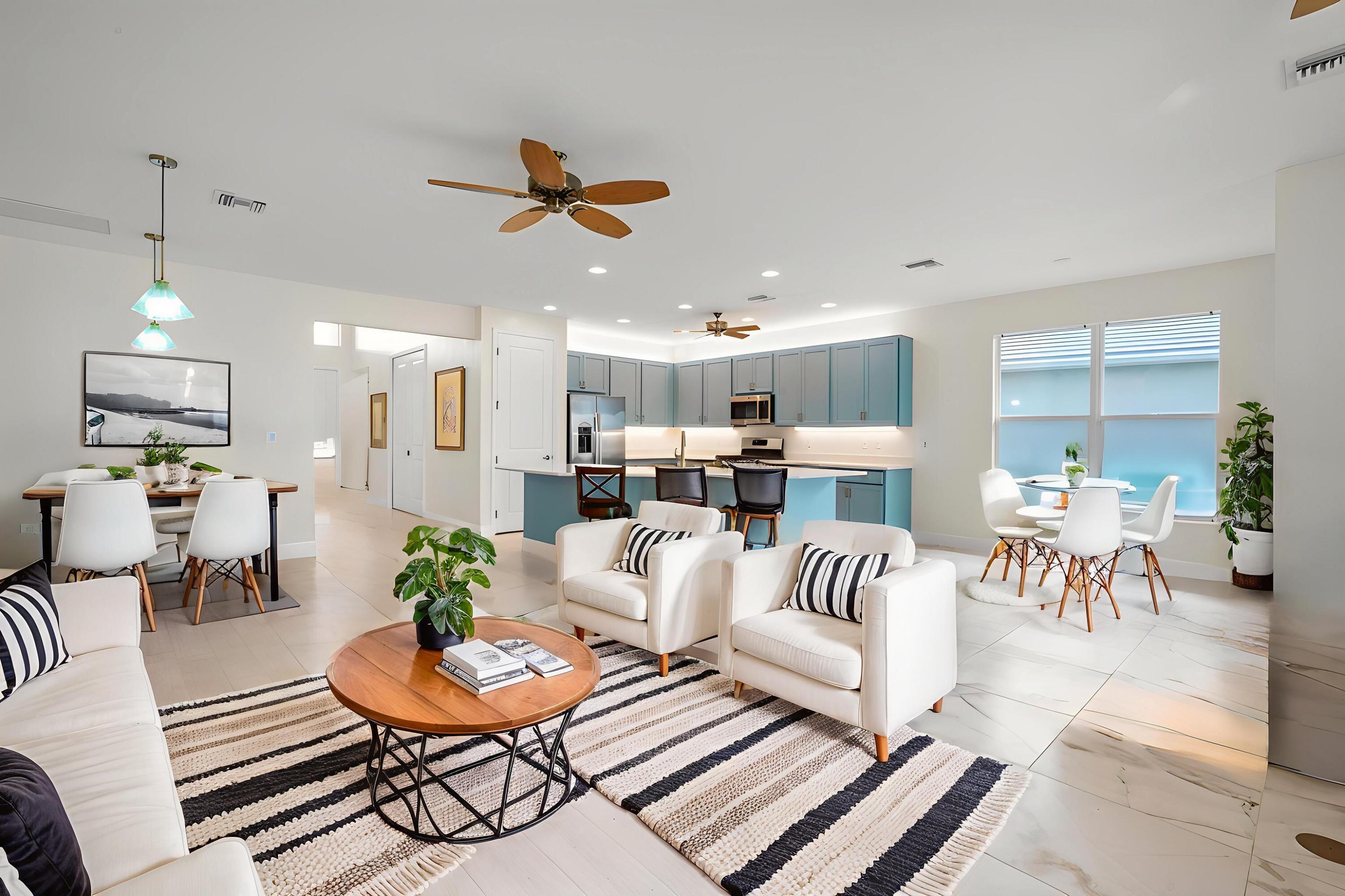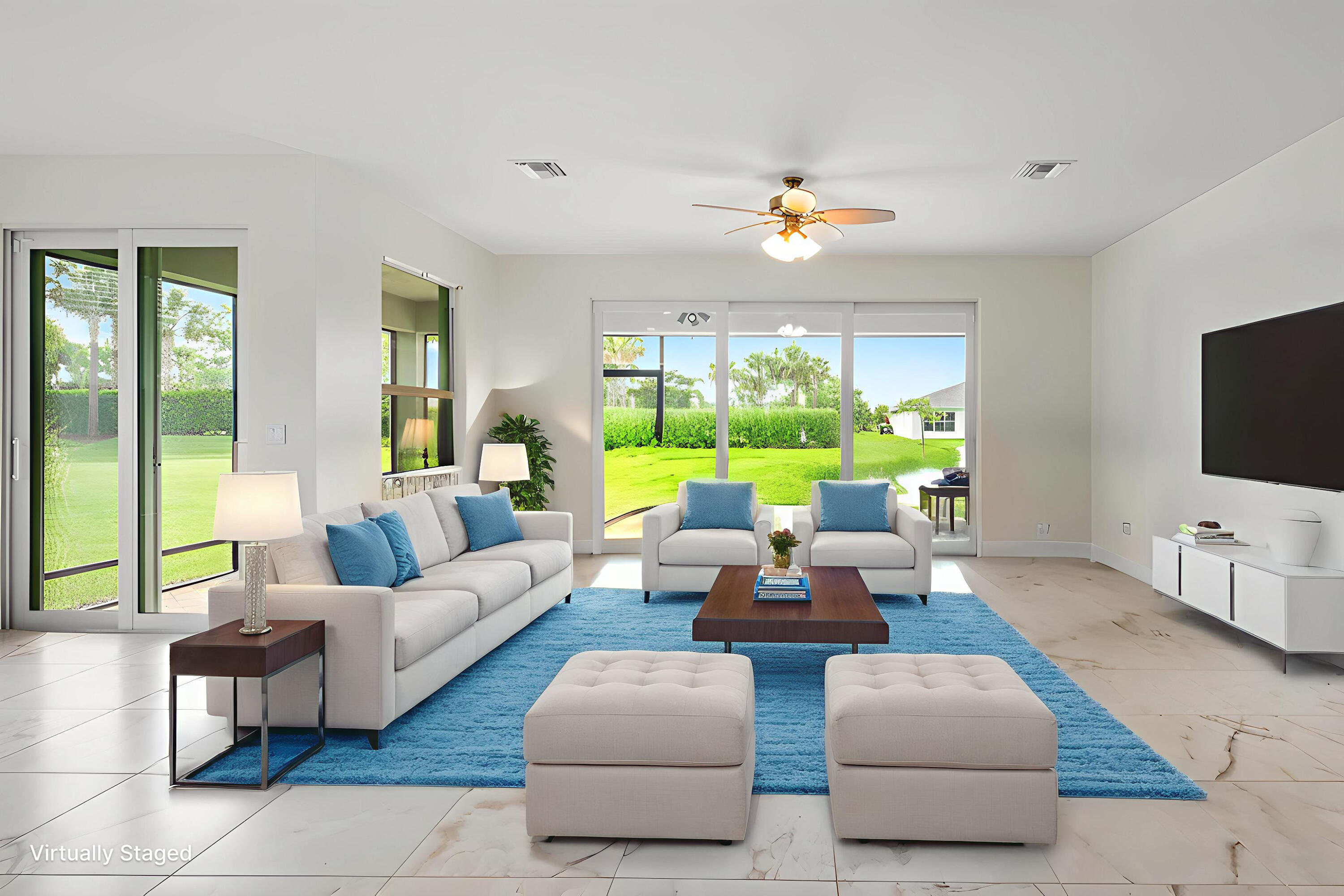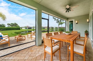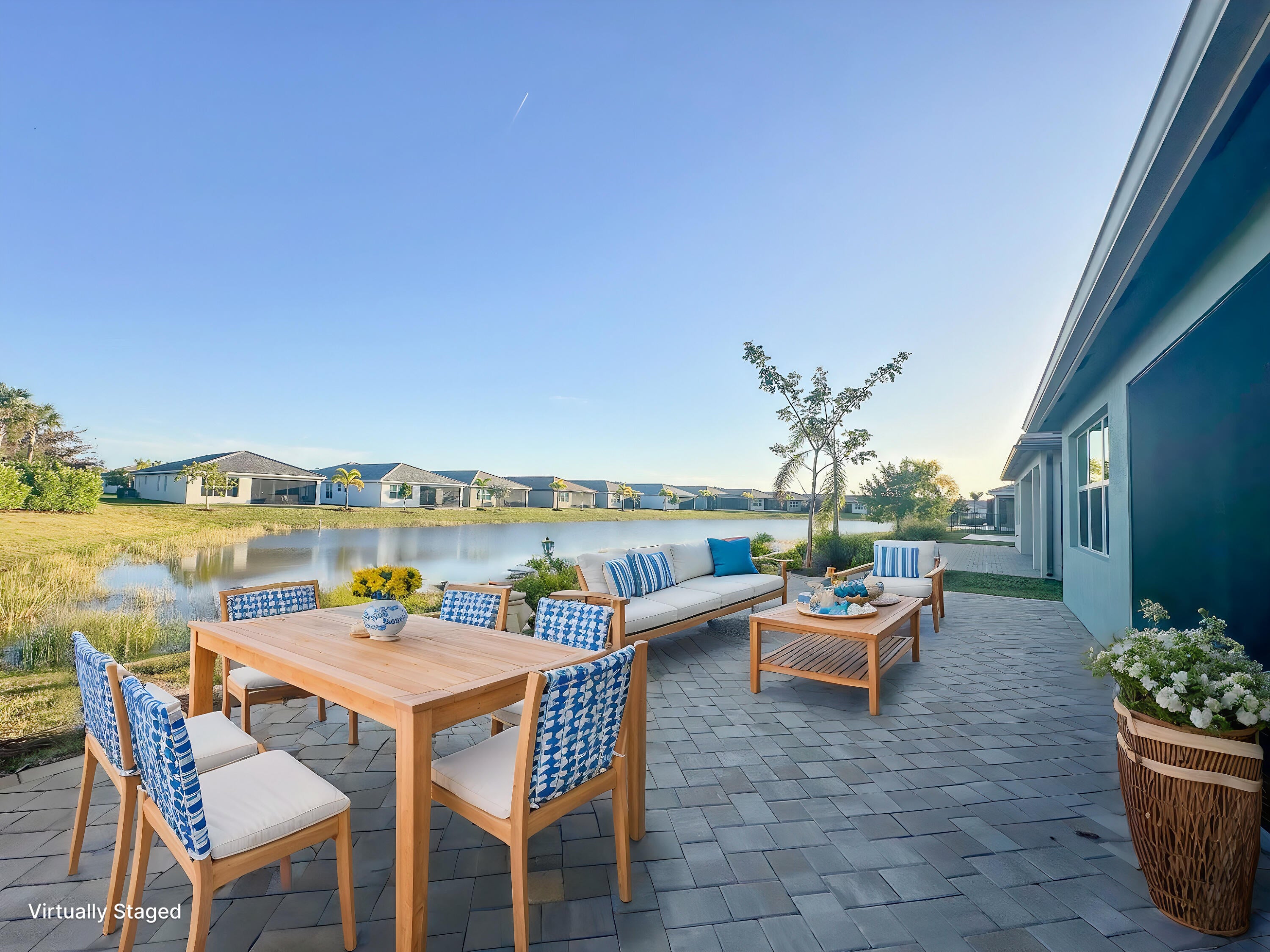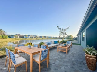 Welcome to your dream home in Valencia Grove Riverland. An exceptional blend of luxury, comfort, and modern living. Just hit the market! This stunning Bimini model offers four spacious bedrooms, three beautifully appointed bathrooms on a premium lake-front lot. Open-concept design creates an inviting atmosphere with abundant natural light. All the benefits of Natural Gas to reduce utility bills, impact rated windows and sliders, energy efficiency, home security. A chef's delight, the kitchen features state-of-the-art appliances, a large island, counter seating, exceptional cabinetry. Designed for Florida living at its finest. Water view, screened lanai, extended patio. Perfect for enjoying a morning coffee or hosting a summer barbecue. Two-car plus golf cart garage.