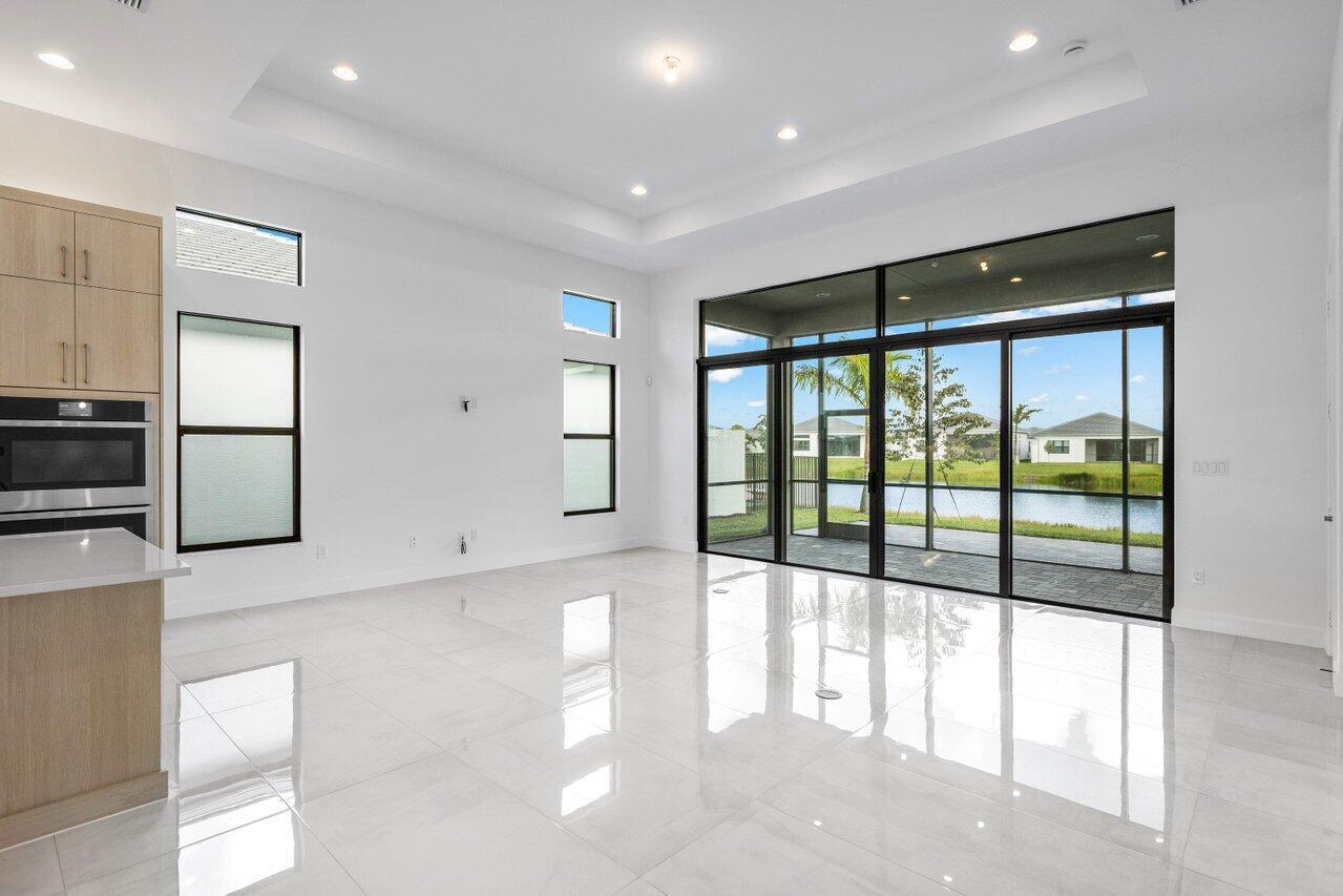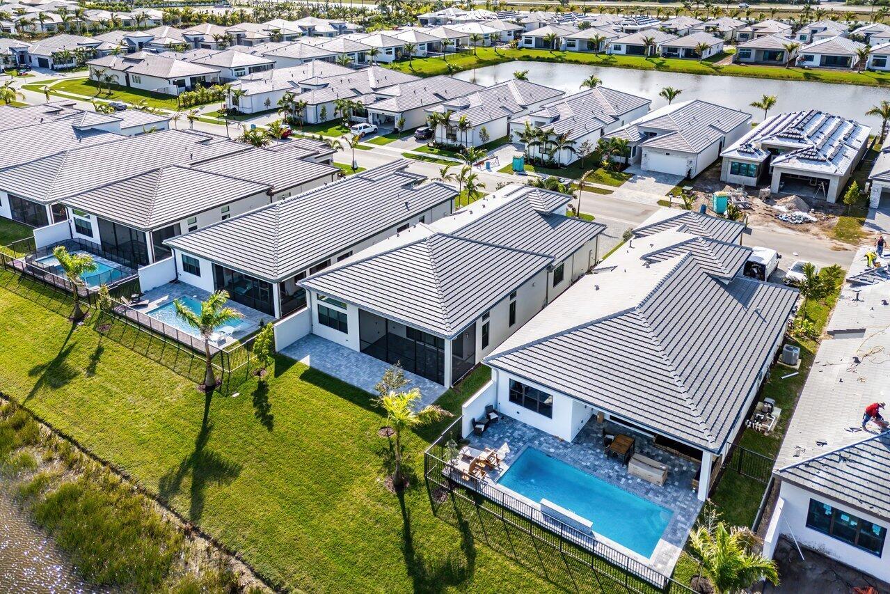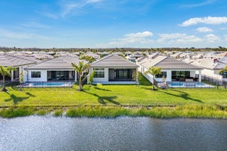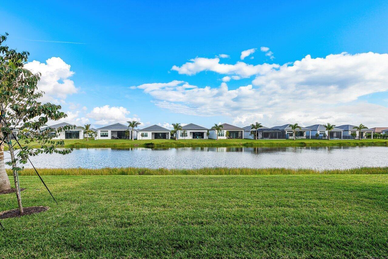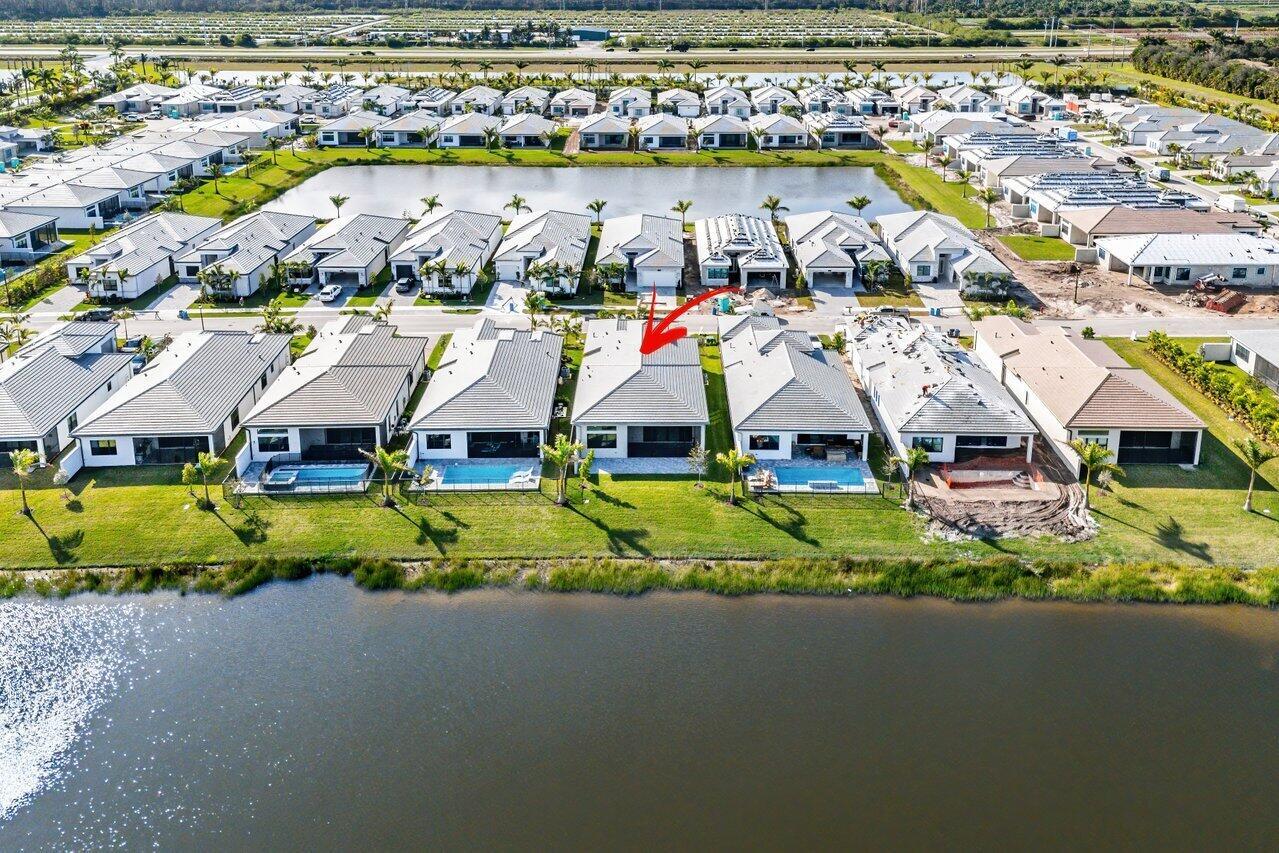 This amazing 3 BR + Den is a single-family home, located In Valencia Grand, a new 55+ community offering a luxurious lifestyle with incredible amenities. This home is newly constructed, never been lived in, located on a mid- lake site, offering many upgrades some of which include contemporary elevation, glass shower enclosure in second bedroom, summer kitchen stub outs, multiple high-hat lighting throughout, wall sconce lighting, Level 5 smooth walls throughout including ceilings and an upgraded kitchen with chimney style vent, stacked cabinets pullouts and convenience package. The master bathroom incorporates upgraded cabinetry. Carpeting in the bedrooms are upgraded. 24 x 48 highgloss ceramic tile throughout the main area and den, The exterior of this house has customized lighting, a screened enclosed porch with extended pavers. The whole house has gutters and a high-level landscape package. The recreational amenities in the community include state of the art equipment in the fitness center designed for personal or group training sessions, indoor pickle ball courts. The magnificent, heated pools are surrounded by landscaping providing privacy. YOU MUST SEE THIS HOME BEFORE YOU PURCHASE!! The community, its location, although private and secluded offers convenience to shopping and restaurants.
