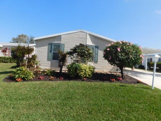HUGE PRICE REDUCTION! Move in ready! Two bedrooms, two bath and a den, Islander model. Home is super clean. Extra-large carport will fit four cars. Beautifull Florida landscaping all around. Island kitchen with appliances only a few of months young. King size master bedroom with French doors. Double vanity ensuite with jetted tub.Queen size guest bedroom with full bath. Large den could be third bedroom or office, also with French doors. HOME IS BEING SOLD FURNISHED. Large double door storage shed. Screened lanai with a lovely view of the backyard and pond. A/C -2023. Roof - 2018. Call for easy showing. land lease property. Being sold AS-IS. Vacant. On Supra.