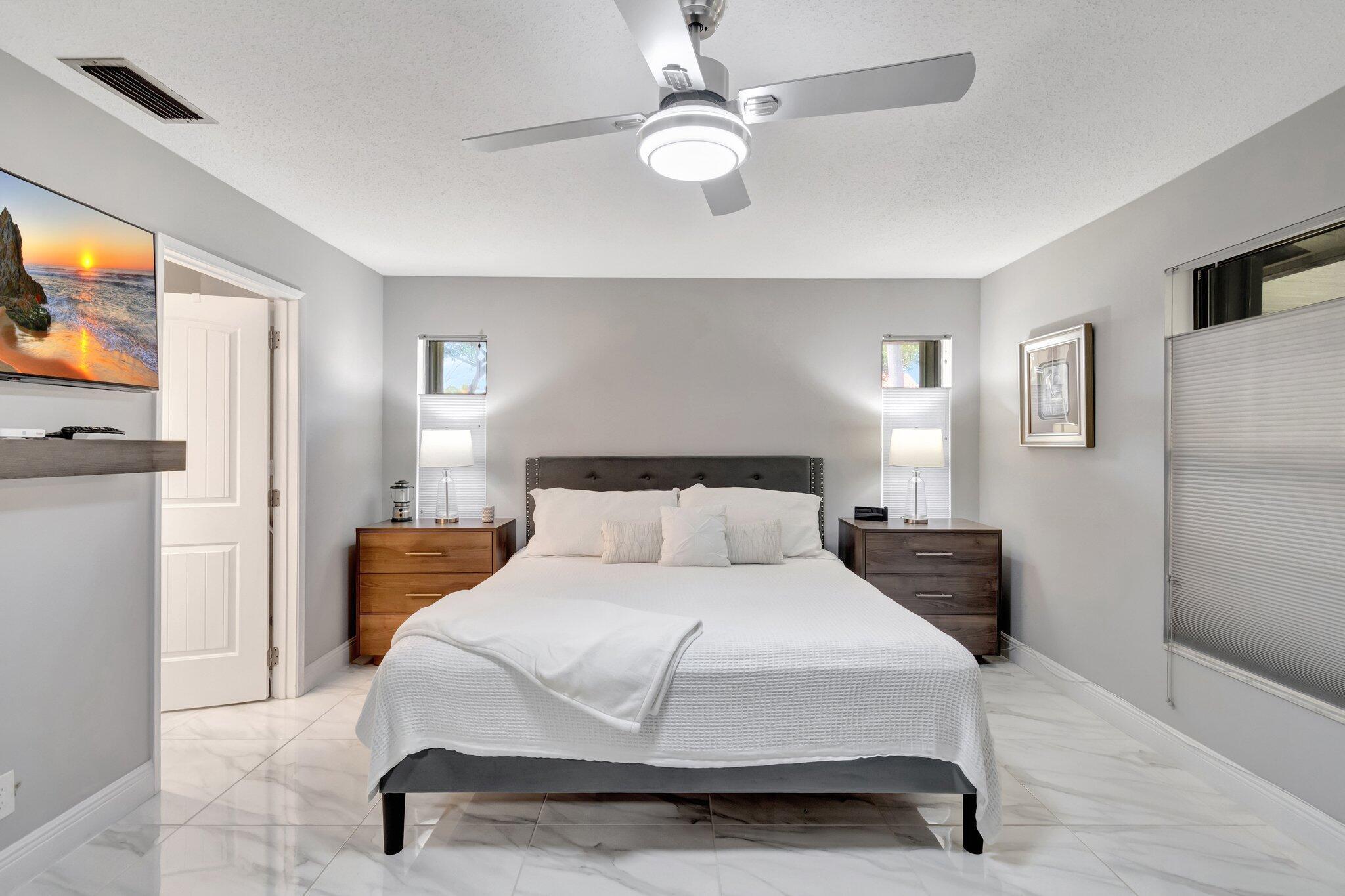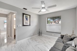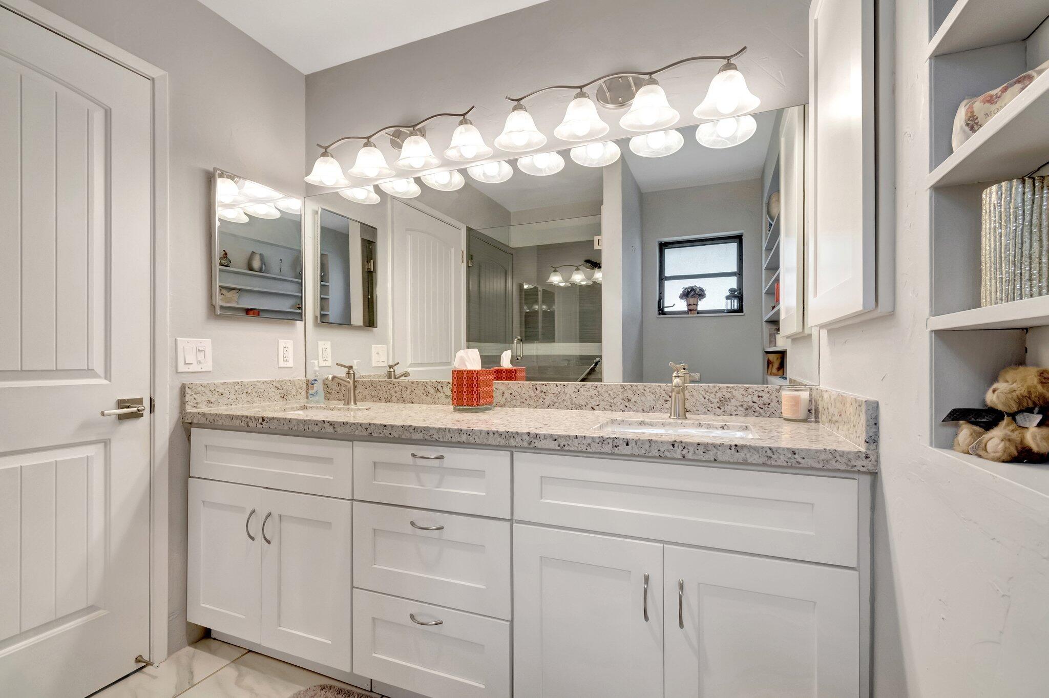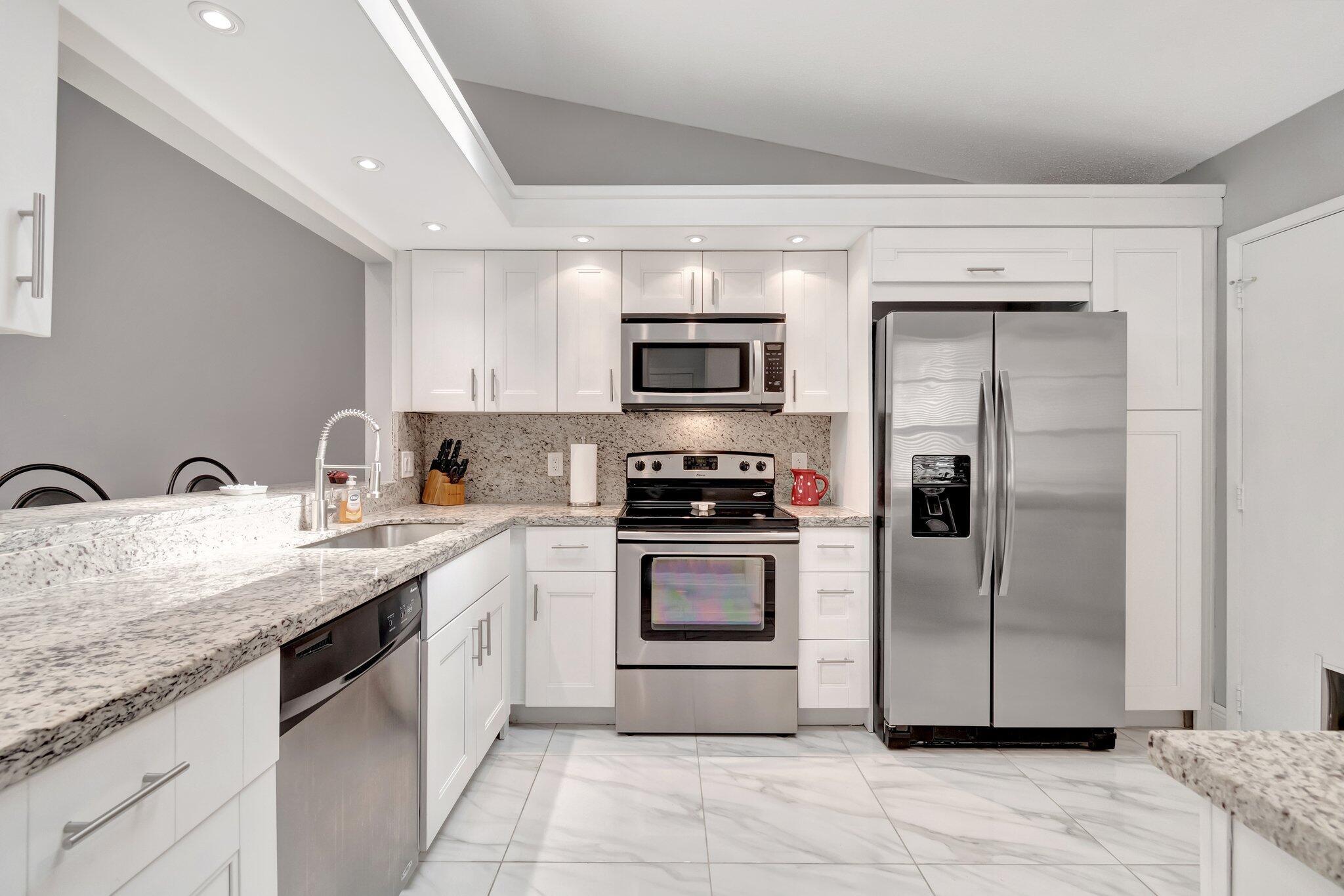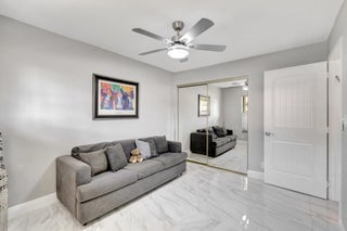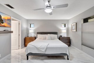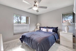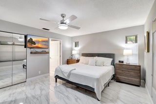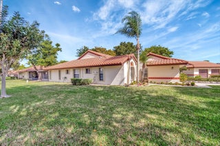 Welcome Home ! Just pack your bags ...This immaculately maintained Villa has it all ! This rarely available ''3'' full bedroom/2 bath villa has been totally updated and remodeled. The home is tiled throughout creating a seamless flow, with large, modern porcelain tile and boast an open floor plan with vaulted ceilings and skylights. The renovated chef's kitchen features stainless appliances, pantry, breakfast bar and desk area. Both baths have been remodeled with high end finishes. The large master bedroom features an outfitted walk in closet and wall to wall built-ins for tons of storage..The 2 guest bedrooms are ample enough in size to fit a king bed. The enclosed lanai is not included in the square footage but provides an additional 300 sq. ft of living and entertaining space overlooking a very private backyard. Palm Chase is a 55+ gated community where there are many amenities including a clubhouse with a fitness room & game room with billiards & more, auditorium, heated pool, hot tub, tennis courts & pickleball court with many clubs, activities & social events! Your HOA includes insurance, building exterior, roof, cable, fiber optic internet, water, sewer, landscaping, pest control & onsite management. The location is very convenient being located close to I-95, the Turnpike, shopping, beaches, airport & more!
