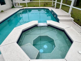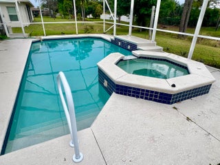 Recent price reduction !!! Motivated Sellers !!! Beautiful four bedroom pool home that is located in a desirable neighborhood and is only minutes from the interstate and yet in a calming and tranquil setting . The pool is heated and boasts a built in spa with water feature . All the windows are impact glass for safety and economy and also the added addition of roof solar panels. The floorplan is very bright and open and the island kitchen makes it great for entertaining . The pool area has been extended for your entertaining pleasure and is fully screened and backs onto a drainage easement for extra privacy.