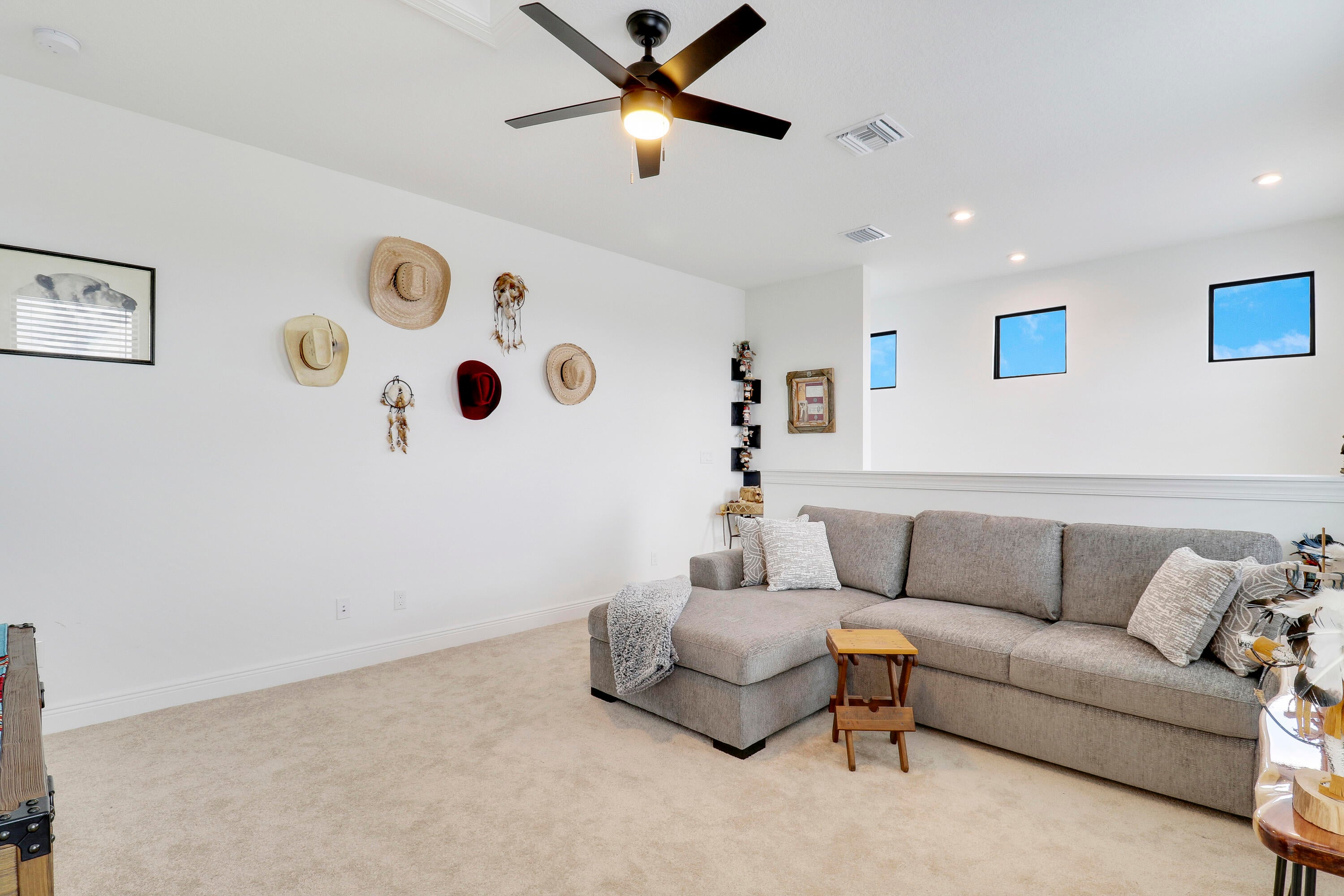 Room for everyone in this 3BR/3BA + bonus room or 4th bedroom home! Meticulously maintained and built in 2023, this home features a large back yard, three bedrooms downstairs (including the main suite) and a bonus room with full bathroom upstairs, the perfect spot for visiting guests, a media room, older kids or a work from home office! The open kitchen has 42'' wood cabinets, granite counters, stainless steel appliances and a large walk-in pantry. Tall windows & doors bring in an abundance of natural light. The great room leads out to the extended screened patio and overlooks the back yard. Spacious main suite with ensuite bathroom. Two additional bedrooms have access to the hall bathroom and the extended laundry room is located on the ground floor.The screened patio is the perfect spot to enjoy Florida's sunny weather! Other special features include IMPACT GLASS windows & doors, tall ceilings, upgraded lighting & fans and tray ceilings. Verano is an amenity rich community with a 27 court pickleball facility, walking paths, indoor and outdoor pools, multiple fitness centers, sauna, dog park, resistance pool, e-gym, tennis courts, social clubhouse and so much more. HOA dues include basic cable, internet, alarm monitoring, lawn care, common area maintenance and access to the gorgeous amenity centers. For avid golfers, there is a cart path leading to the PGA Golf Club (membership is optional and availability varies). This community truly has something for everyone. Call today to view!