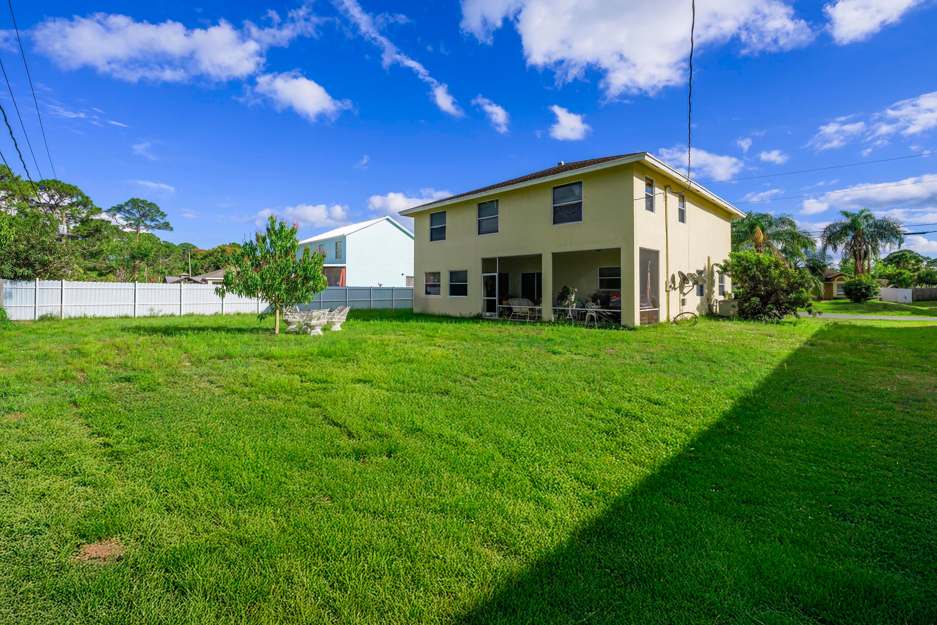 This stunning 5-bedroom, 2.5-bathroom home in Port St. Lucie is a must-see! With a brand-new roof and water heater installed in 2025, this move-in-ready gem offers spacious living, soaring ceilings, and an open-concept design perfect for entertaining. The seamlessly connected living and dining areas create a welcoming flow, while the expansive kitchen boasts ample storage, large drawers, and a generous pantrya"ideal for any chef. The grand master suite makes a statement with double-door entry, leading to a luxurious bath with dual sinks, a walk-in shower, and a soaking tub. Outside, enjoy South Floridaa(tm)s sunshine on a large covered patio with plenty of yard space. Though it needs minor TLC, this home has incredible potential and is conveniently near shopping, dining, entertainment, I-95