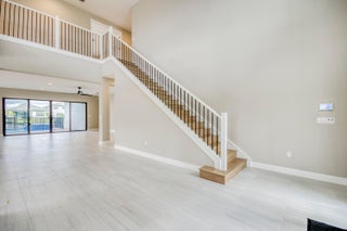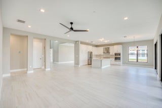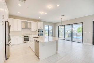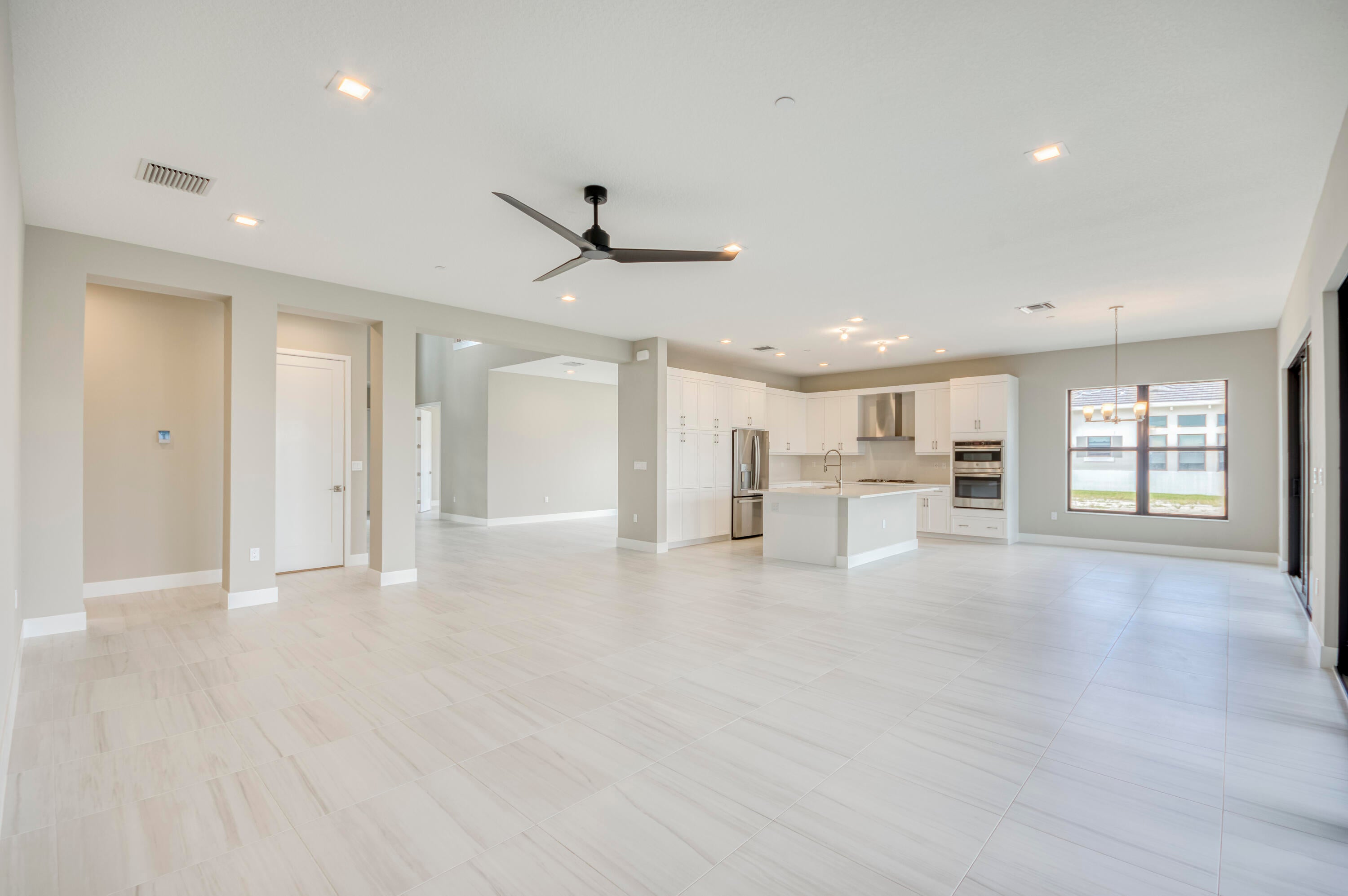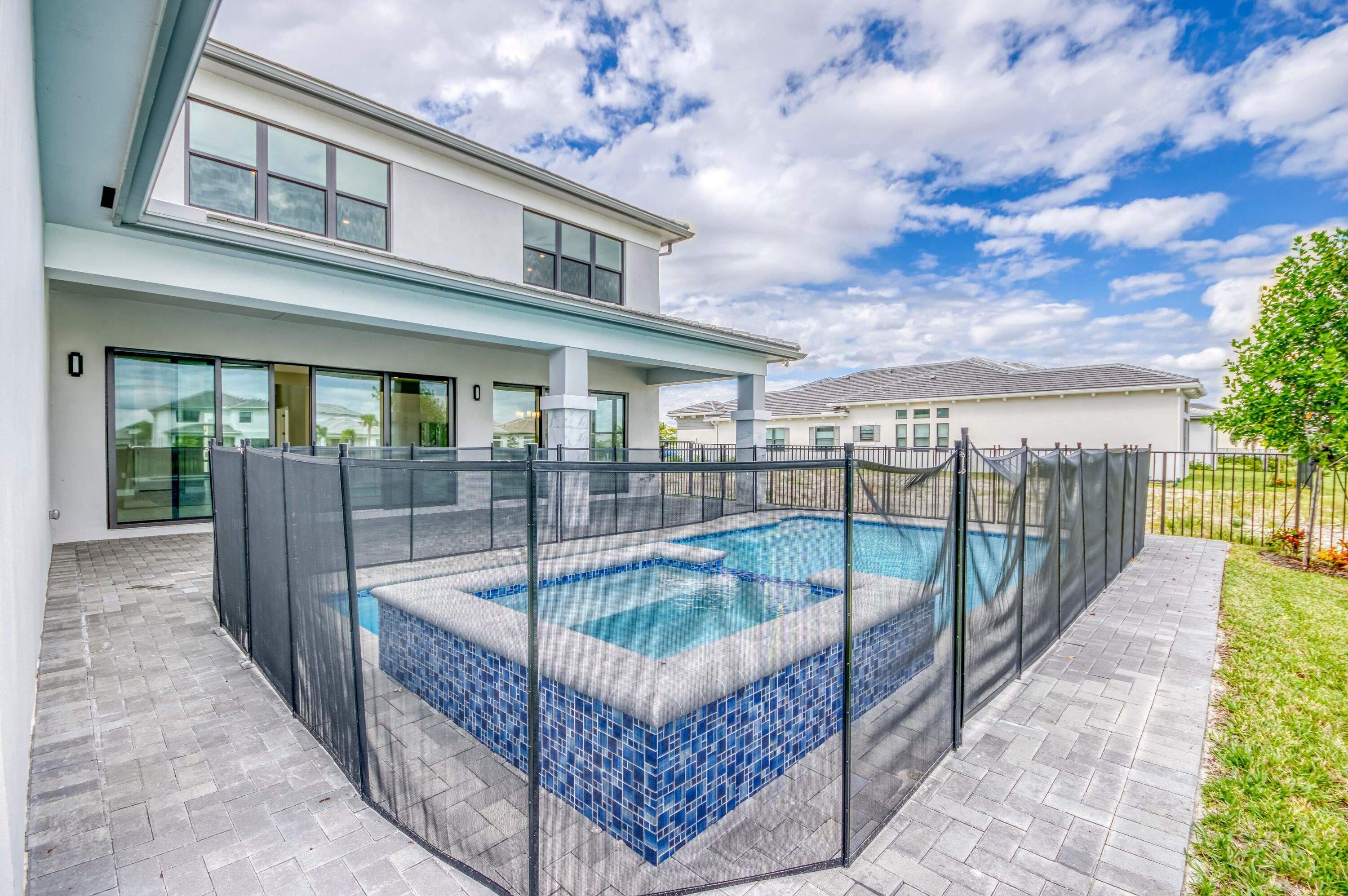 Modern Luxury in Apex at Avenir. Highly desirable Olympus model this 5 Bedrooms, 5.5 Baths, Den, Loft, Media Room, Split 3-car garage estate has all the features you need including a luxurious porcelain floor tile package in key areas, grand staircase, gourmet kitchen featuring upgraded cabinetry and sleek quartz countertops with a flat polished edge, complemented by a full backsplash. This culinary haven is equipped with a GE appliance package, including a gas cooktop, and boasts a spacious kitchen island with seating, making it perfect for both cooking and entertaining. The laundry room offers an upgraded cabinet package with quartz countertops, and a built-in laundry sink for added convenience.Standard manufacturer warranties on all appliances, the air conditioning compressor, and the air handler unit. For modern security and connectivity, the home comes equipped with an in-home wireless alarm system, featuring wireless magnet contacts on all operable windows and doors (excluding exterior garage doors), along with a 7" touchpad and a secondary auxiliary touchpad placed according to the purchaser's specifications. The garage includes 20 AMP dedicated receptacles for a future refrigerator, while a USB/C receptacle is conveniently located in both the kitchen and primary bedroom. An empty conduit from the electric panel to the garage is also in place for future EV charger installation. Exceptional Lifestyle and ideal proximity to all the best parts of Palm Beach County!