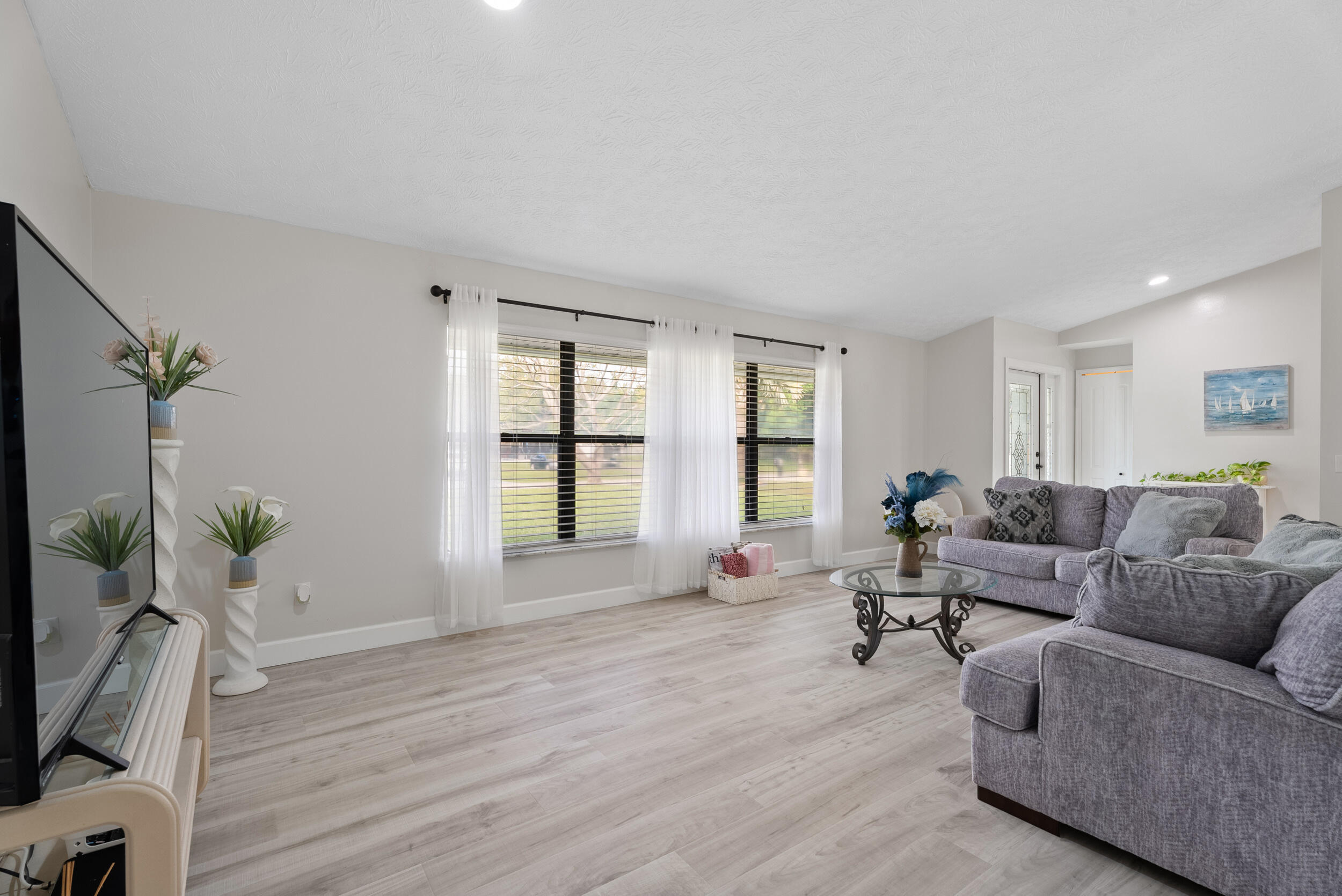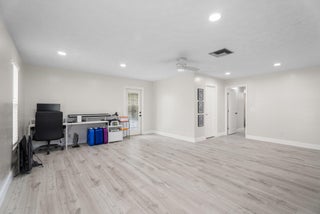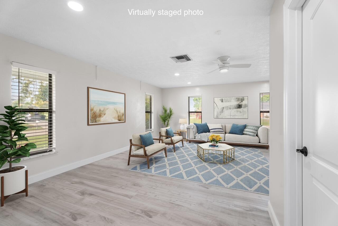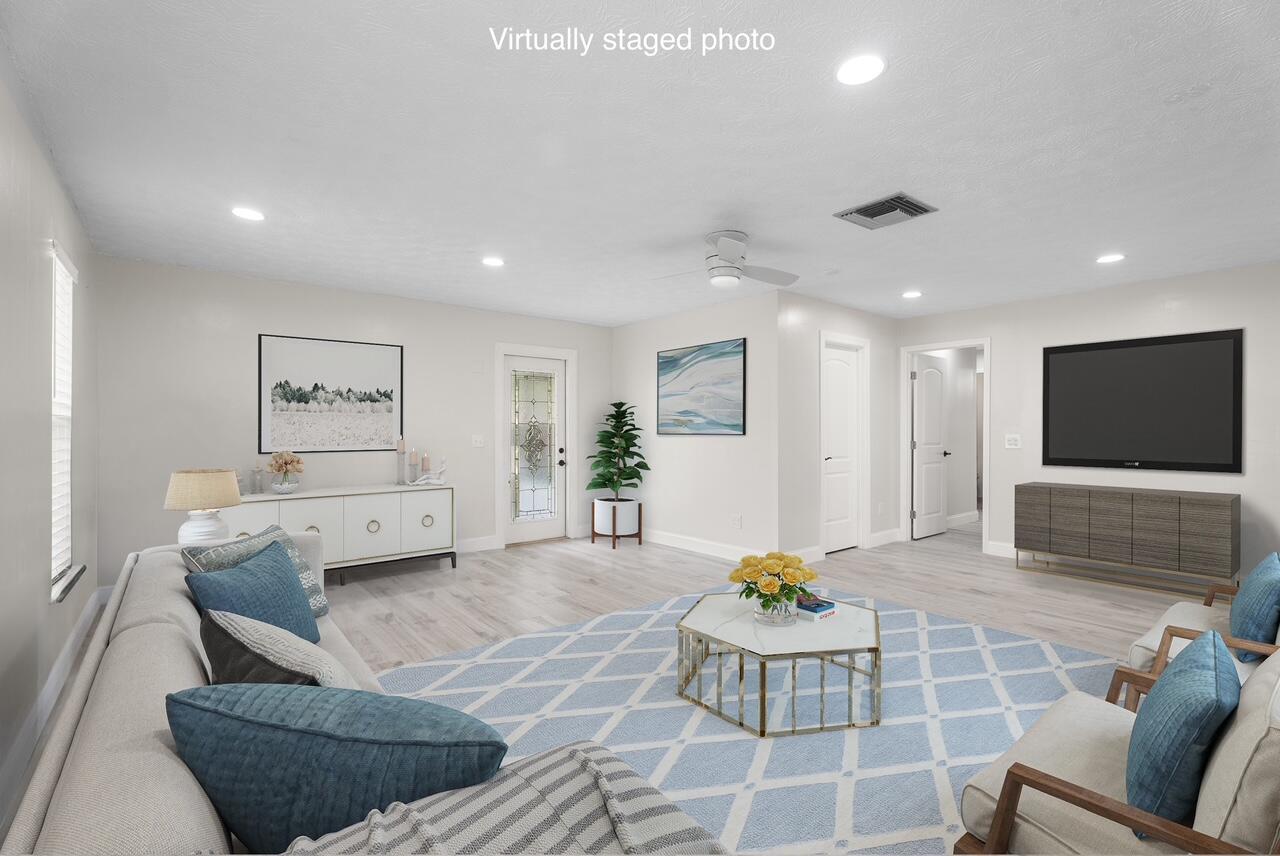 Back on the market NO FAULT TO THE SELLER, Buyer Financing fell through!Welcome to this beautifully updated corner lot home, offering the perfect blend of comfort and modern touches. With a 2022 ROOF+ 4 Ton AC and fresh flooring throughout most of the house, this home is move-in ready and waiting for you! Inside, you'll find a remodeled master and guest bath with cabana door, showcasing stylish finishes and thoughtful details. A standout feature is the large third bedroom with a SEPERATE ENTRANCE, offering privacy and potential for a guest, in-law suite, or RENTAL opportunity with plumbing readily available for bathroom or kitchenette. The heart of the home features NEW APPLIANCES, freshly painted cabinets, and granite countertops ensuring a modern and efficient cooking experience.An extra FLEX space with a barn door and closet adds versatilityperfect for a home office. Outside, enjoy the convenience of TWO DRIVEWAYS providing ample parking for family and guests. Need storage? No problem! This home boasts two spacious sheds, ideal for tools, hobbies, or extra belongings. Don't miss out on this thoughtfully updated home with space for everything you need. Schedule your showing today!