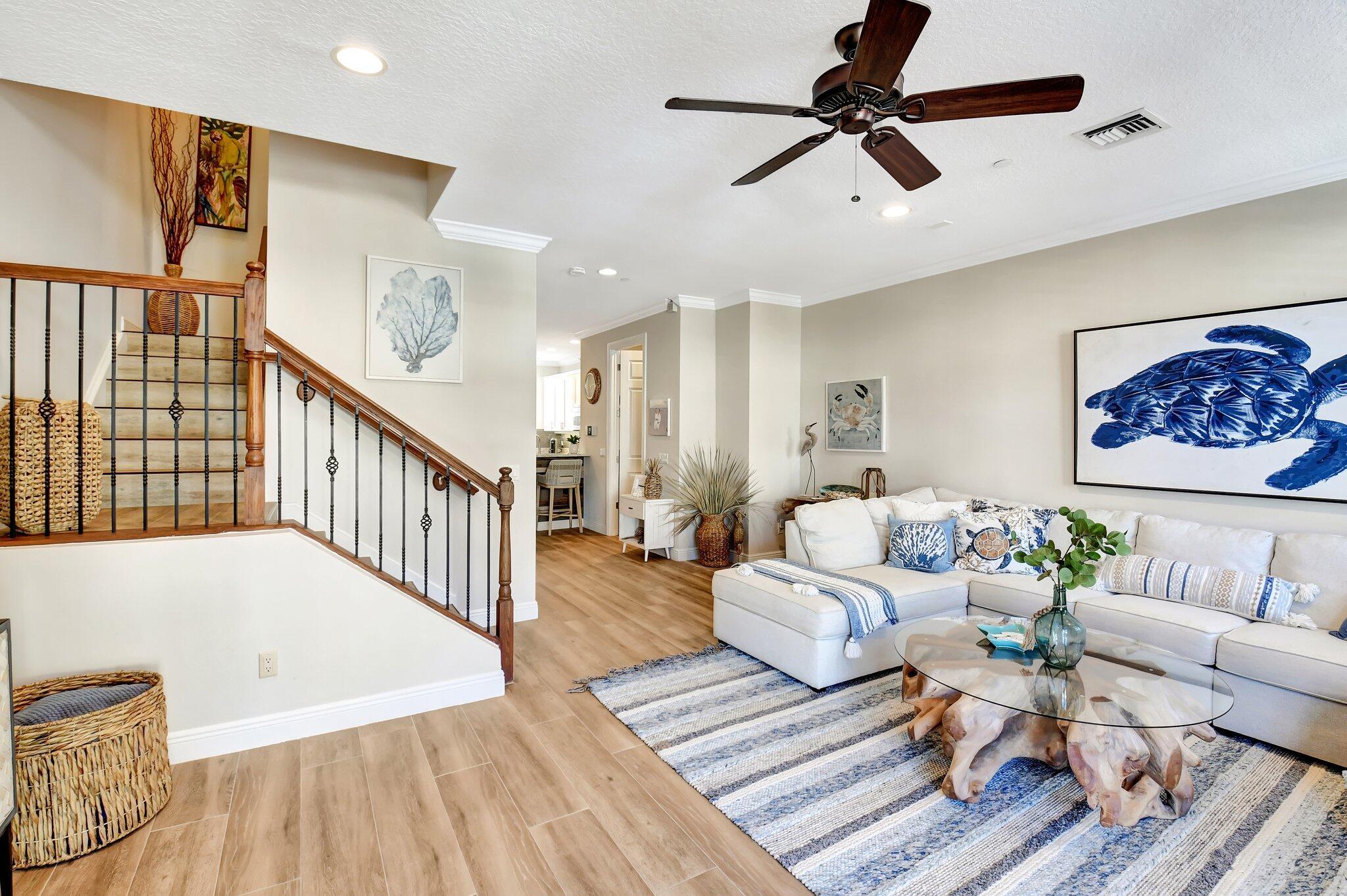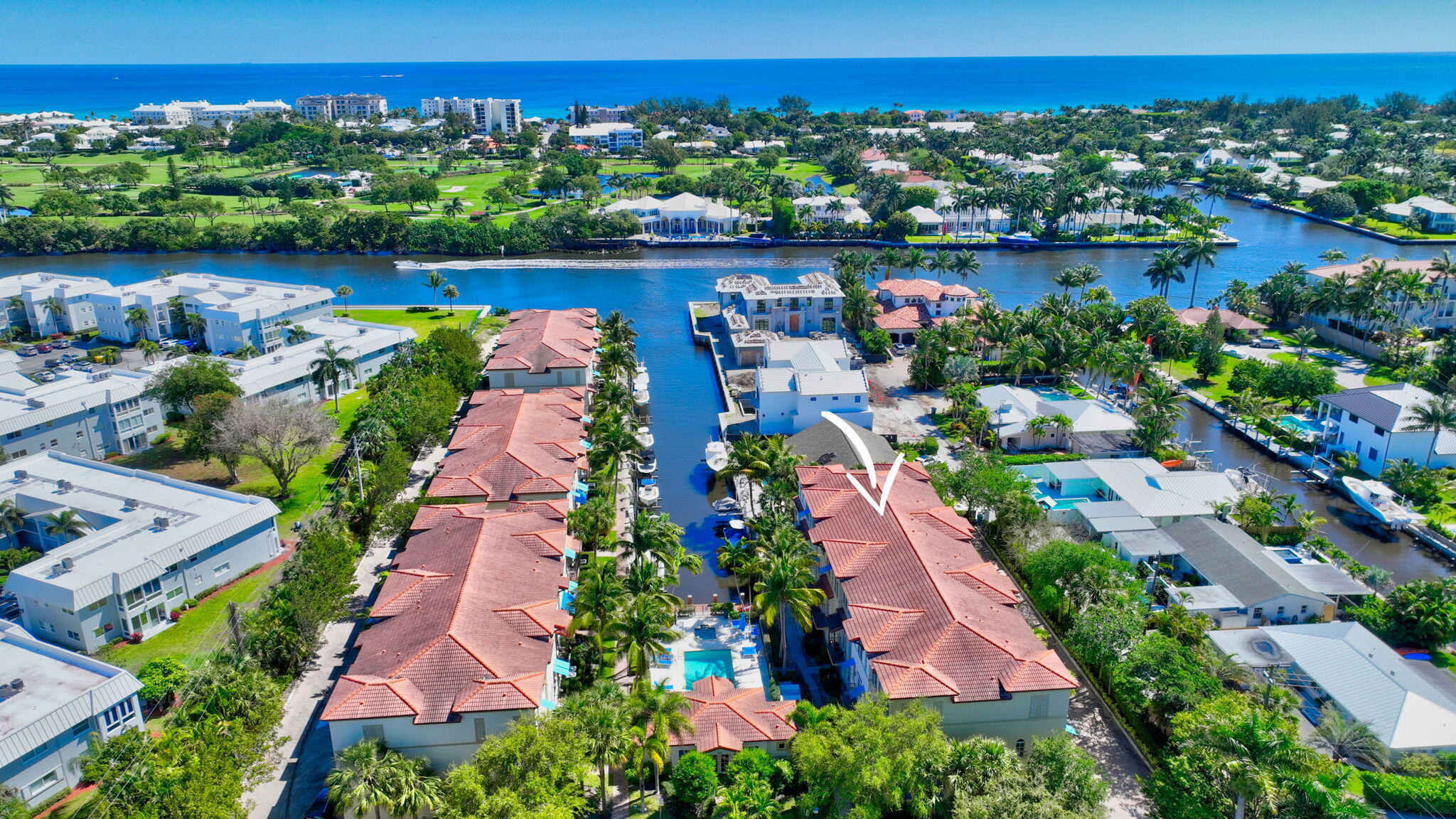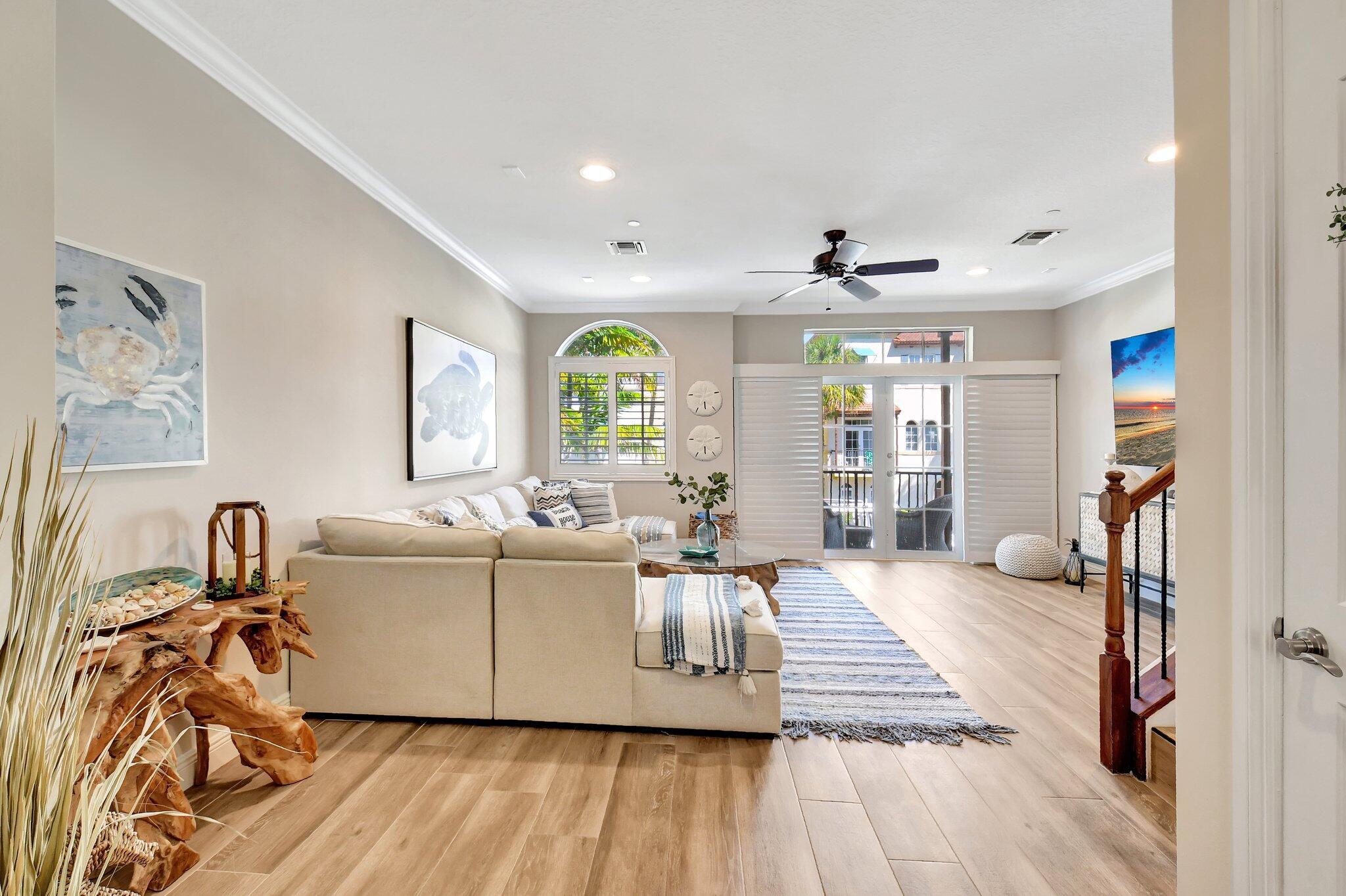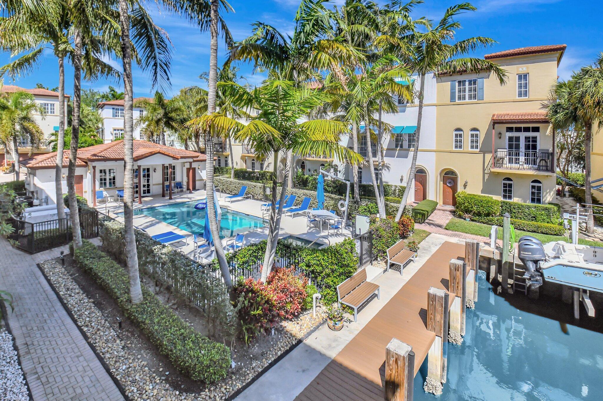 Minutes from the vibrant Atlantic Avenue, this waterfront Intracoastal canal, three-story 3BR/3.5BA townhome features 9' ceilings, hurricane-impact windows and doors, walk-in closets, and an elevator-ready design. Upgrades include beautiful flooring throughout, including the staircase, an updated kitchen, and 220V in the garage for an electric vehicle. Immaculate condition! This is a smart home that can be controlled from your phone app. Located in Estancia, a pet-friendly, gated community of just 30 townhomes, this home offers privacy, security, and a premier waterfront lifestyle.