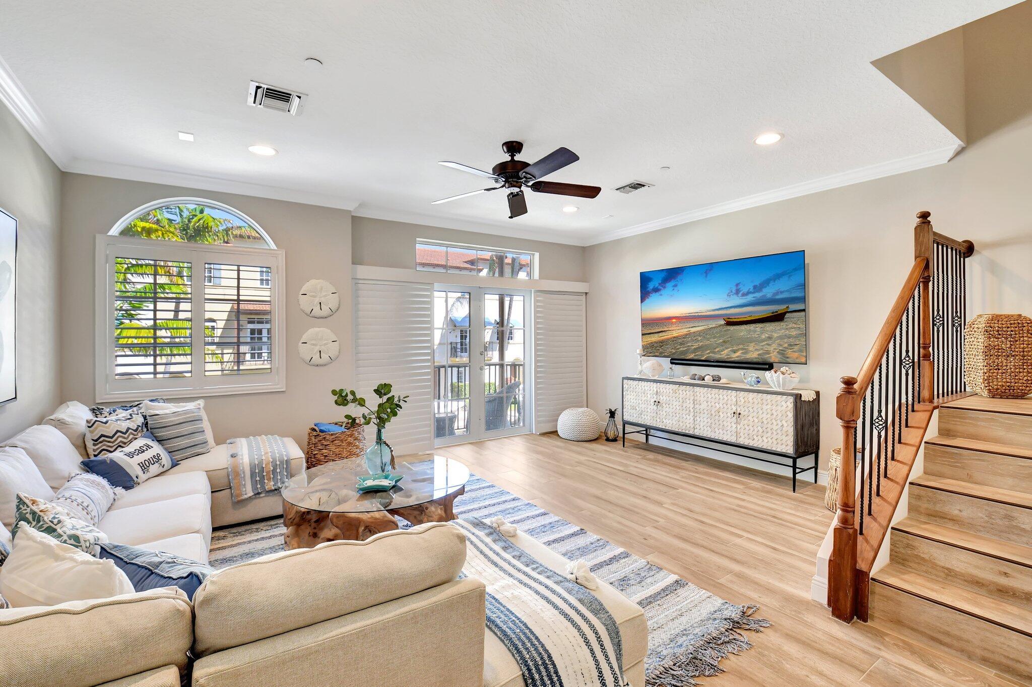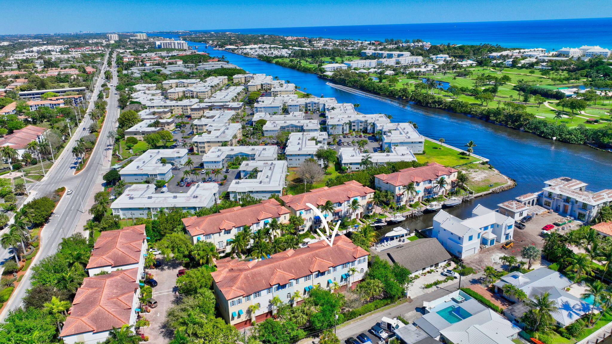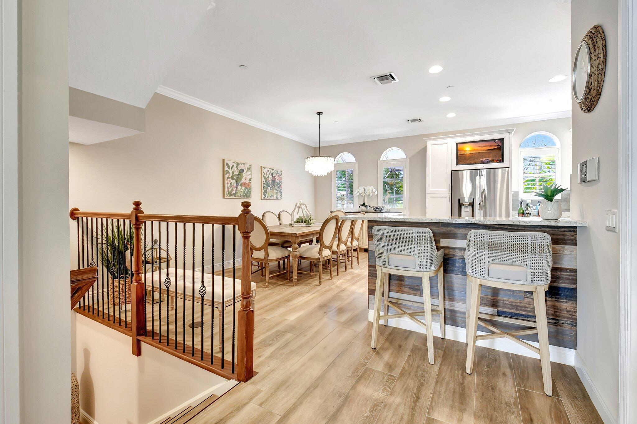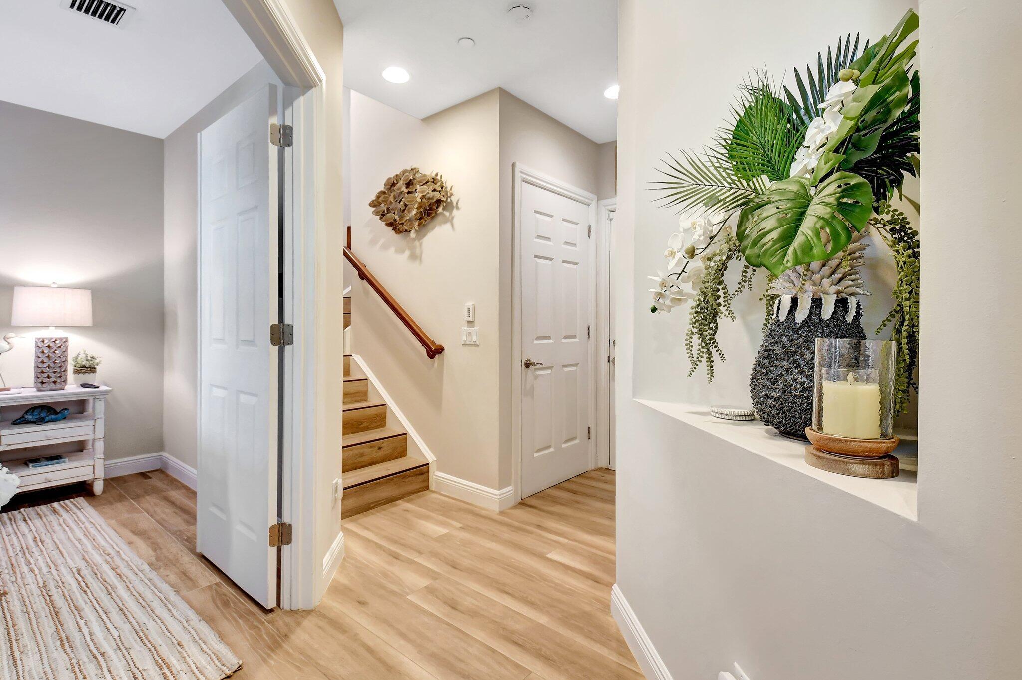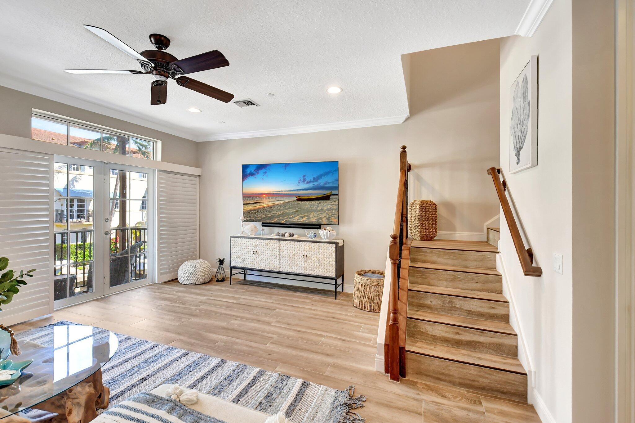 Minutes from the vibrant Atlantic Avenue, this waterfront Intracoastal canal, three-story 3BR/3.5BA townhome features 9' ceilings, hurricane-impact windows and doors, walk-in closets, and an elevator-ready design. Upgrades include beautiful flooring throughout, including the staircase, an updated kitchen, and 220V in the garage for an electric vehicle. Immaculate condition! This is a smart home that can be controlled from your phone app. Located in Estancia, a pet-friendly, gated community of just 30 townhomes, this home offers privacy, security, and a premier waterfront lifestyle.
