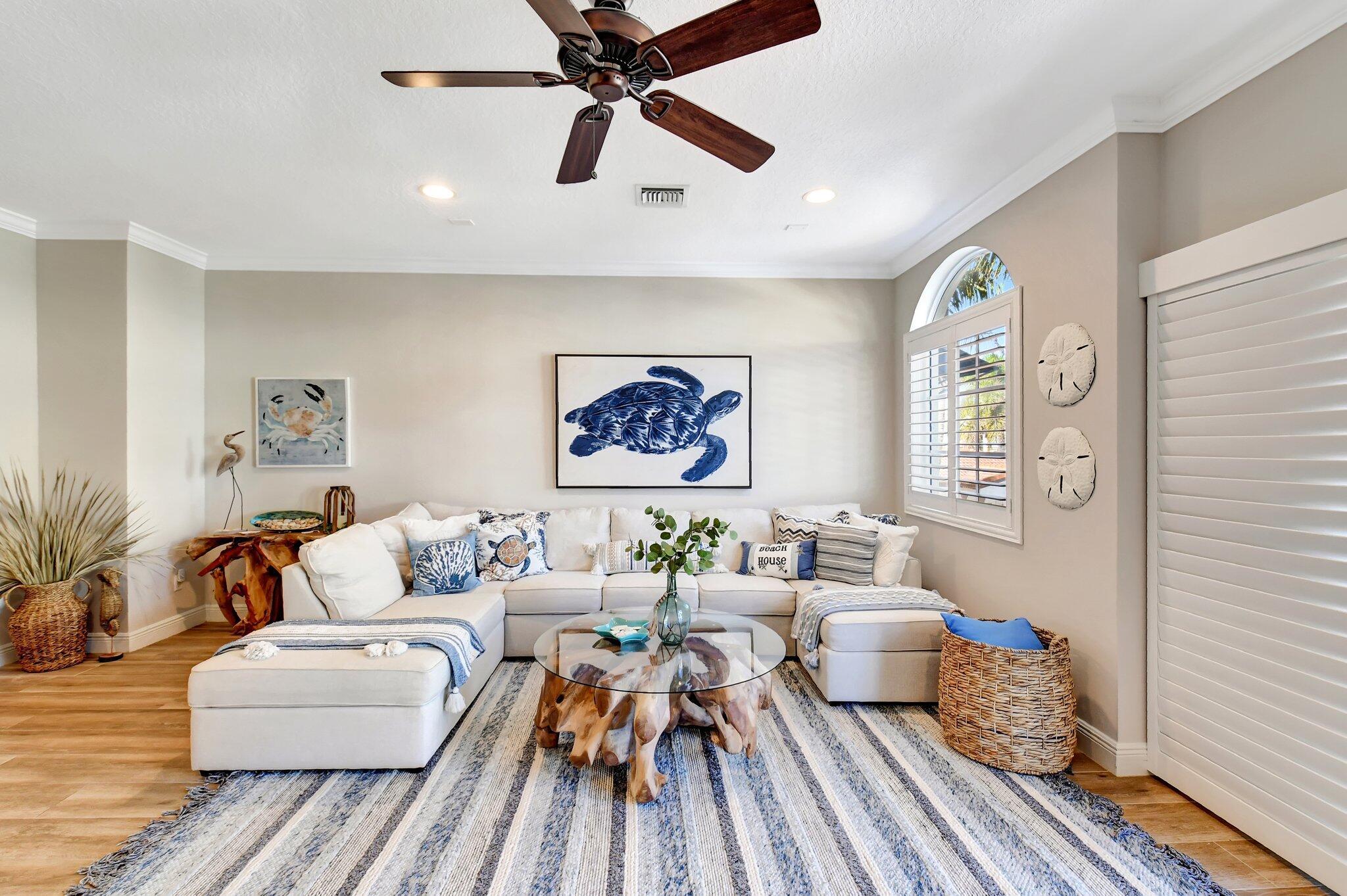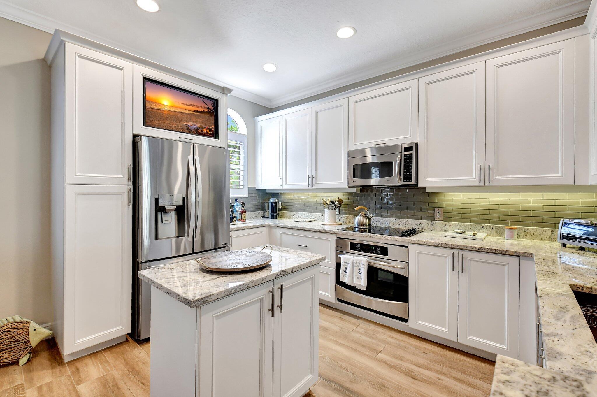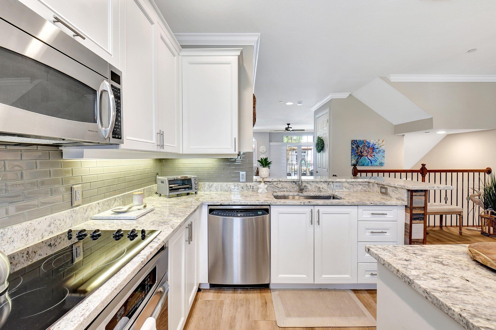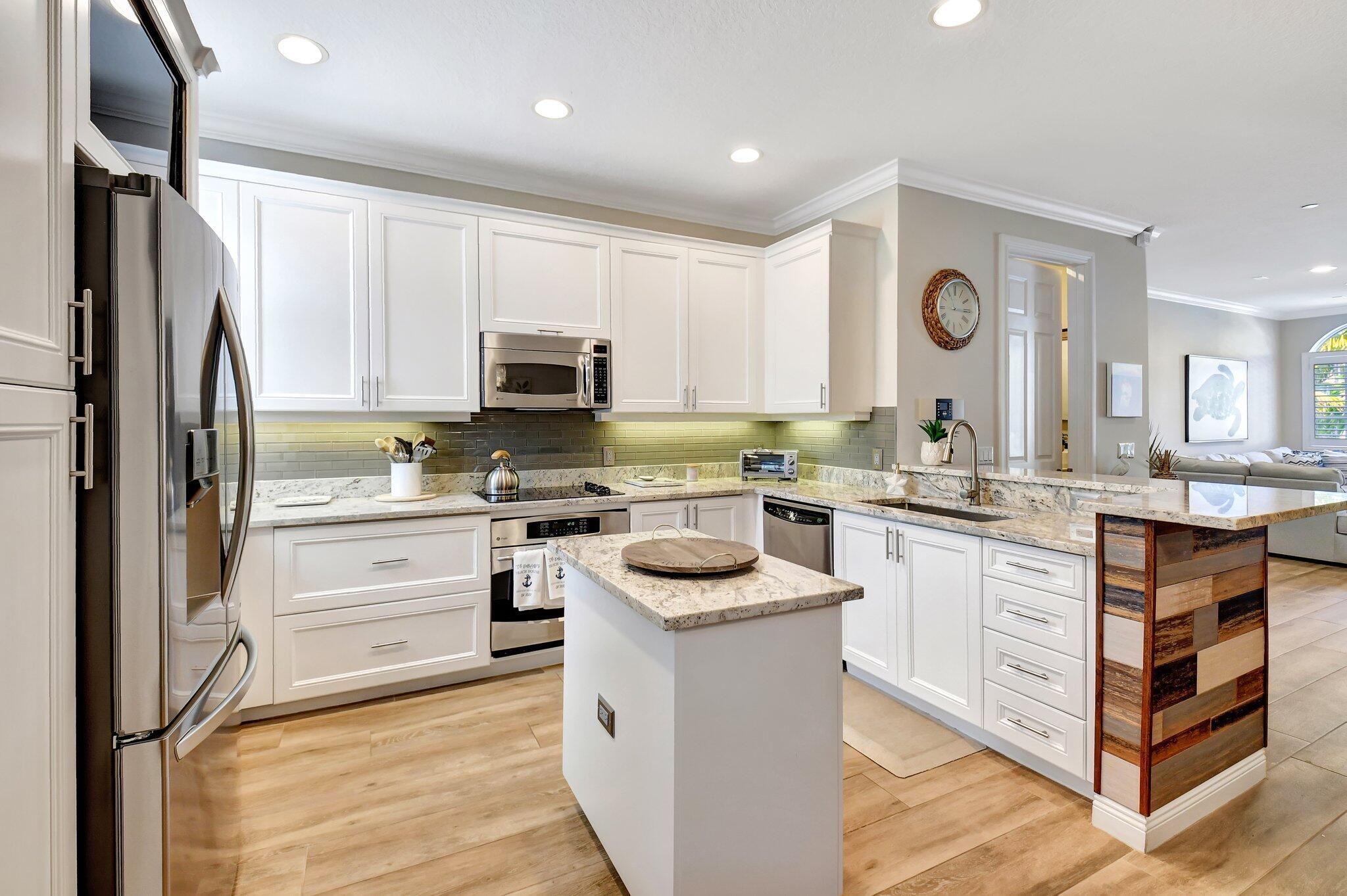Minutes from the vibrant Atlantic Avenue, this waterfront Intracoastal canal, three-story 3BR/3.5BA townhome features 9' ceilings, hurricane-impact windows and doors, walk-in closets, and an elevator-ready design. Upgrades include beautiful flooring throughout, including the staircase, an updated kitchen, and 220V in the garage for an electric vehicle. Immaculate condition! This is a smart home that can be controlled from your phone app. Located in Estancia, a pet-friendly, gated community of just 30 townhomes, this home offers privacy, security, and a premier waterfront lifestyle.