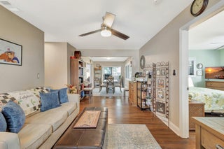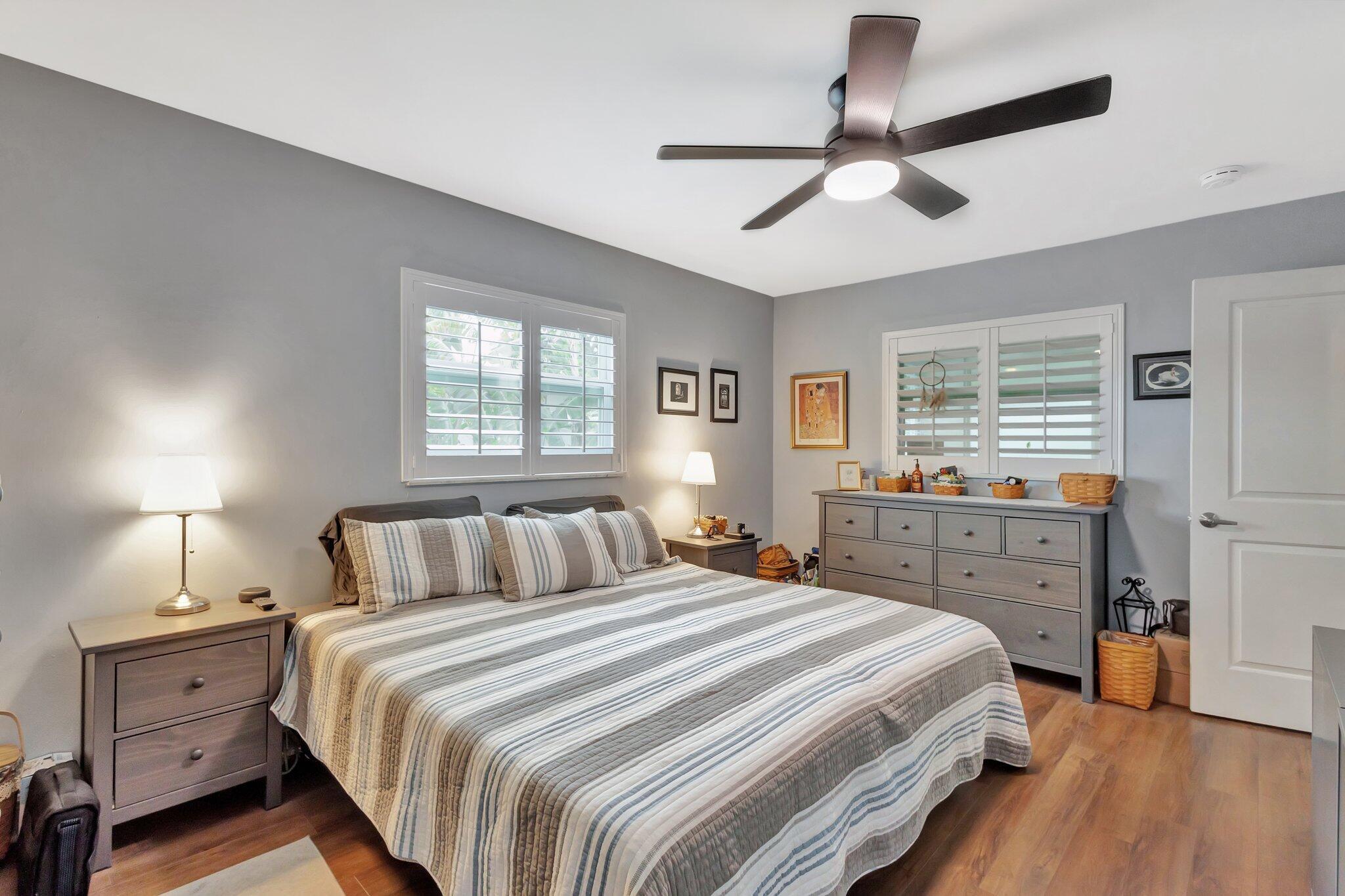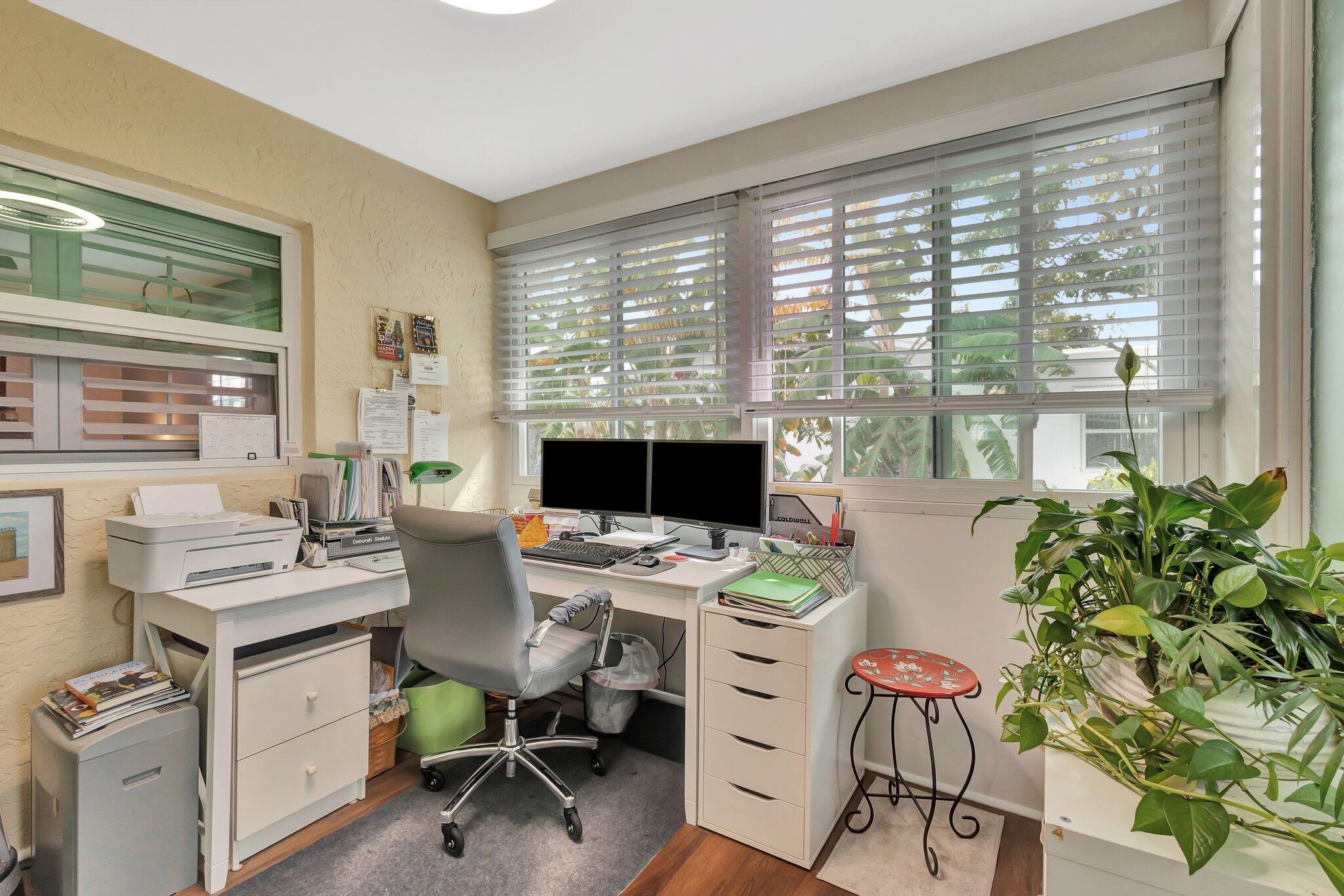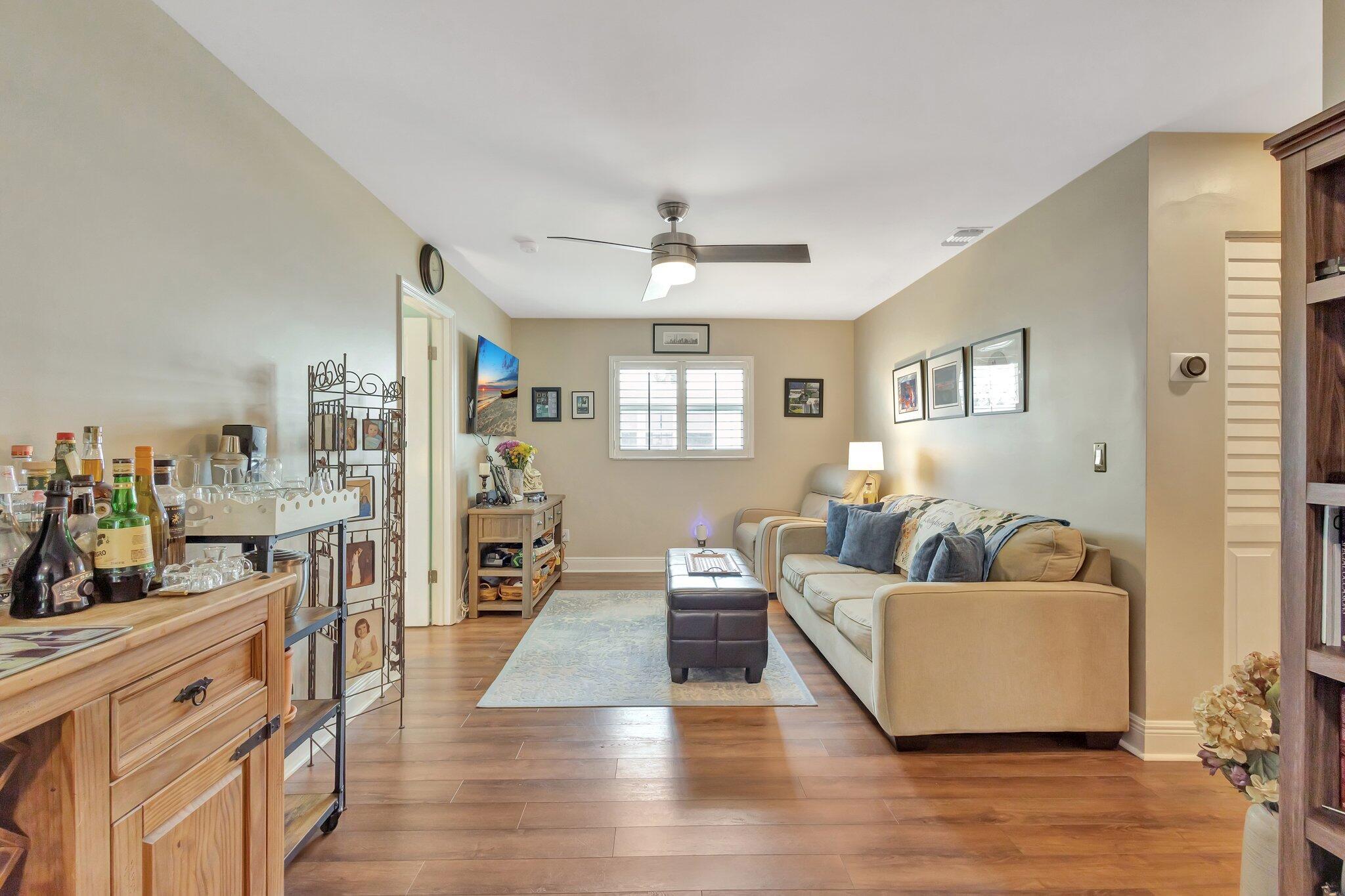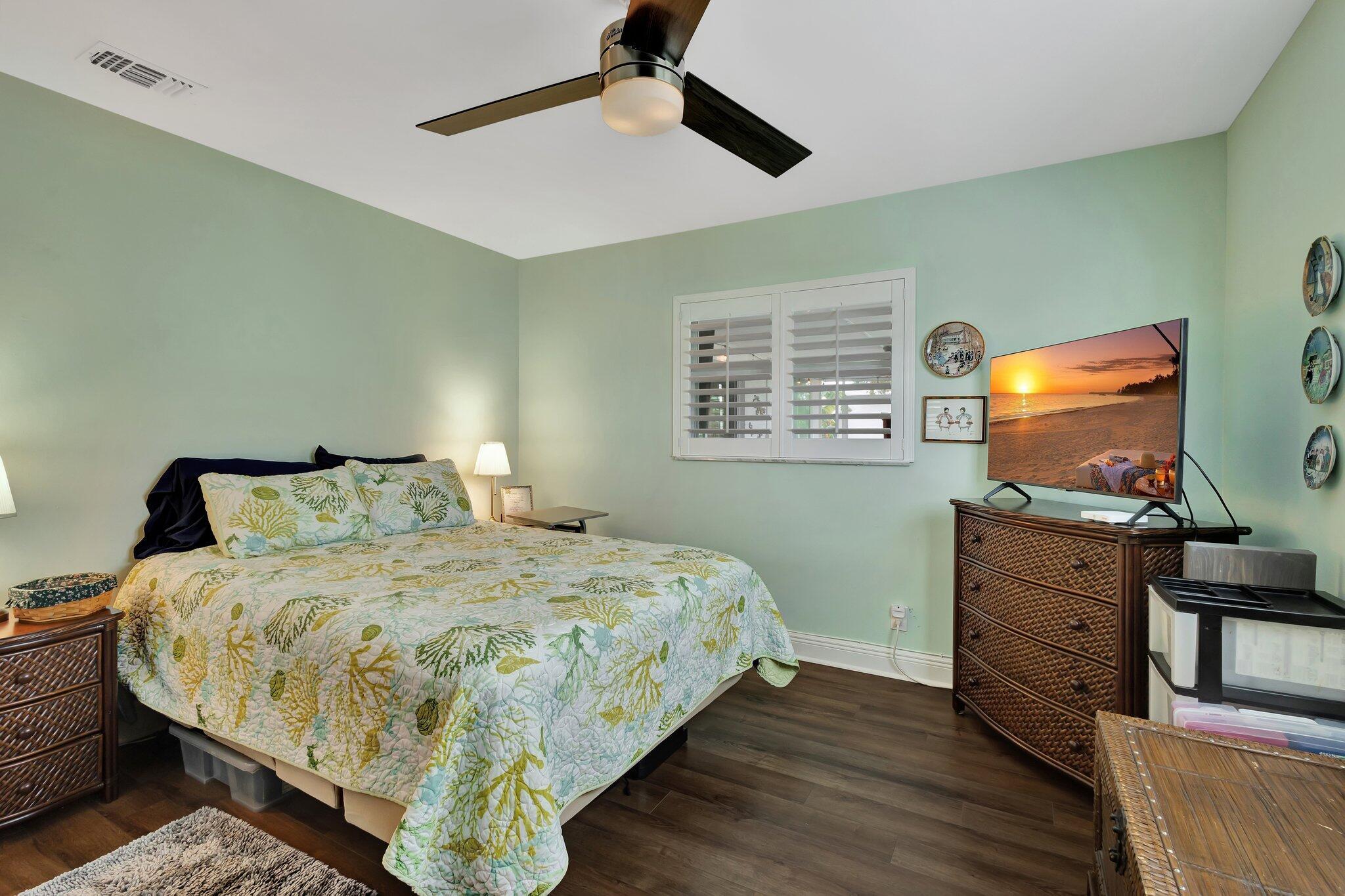 Step into this Beautifully Upgraded 2-bedroom, 2-bathroom home featuring a Den, Office and Dining room. Hurricane-impact Doors and Windows complete with Plantation Shutters provide privacy, security and peace of mind throughout the home. The Challenger Model is the largest style in the community with an Open Floor Plan. The kitchen has been upgraded with Shaker Cabinets, Quartz Counter Tops and Stainless Appliances and attached to the large Dining Area, perfect for those large family dinners. The Master Suite boasts a walk-in closet and a luxurious en-suite bathroom with double sinks and step-in shower. Brand-new luxury vinyl plank flooring flows seamlessly throughout the home, adding elegance and durability. The oversized Screened-in Patio featuring a large Flat Screen TV, NapoleonPropane Gas Grill with Overhead Exhaust, Granite Counter Tops and Stainless Steel Cabinetry. Enjoy the Tropical Landscape or Gather around the outdoor fire pit on chilly evenings, making this home perfect for year-round enjoyment. Full List of Home Improvements: " New air-conditioning unit installed in 2024. " Google Nest thermostat. " New flat roof over porch area in 2023 " Interior ceilings and walls painted in 2022. " Installed ceiling fans w/ lights in both bedrooms, the den, and the kitchen area. " Installed plantation shutters in both bedrooms in 2024 to add to the existing plantation shutters on all the other interior windows. " All new LVP flooring throughout the home (minus the 2 bathrooms, which are tile) " Closed in back porch with ½ walls and bug screens, added a new screened exit door. " Installed a granite countertop on the porch with stainless steel storage compartments underneath and a drop-in Napoleon propane gas grill with an overhead exhaust and light. " Floor in the porch is completely tiled with outdoor ceramic tile. " Added a ceiling fan and light with extra outlets on porch, " Approx. 10 x 14 porcelain tile patio outside of the screened in porch. " Closed in a roughly 9 x 9 room with a wall, 2 impact resistant sliding windows, Norman blinds, and another wall with a large window that looks into the finished porch, and a security door. Room is also finished with LVP flooring that matches the rest of the house. Also installed an overhead light with fan. This room is used as an office. " Tiled the backsplash in the kitchen that was previously sheetrock. " Installed a new Whirlpool dishwasher in 2024. " New 16-panel garage door installed in 2025. " Roof was professionally cleaned in 2025. " All existing landscaping was replaced with new bushes and plants in 2022. " All new lighting installed in front of house: Lights on either side of the garage, up-lighting on the palm trees and a light on the corner of the back porch - all with dusk-to-dawn bulbs. " Garage floor has an epoxy coating.