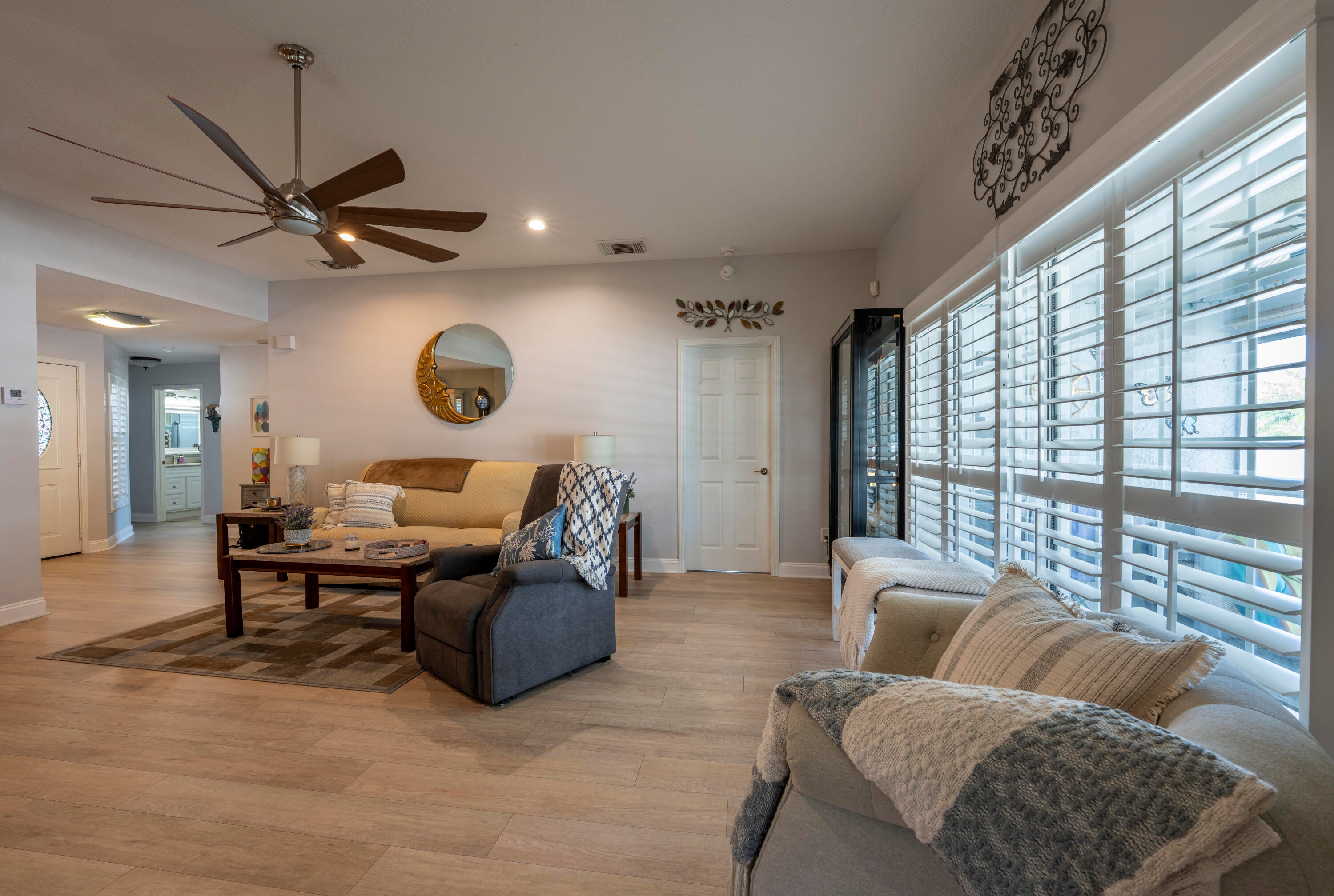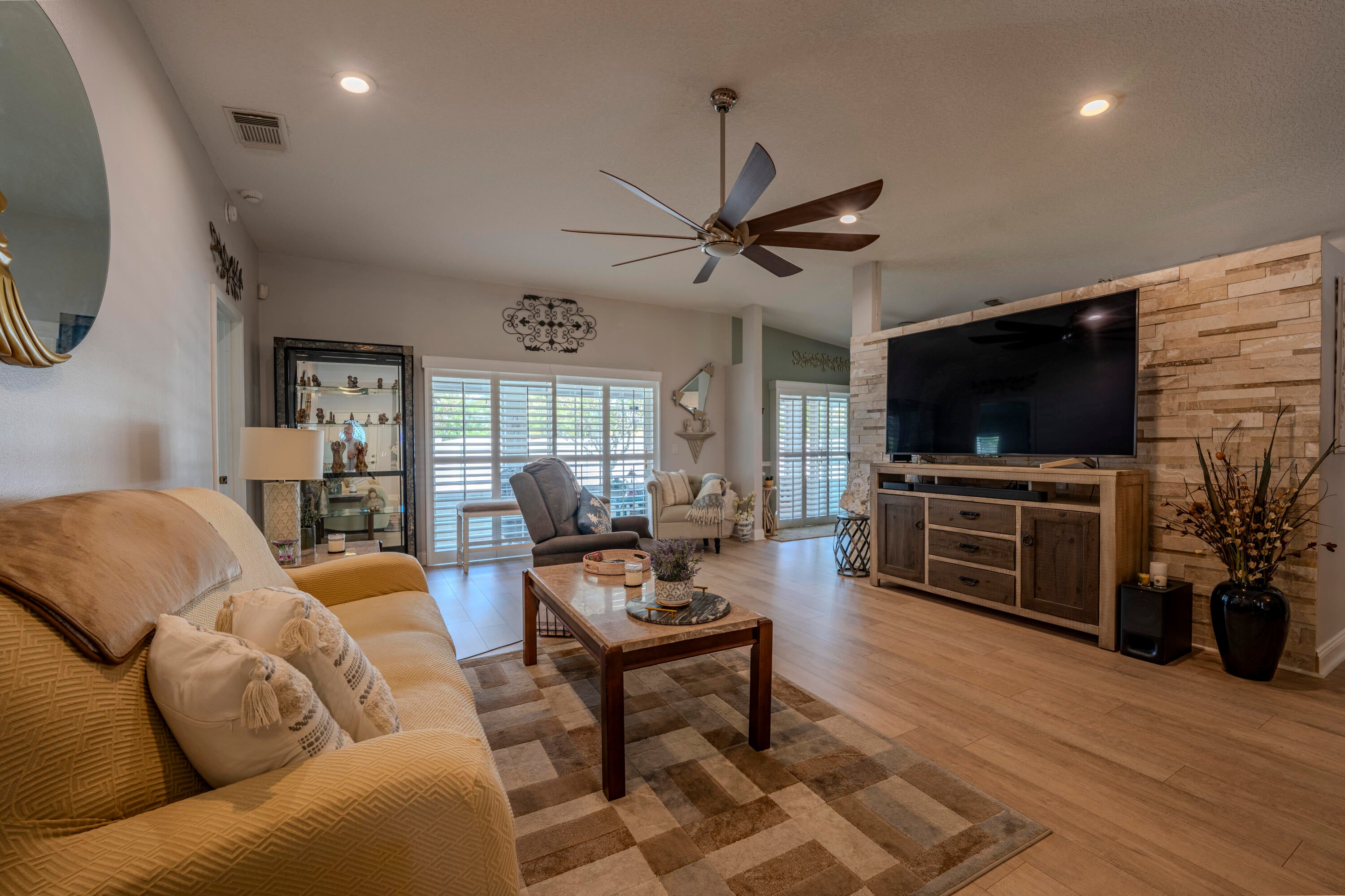 Feel the warmth and pride of ownership in this immaculate 3 bed, 2 bath home on a fenced corner lot in the tranquil Oleander Pines. Laminate & tile throughout. Front door entrance foyer leads to large great room and slider access to lanai. Large updated eat-in kitchen with plenty of counter space, granite & stainless appliances. Laundry room with sink and pedestal washer & dryer. Separate dining room open to great room. Nice floor plan for entertaining. Two bedrooms and updated guest bath. Master bedroom with updated ensuite bath. Two car garage with finished floor and separate pull-down screen. Separate generator. Screened in lanai has automatic drop-down hurricane protection. Impact glass and accordion shutters. New roof (2021) AC (2018). Make appointment to see today.