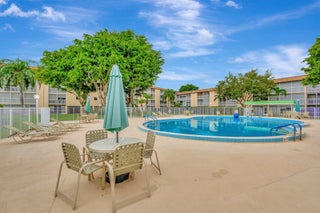 This 2 bedroom, 1 and a half bath condominium is turn key. All furniture can be included with the sale, just bring your suitcase and you are home. The kitchen and bathrooms have been updated. This home makes storm preparations easy with a hurricane door, accordion ''easy close'' shutters on the front windows and pull down shutters on the back. The front door features a high security Mul-T-lock door lock for added safety. Enjoy a cup of coffee on the covered patio overlooking the pool area, which can be accessed from both bedrooms. This home also features a storage unit. Come check it out!
