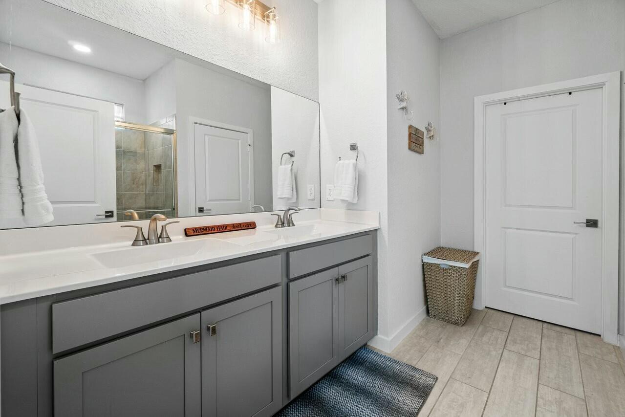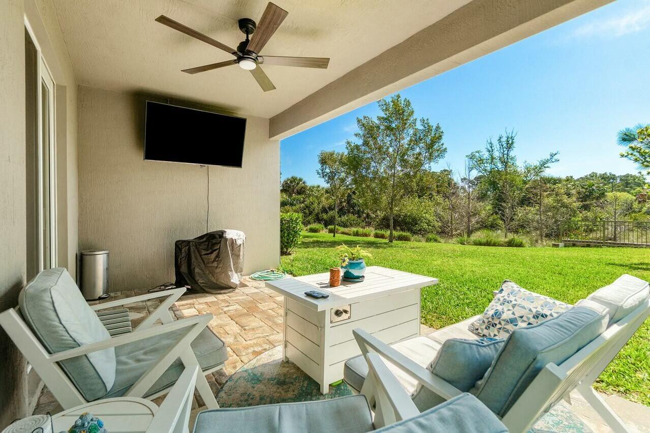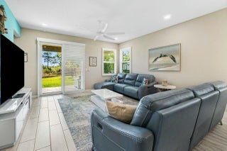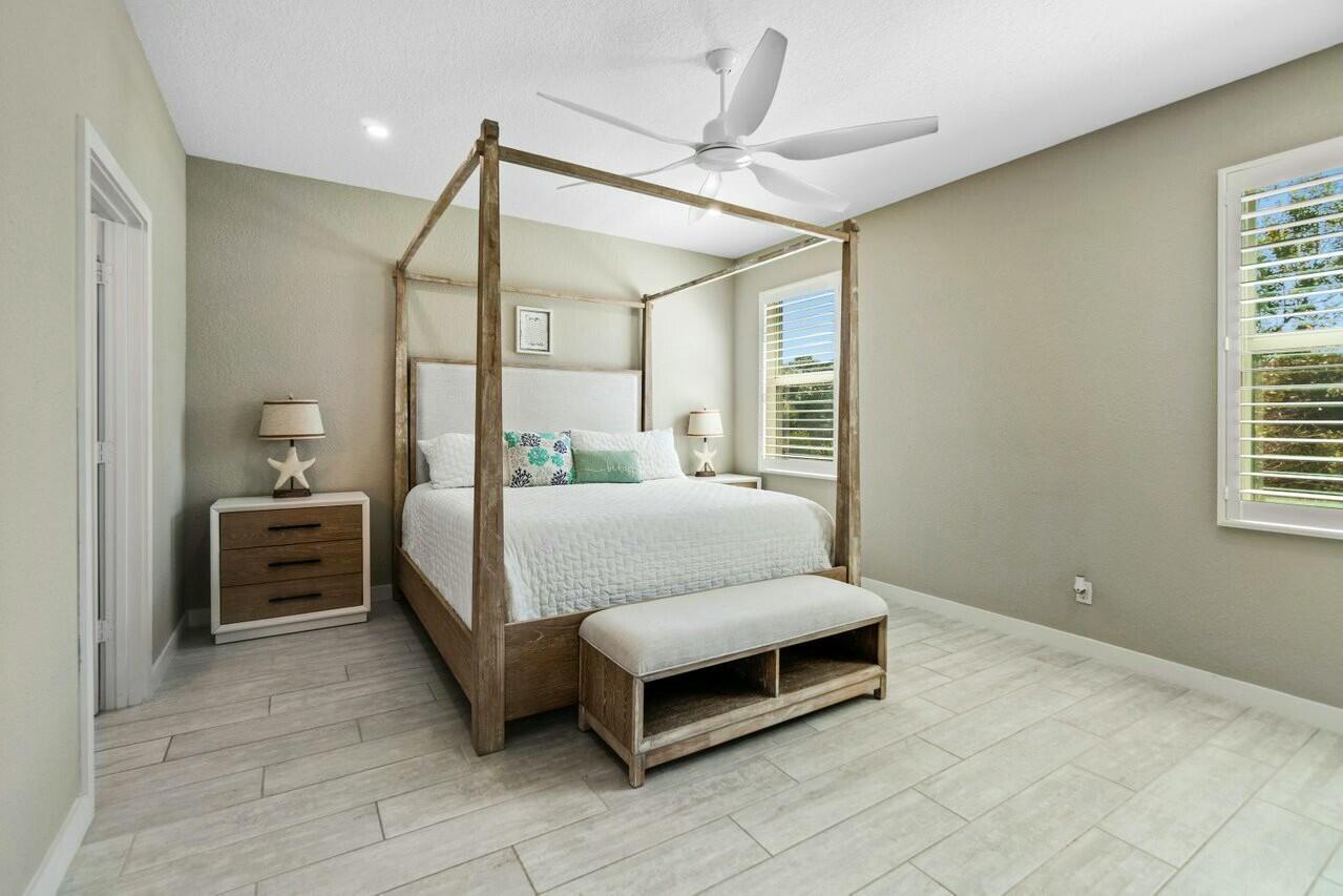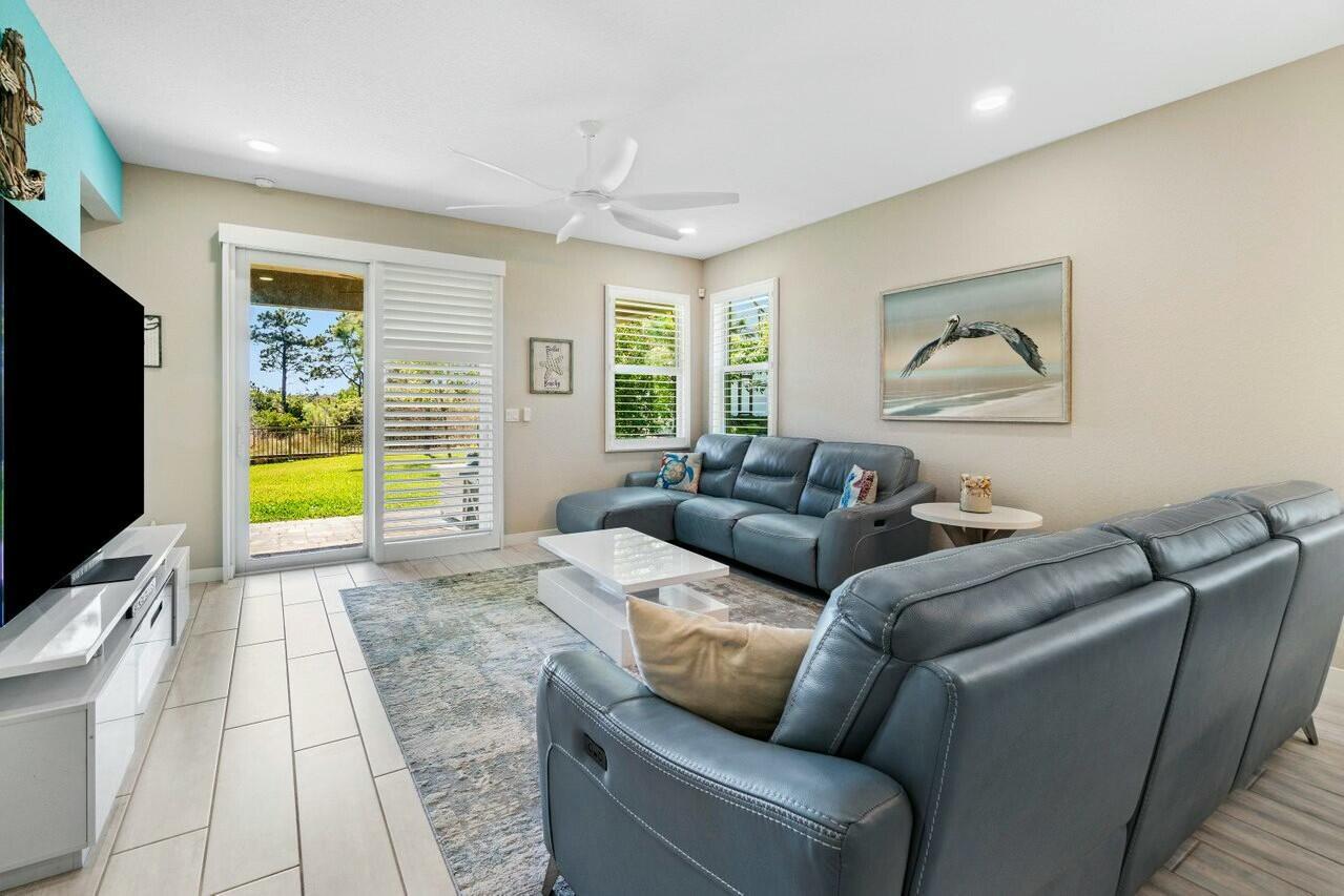 Welcome to Canopy Cove ~ this stunning 3-bedroom, plus 11x10 flex room (4th bedroom), 2-bathroom home with a spacious two car garage offers the perfect blend of modern comfort and natural beauty while being nestled in a peaceful, gated community of 50 homes, surrounded by nature preserves and a beautiful golf course. Built in 2020 with CBS construction, this home features hurricane impact windows & doors & smart home technology, ensuring safety and peace of mind. The home includes a spacious flex room, which could easily serve as a 4th bedroom, office, or creative space ~ tailored to your needs.The Seaside Interior Package creates a serene coastal atmosphere, featuring wood-look tile throughout, a whimsical beachy kitchen backsplash, custom....dimmable high-hat lighting and gorgeous plantation shutters adorn the windows and sliding door, adding an elegant touch. The preserve view offers a tranquil backdrop, perfect for unwinding on your covered patio while enjoying privacy and a deep connection to nature. Canopy Cove's HOA, Seabranch, covers maintenance of the common areas, homeowners' landscaping & lawn care, community pool and entry gate all for a low monthly fee of $285.00. Additional perks include being pet friendly and rental friendly (a minimum of 6 months, up to 2 times per year). Notably, Hobe Sound's public beach is just 5 miles away, and the charming downtown Hobe Sound offers a variety of local shops, dining options, and a coffeehouse. Nearby Jupiter and Stuart provide even more choices for shopping, entertainment, and everyday conveniences.